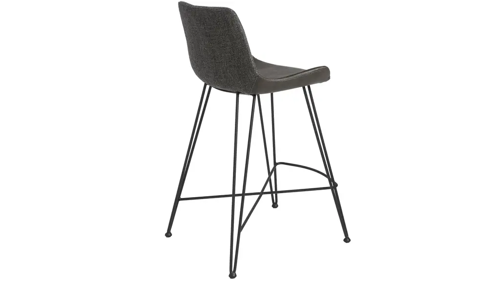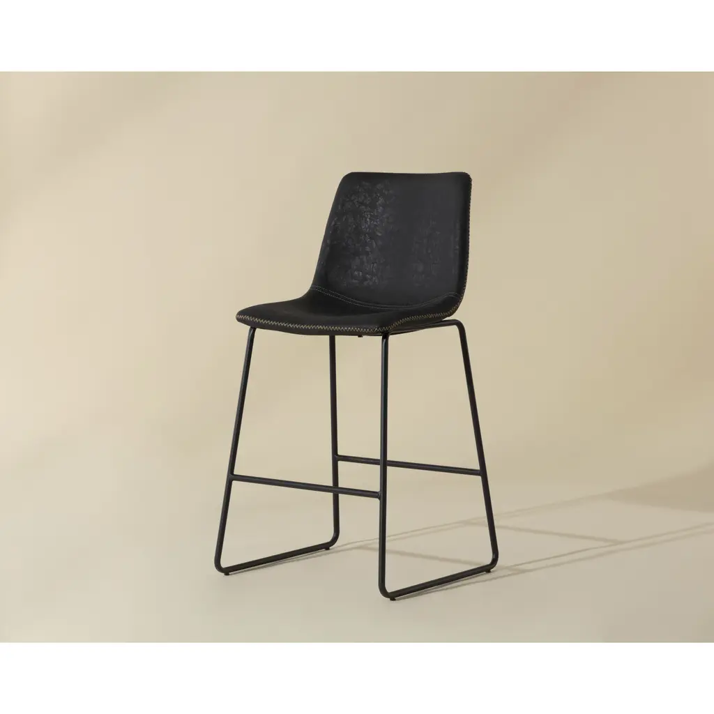 The Alisa Counter Stool creates the perfect place to enjoy any meal. The counter stool has a soft fabric on the back and leatherette on the seat. The base and legs are made of matte black powder coated steel.