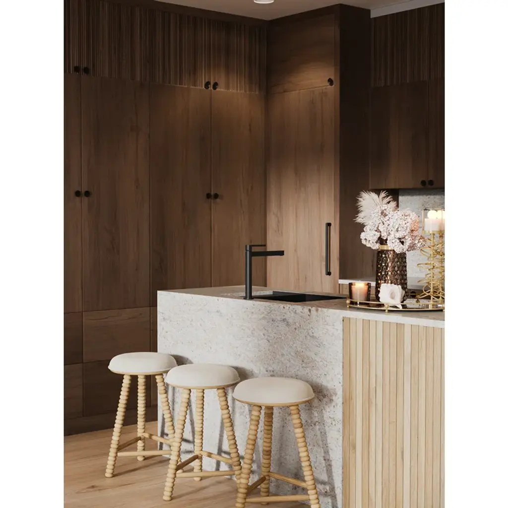 Classic cottage detailing gets a modern makeover with the Twist Counter Stool. Turned, FSC certified solid Oak legs support a plush, seat cushion, available with fabric upholstery.