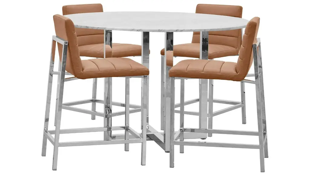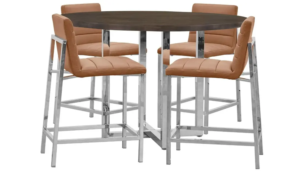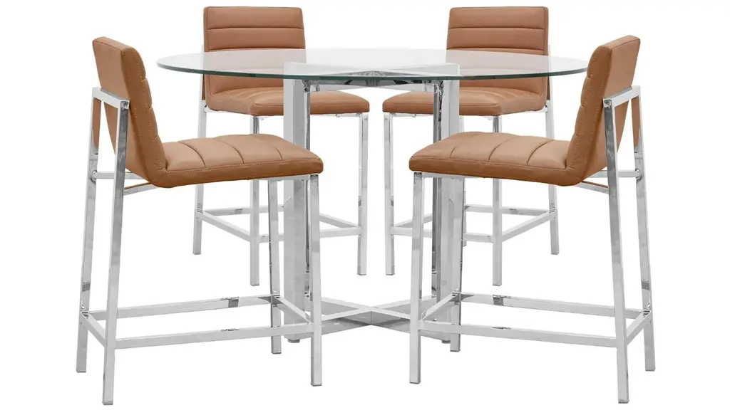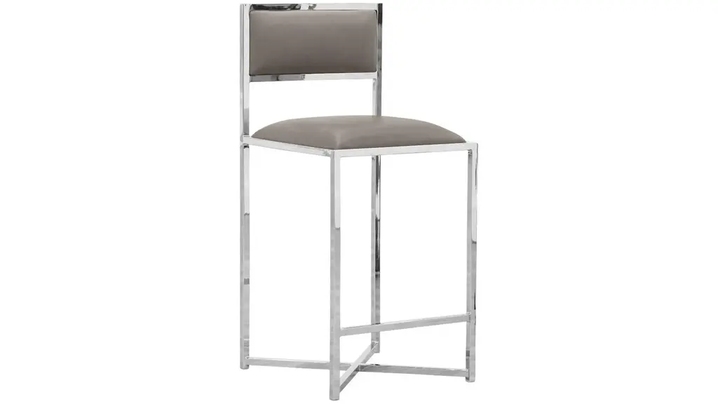 The Amalfi Metal Back Counter Stool- Set of 2 provides a mix-and-match solution to coordinate with and to add contemporary polish to pieces already in your dining space. Chrome-plated stainless steel base offers a striking geometric finish.