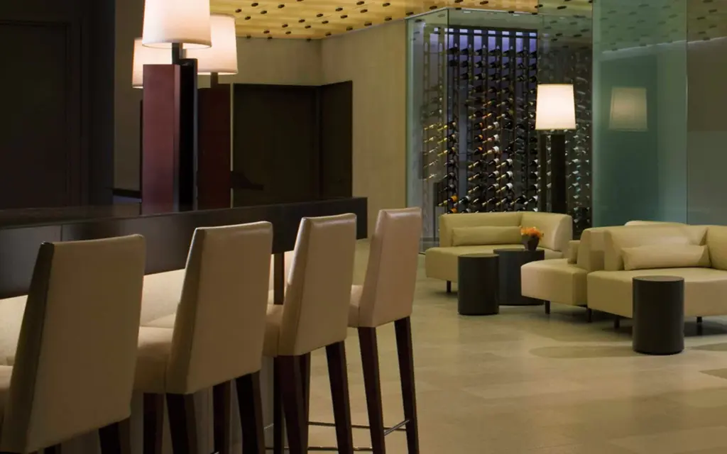 Counter stool with upholstered seat and backrest. Solid beech wood frame.The Anna family of seating, including Lounge, Easy Chair, Corporate and Luxe lines, share a same aesthetic language. Anna is an elegant option for lounge chairs, easy chairs and sofas made in solid beech wood and with eye catching upholstery. The design is offered in two different back heights.