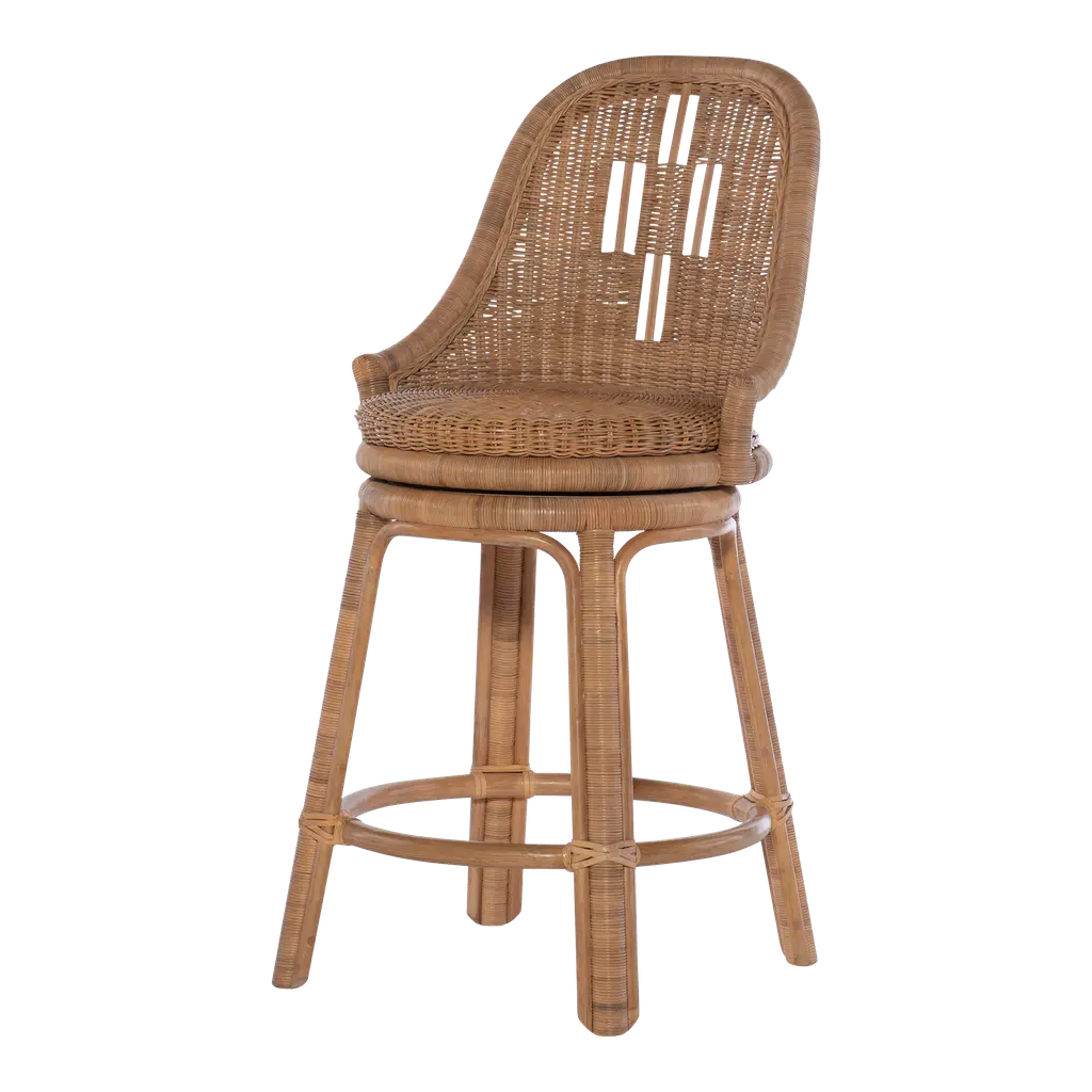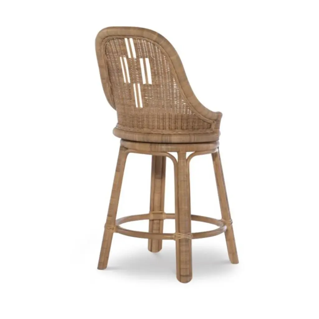 A combination of stylish looks, sit-back comfort, and practicality come together with the natural wicker swivel counter stool. Featuring go-anywhere style, it will take on the look of whatever decor it is merged with.