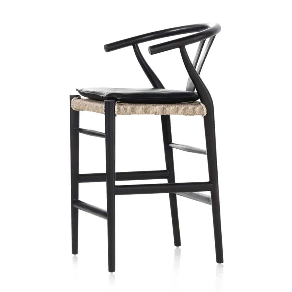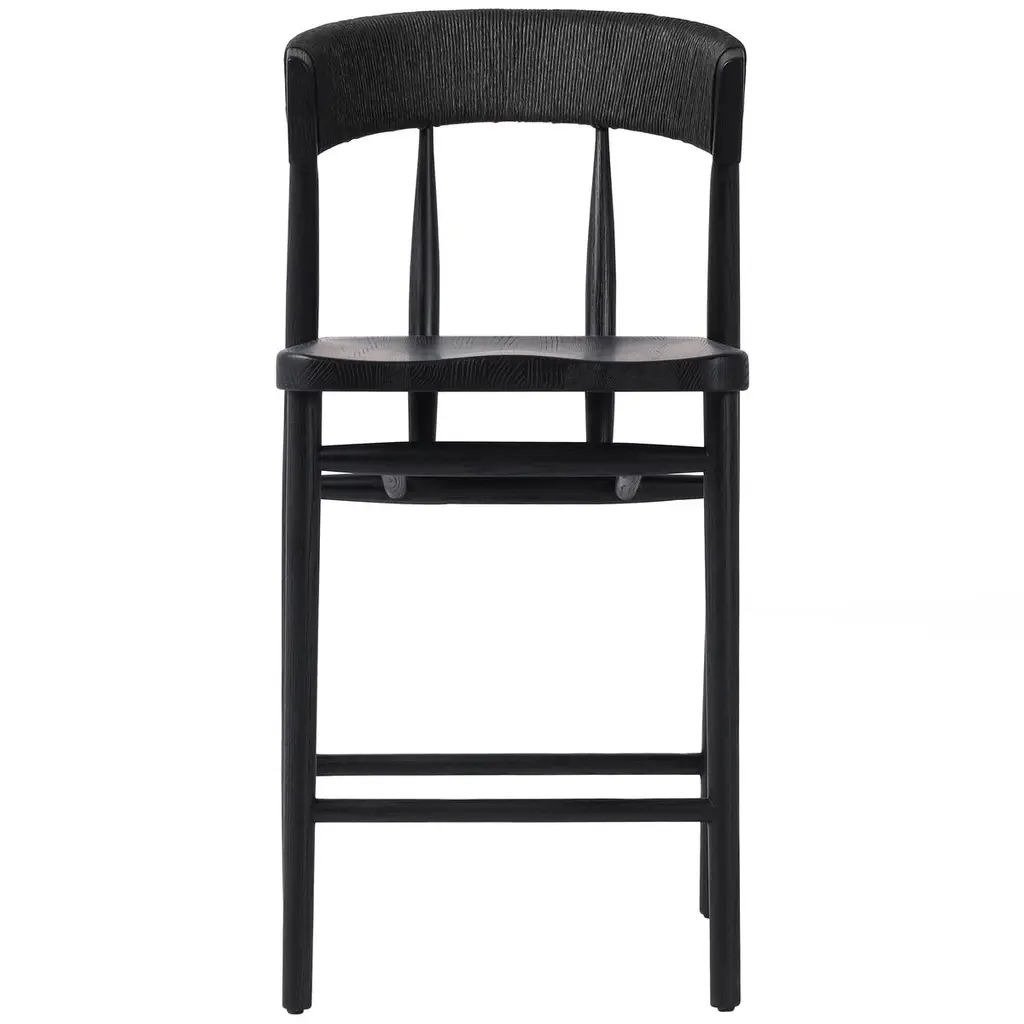 Paper rush wrapped around the top of the seat back brings a textural complement to this counter stool's durable oak frame. A contemporary tribute to the classic Windsor chair, the stool has a gently curved seat for added comfort.