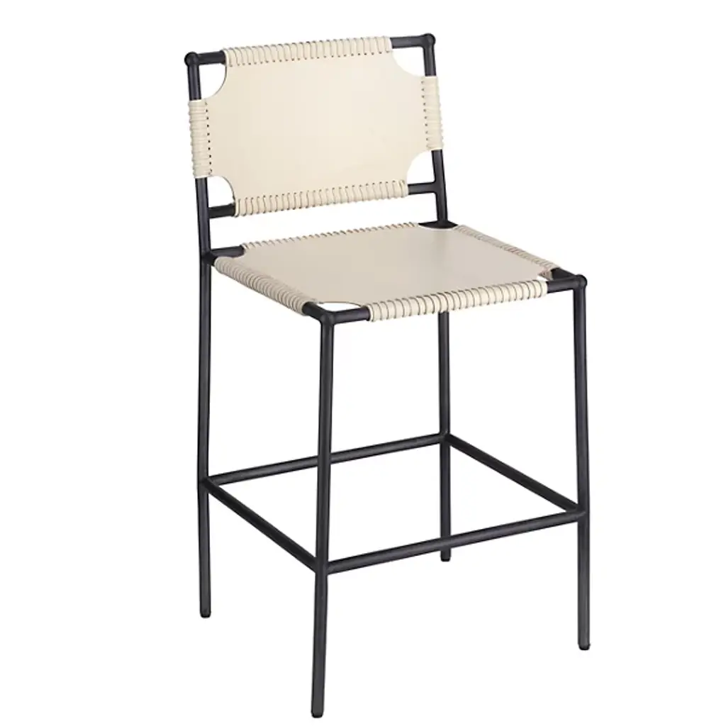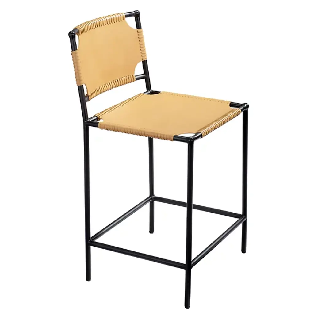 The Asher Counter Stool is a luxe piece of design by Jamie Young Co. Sporting a contemporary style, this attractive furnishing features an elegant composition of leather and steel. Slender legs stretch upward to meet the framing that holds the soft, full-grain leather. This leather creates sling-style seating with chunky stitching around the perimeters. Made in India, this counter stool works well for sitting at tall tables, kitchen islands, a bar setting, and more.