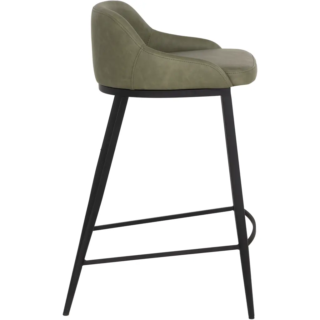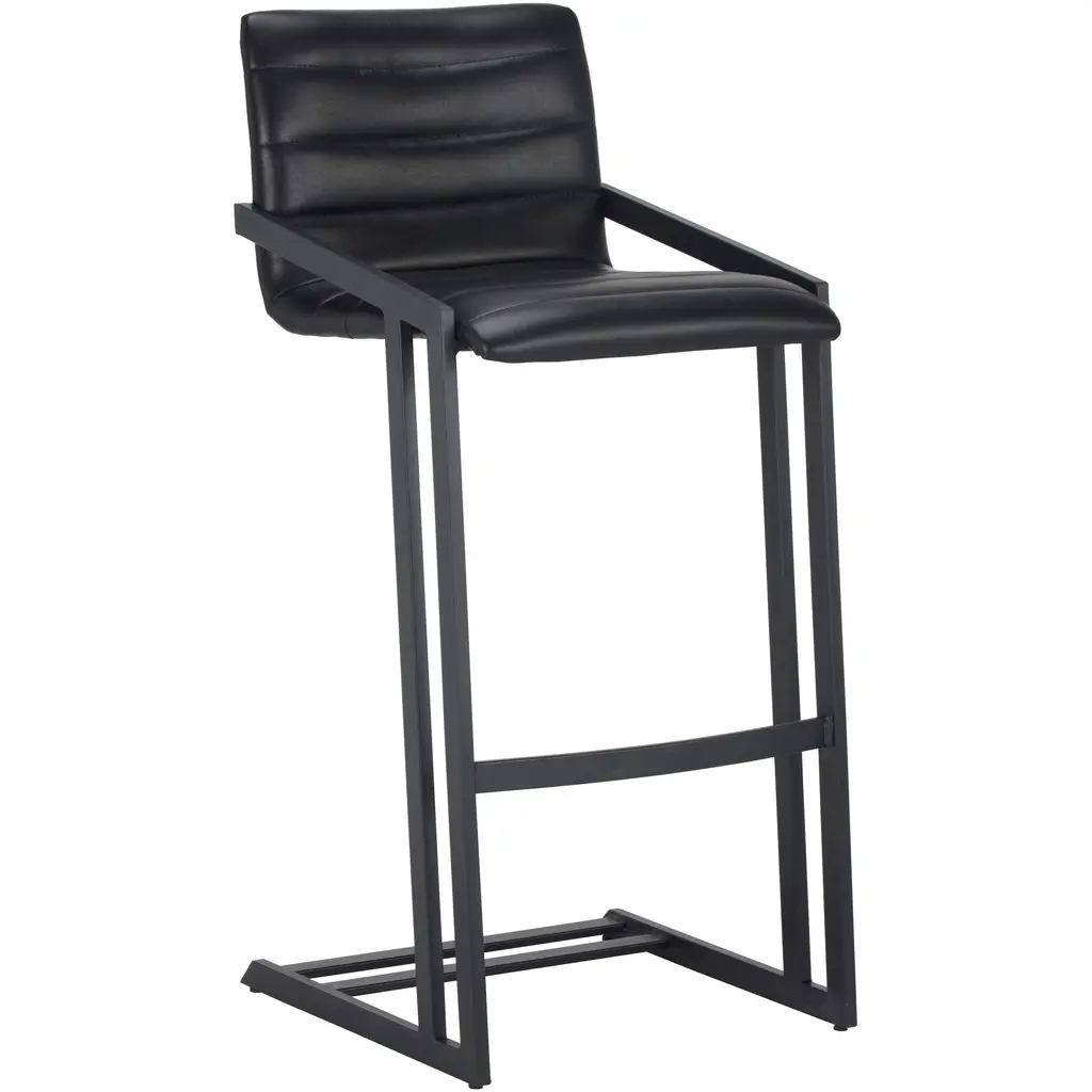 The Astra Counter Stool is distinguished by its strong modern silhouette and sleek black powder-coated iron legs. Smooth ivanhoe pine leather wraps around a comfortable low back seat.