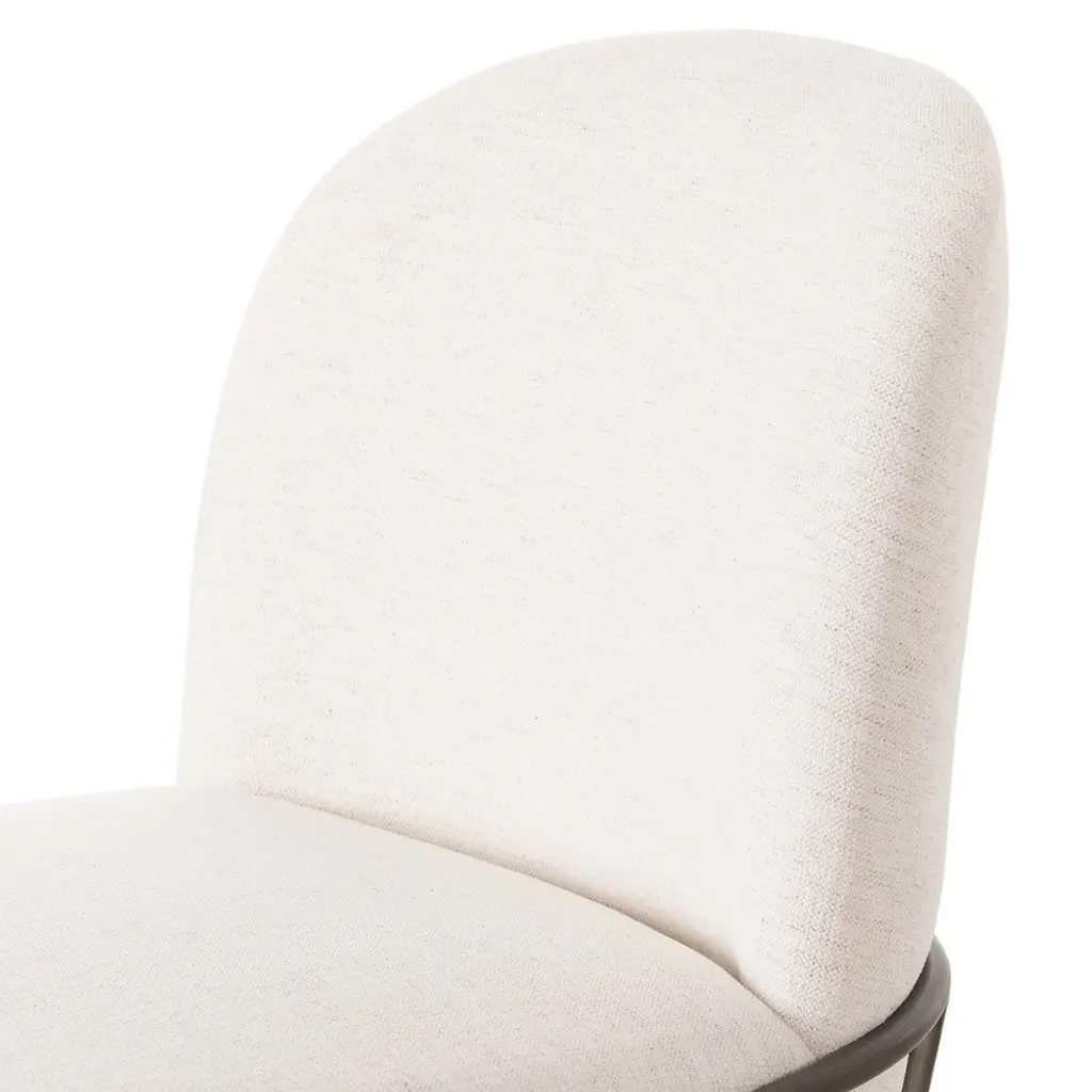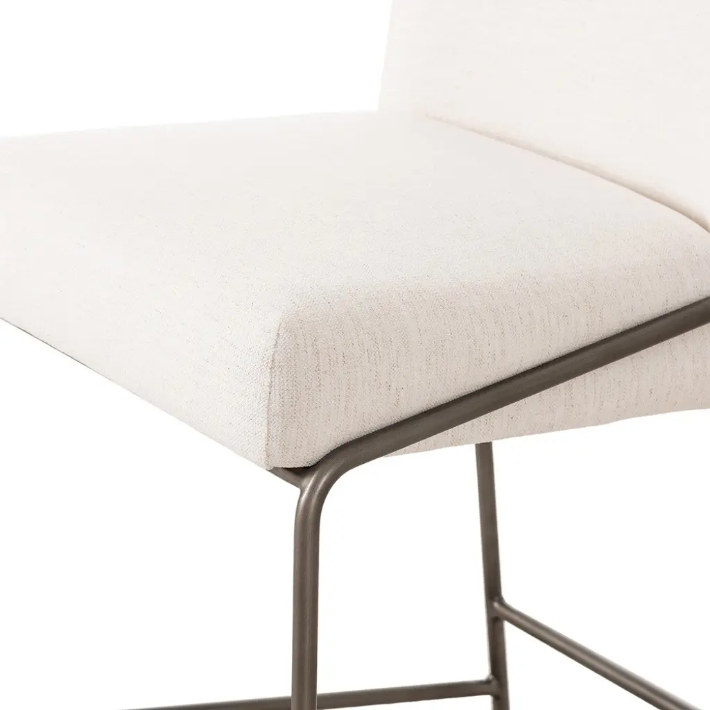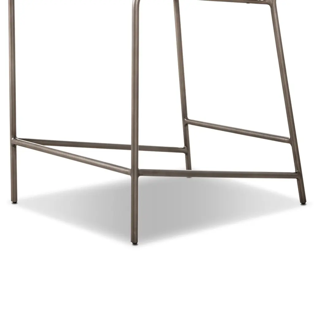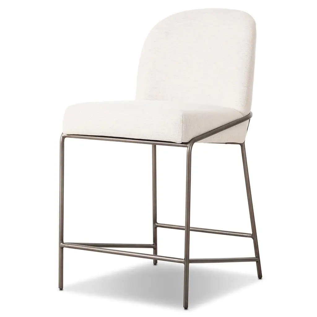 Our Astrid counter stool combines casual comfort with modern industrial style. Finished in brushed slate, its iron tube frame holds a gently curved seat with a cream performance upholstery.