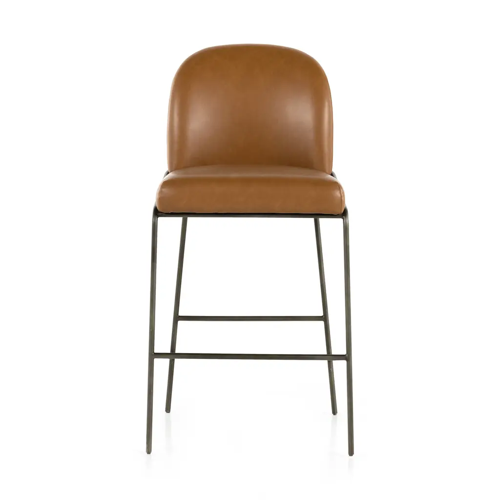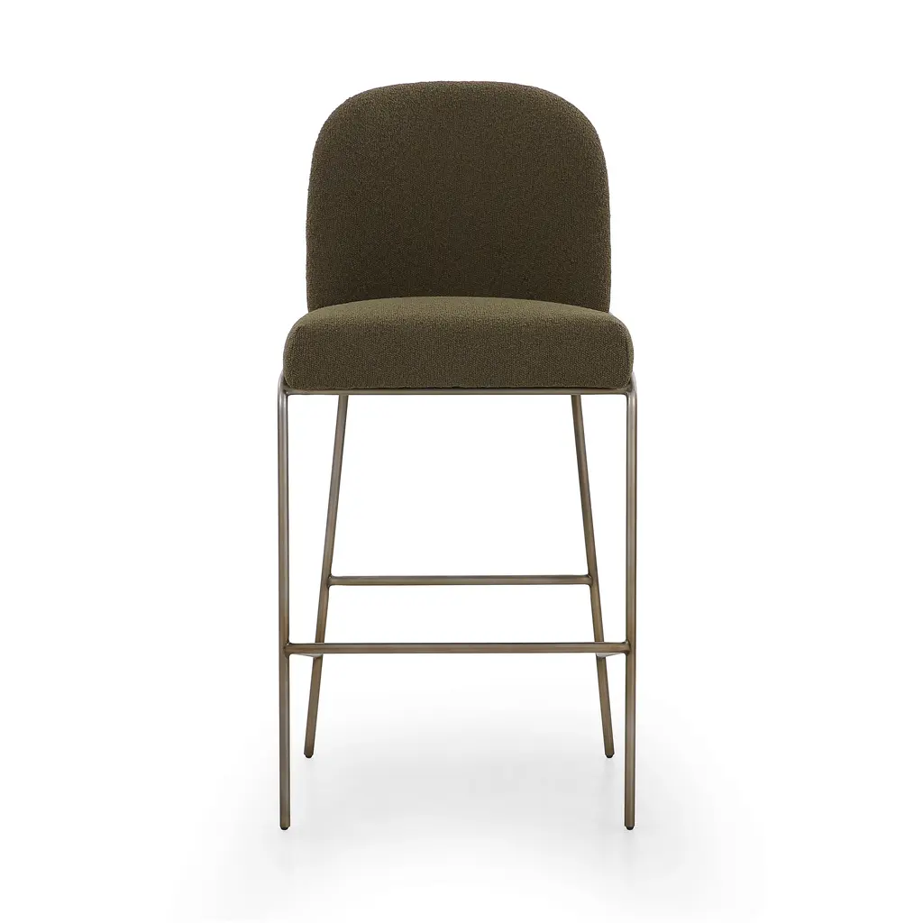 A unique statement piece, the Astrud Bar & Counter Stool from Four Hands is designed to bring dreamy Art Deco flair to any home. Its finely crafted, scalloped back is upholstered with luxurious performance fabric or faux leather atop slim, iron tube framing. The Fiqa fabrics are designed for maximum comfort and durability, and are stain-resistant, water-repellent, and antimicrobial. Add sophistication and timeless style to any room with this exquisite seating design. Highlights