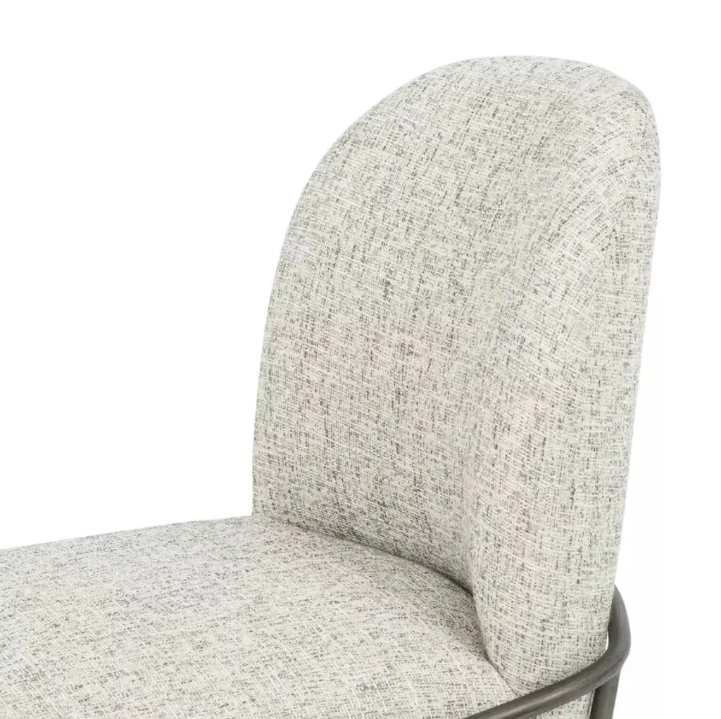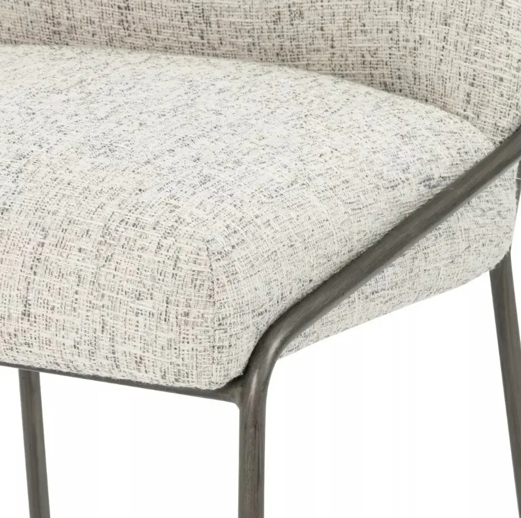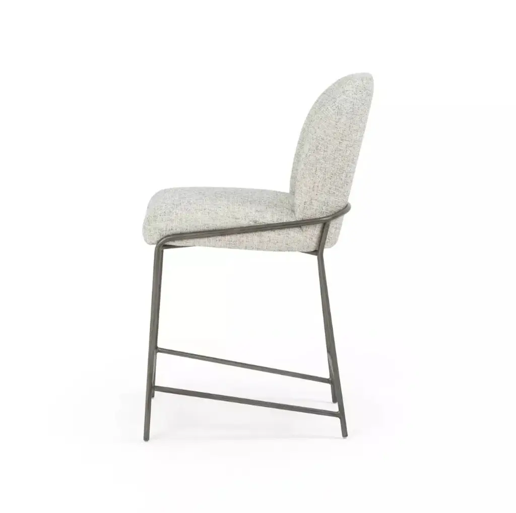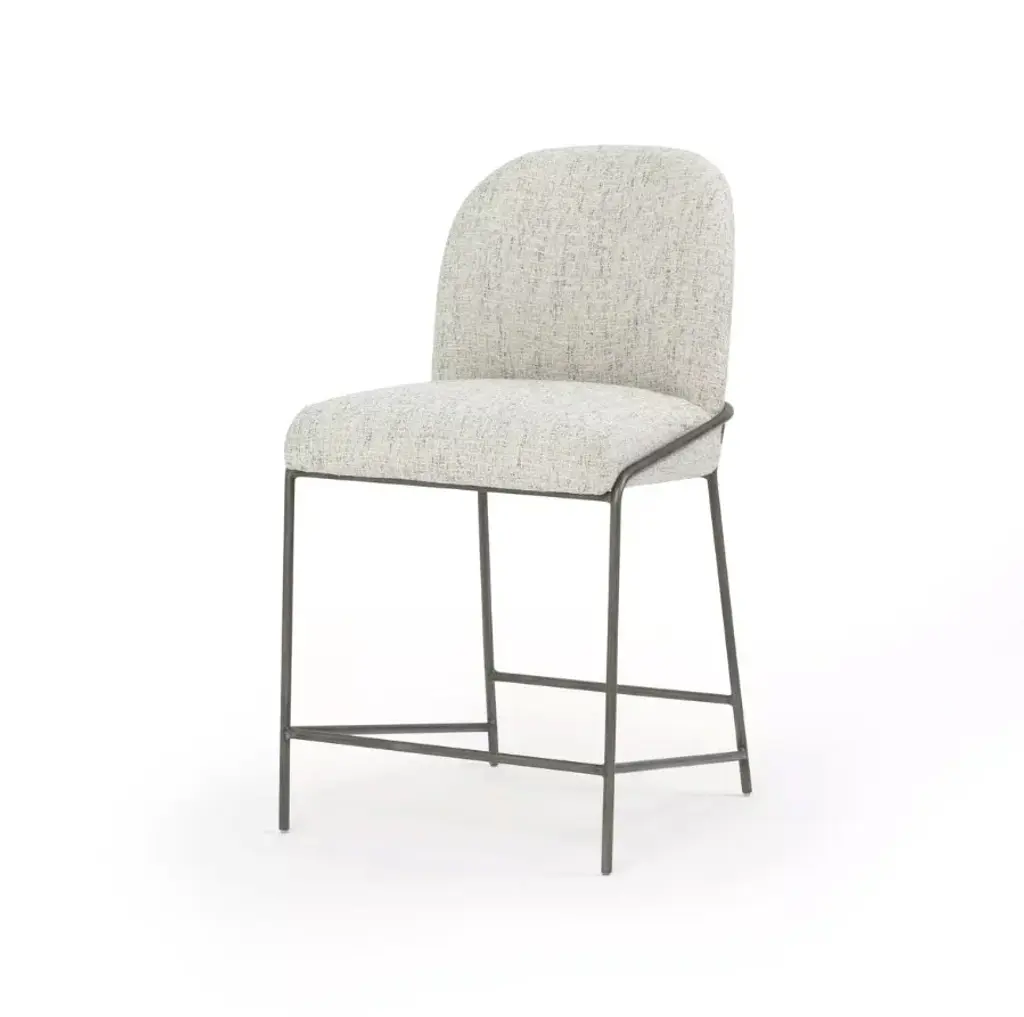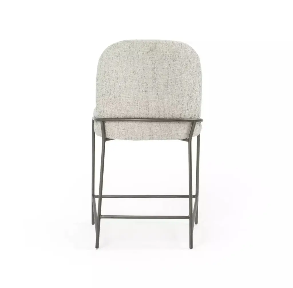The Astrud Counter Stool spotlights a sleek, modern design with slim iron tube framing and a brushed slate finish. Its performance fabric upholstery adds a touch of texture and style.