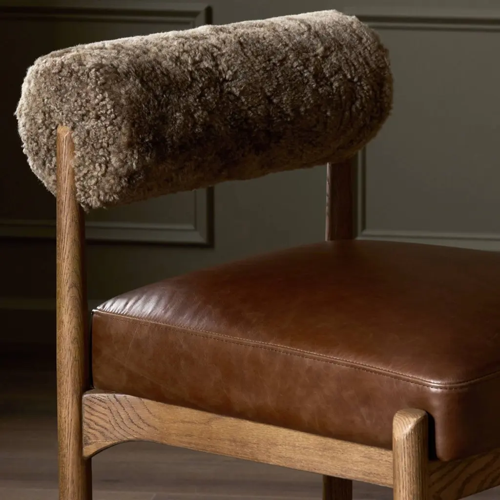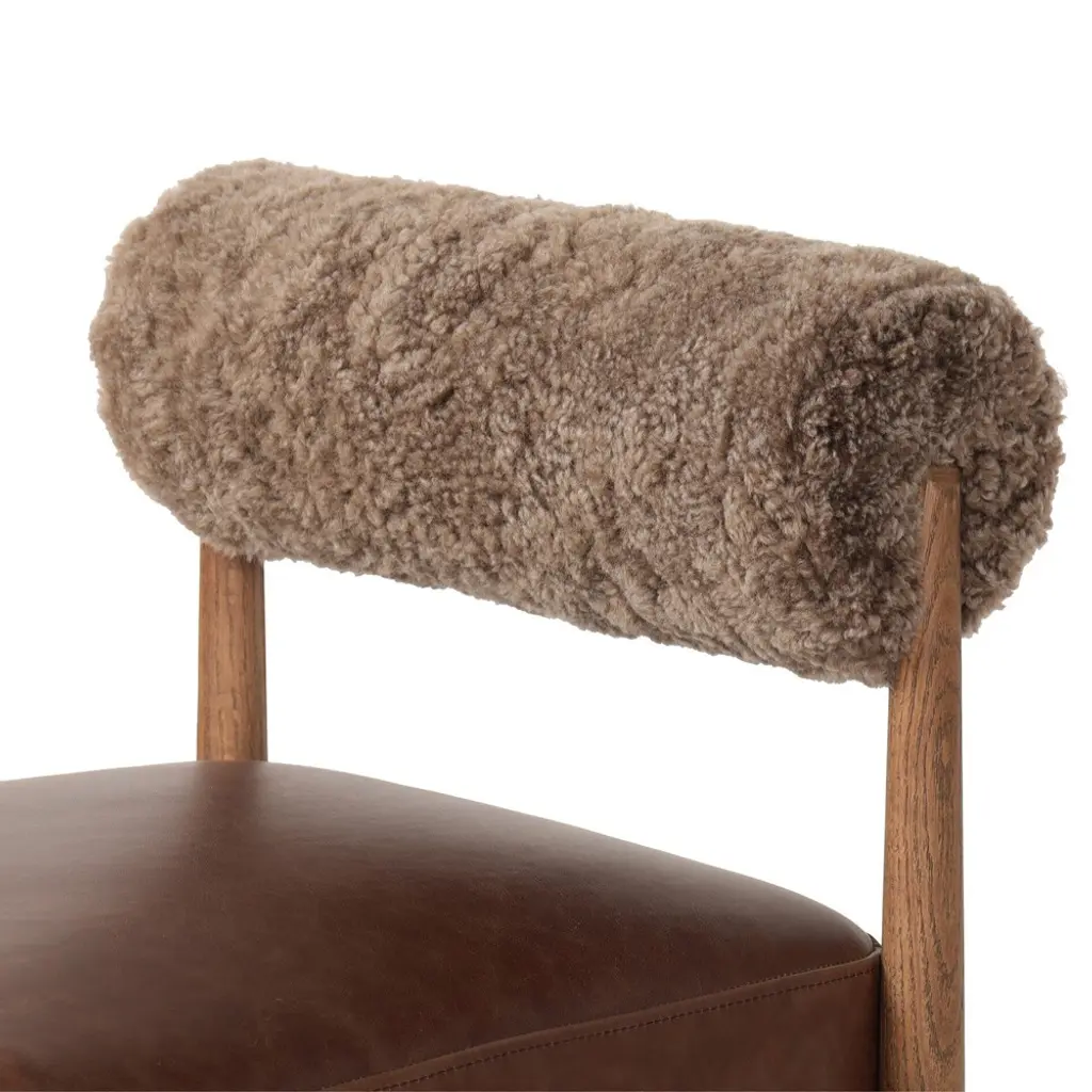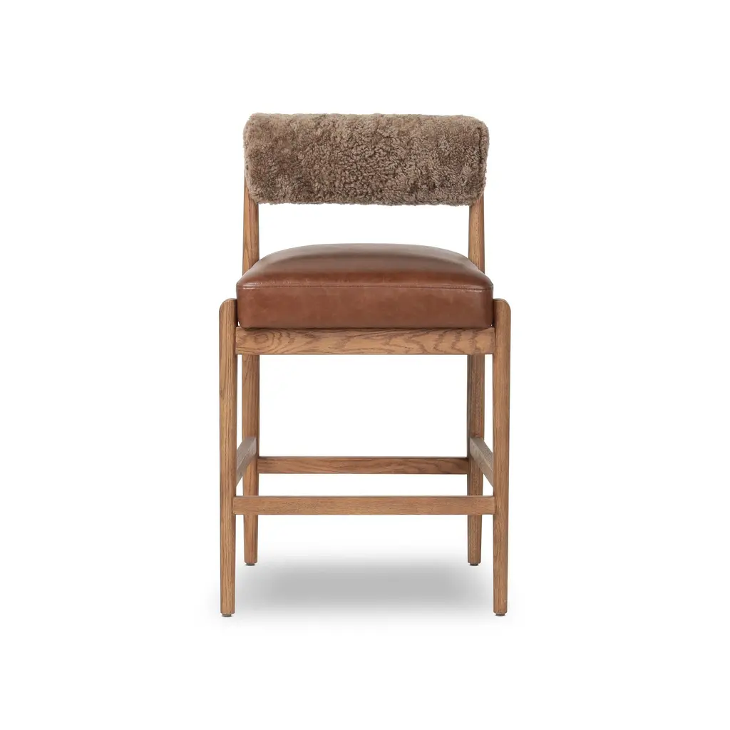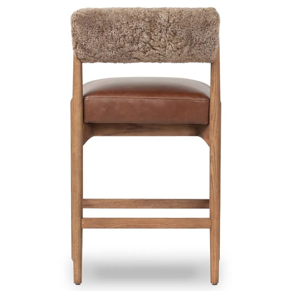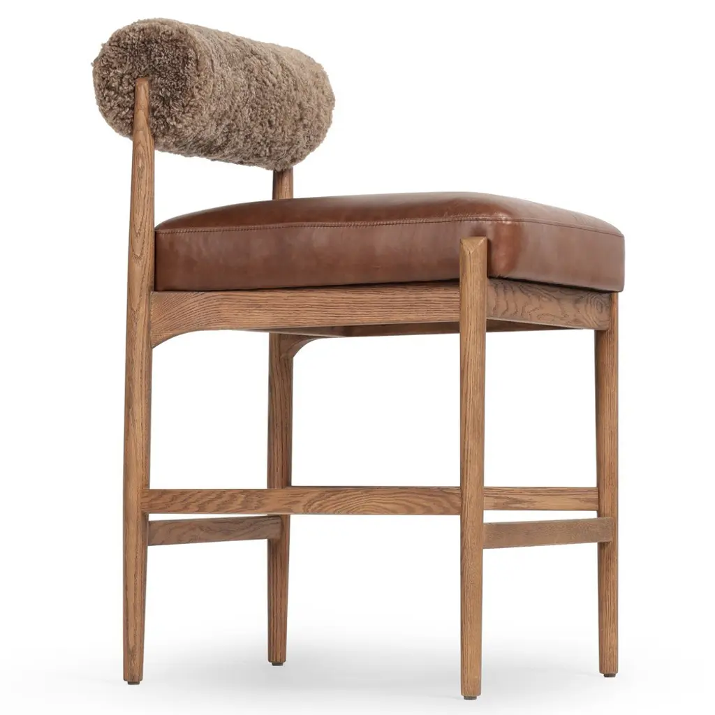 Aven Modern Classic Brown Leather Shearling Oak Counter Stool