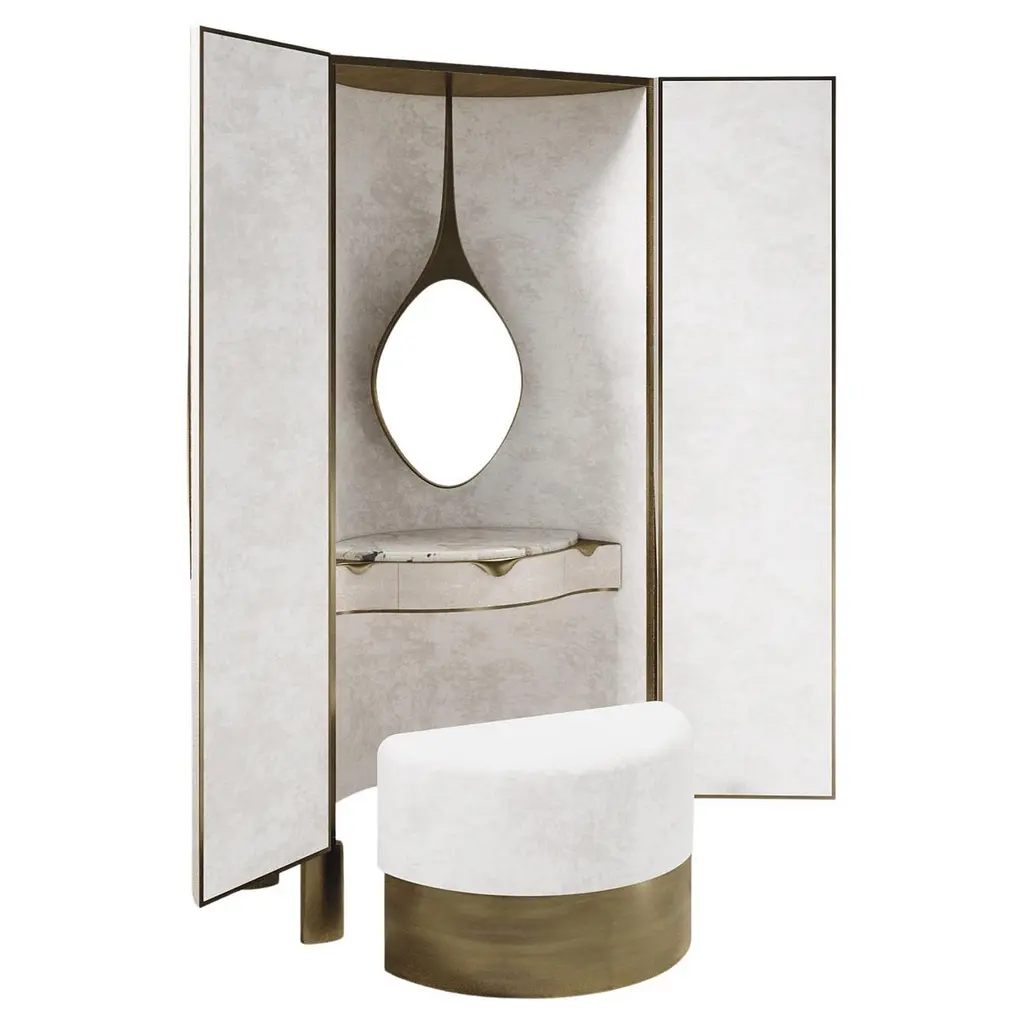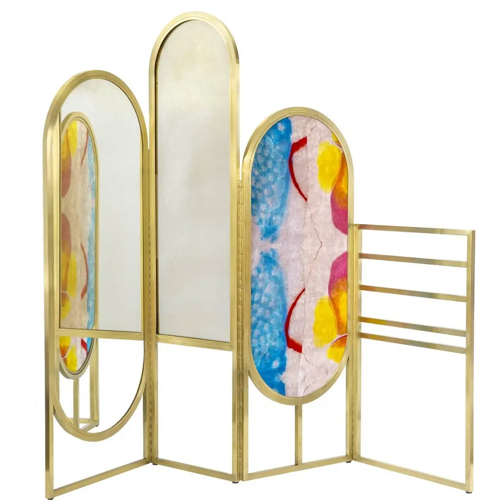 The project’s name speaks to the feeling of anticipation and excitement that precedes an encounter and it’s deeply linked to the purpose of the objects: benches, stools, a mirror, a vanity table, and a room divider. Awaiting is a feminine and sensual collection that mixes a taste of classic and contemporary in pieces of furniture realized in golden brass, glass, and velvet. This piece is the result of a collaboration between Coralla Maiuri and the designer Giorgia Zannellato.