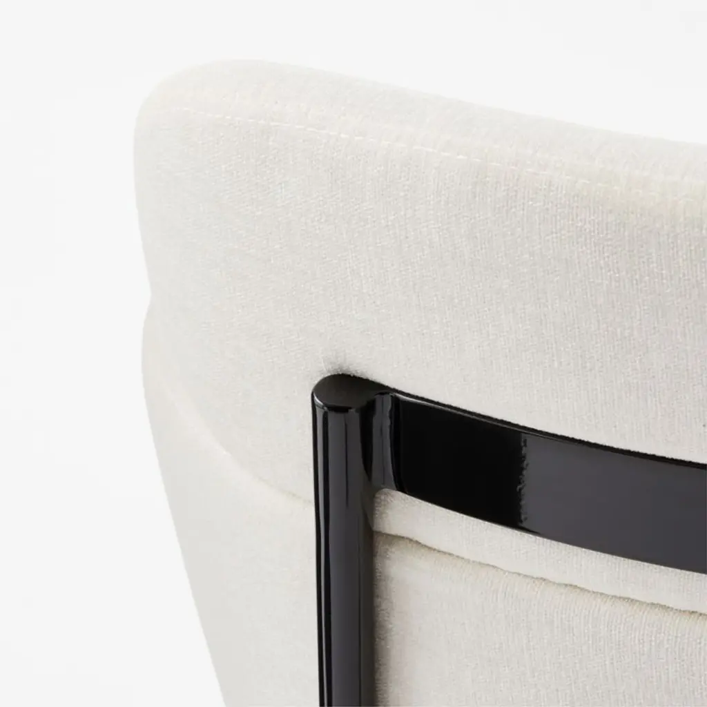 Designed by Caleb Zipperer and curved with two tiers of comfort. Soft cream performance velvet invites guests to stay a while. Sits plush with bottom tier sized just right for arm resting. CB2 exclusive.