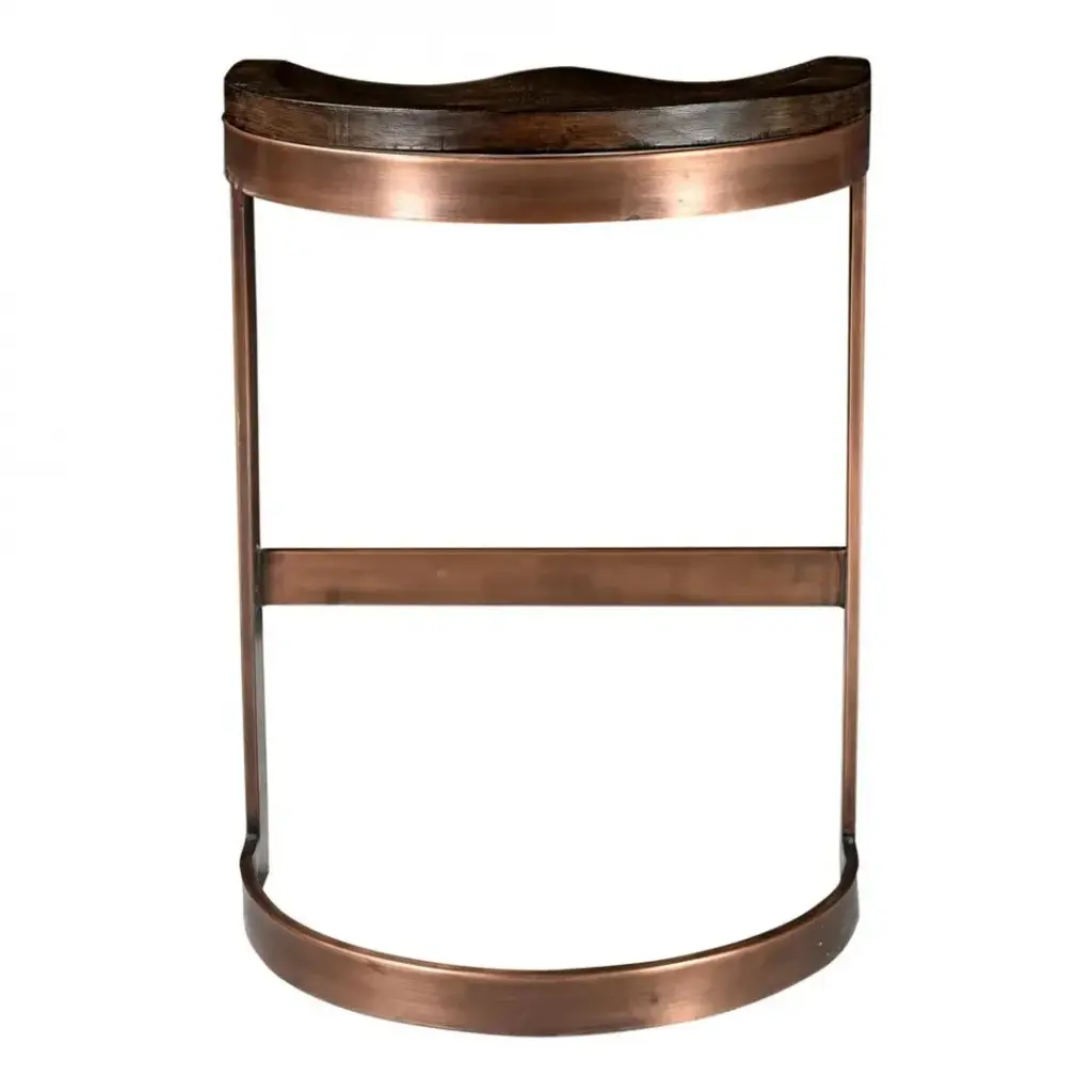 With glam copper detailing, the Bancroft Counter Stool gives a modern edge to the rustic wooden seat. A strong iron base gives and airy feel to your bar area, while a solid mango wood is carved out giving the seat an extra element of comfort. Perfect for any bar area or counter.