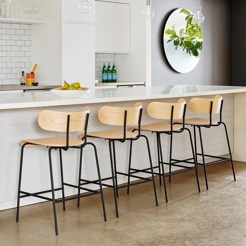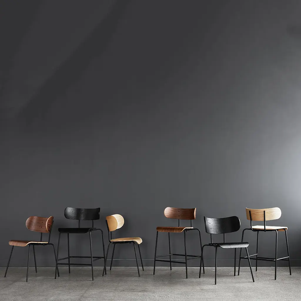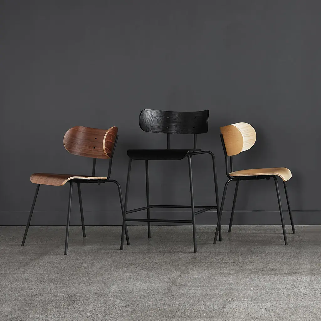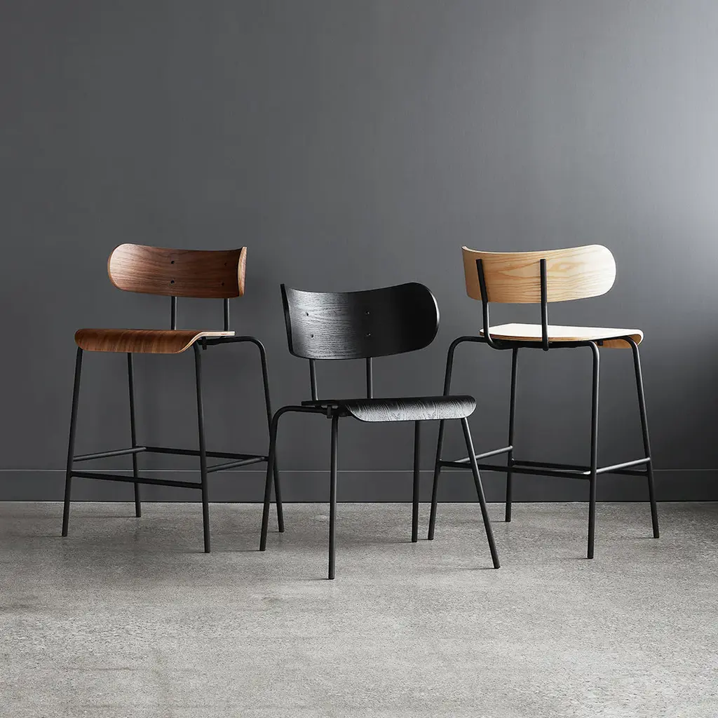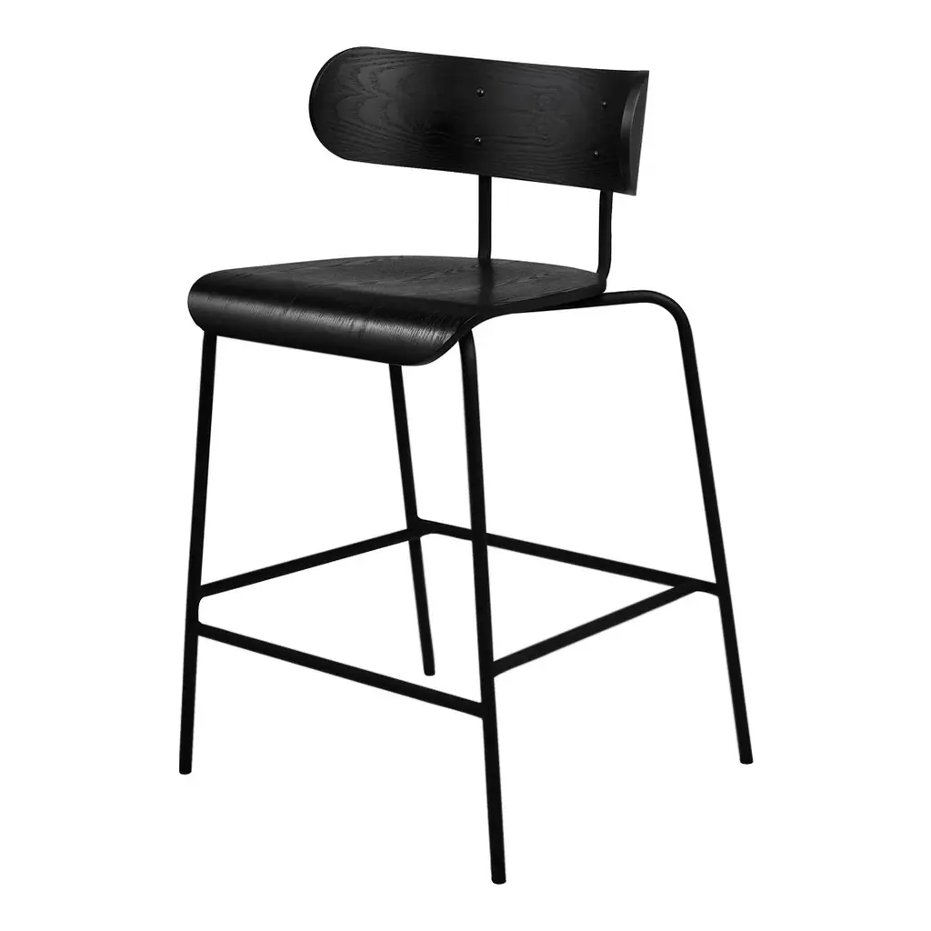 Blending a mid-century design approach with the ease of contemporary living, the Bantam Counter Stool embodies simple sophistication with a sculptural ethos that welcomes you to sit and stay awhile. Delicate steel legs support a formed-plywood seat and back that ergonomically support the body with gentle curves for all-day comfort. Sturdy, yet lightweight, this original design includes an integrated footrest for eXtra support. All you have to do is sit back and appreciate the craftsmanship and versatility of this modern marvel. An instant classic, Bantam is available in Blonde Ash, Black Ash and Walnut.