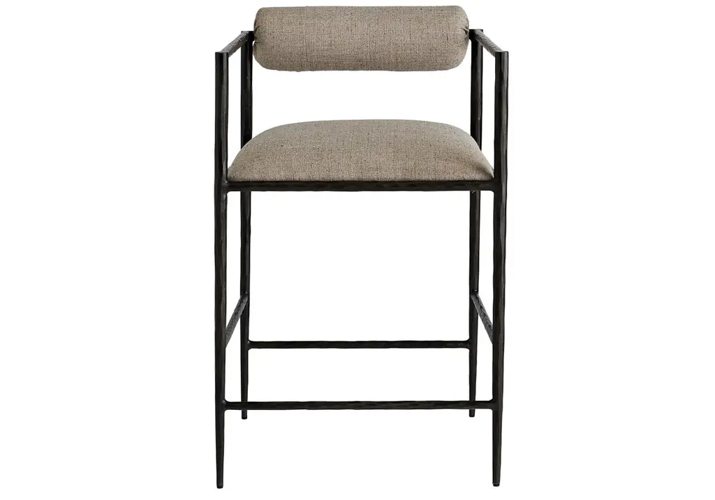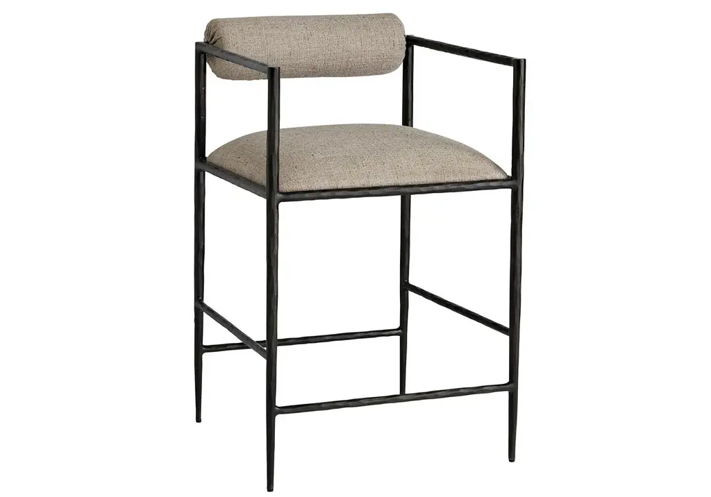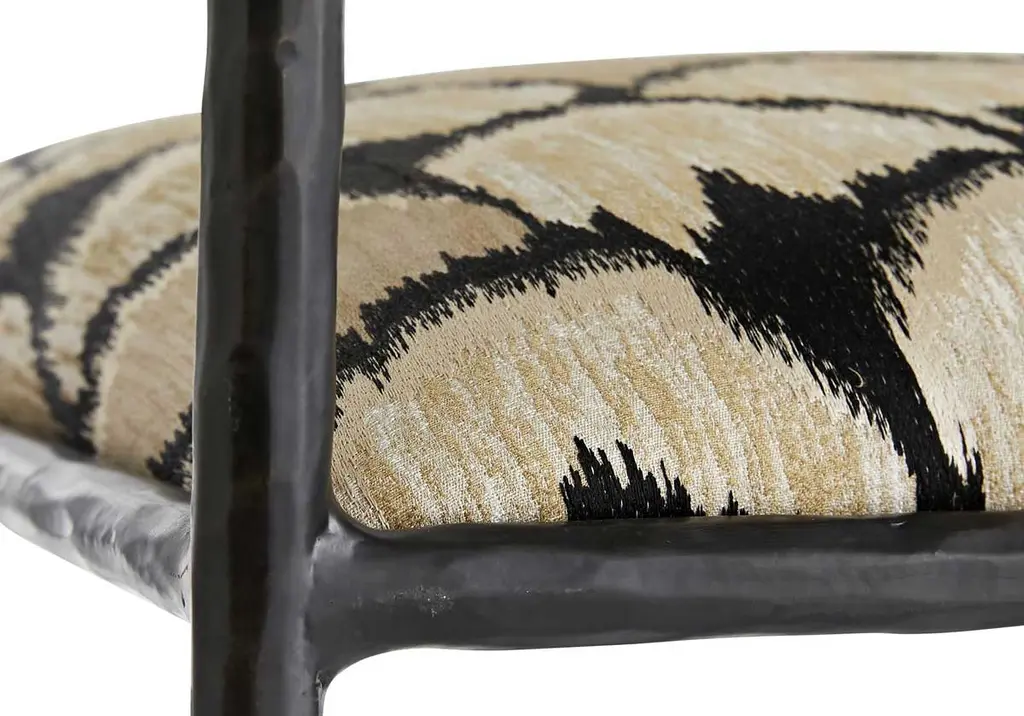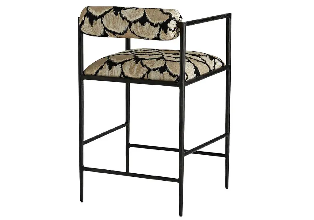 This eye-catching counter stool lends simple elegance and texture with its slender, hand-forged iron frame. A rounded back cushion and comfortable seat elevate its tasteful design. Available in sophisticated ocelot embroidery or incredibly versatile pewter.