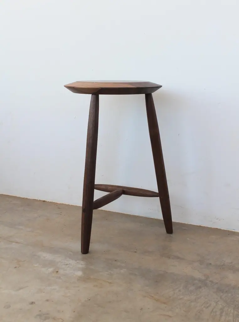 Light and strong, the Beachcomber Counter Stool evokes the sight of an old wooden single hull; it's lean, sturdy mast together with the rigging worthy of the high seas. Constructed of hand shaped legs and stretchers, each piece is carefully fit and pinned with hardwood pegs and wedges to last for generations, much like the sea craft that inspire them.For every bar stool, we start with scrupulously chosen lumber; each board must consist of straight grain and have absolutely no defects. This is not just for aesthetics, the clear grain gives the stool its strength. The boards are then milled to dimension and shaped by hand using a combination of machines and time honored hand tools. They are then given a polish by taking thin shavings with well sharpened planes and spokeshaves; rarely is sandpaper used in our shop. Once assembled, the Beachcomber bar stool receives a natural oil and wax finish. Shown in walnut, the piece is also available in white oak.