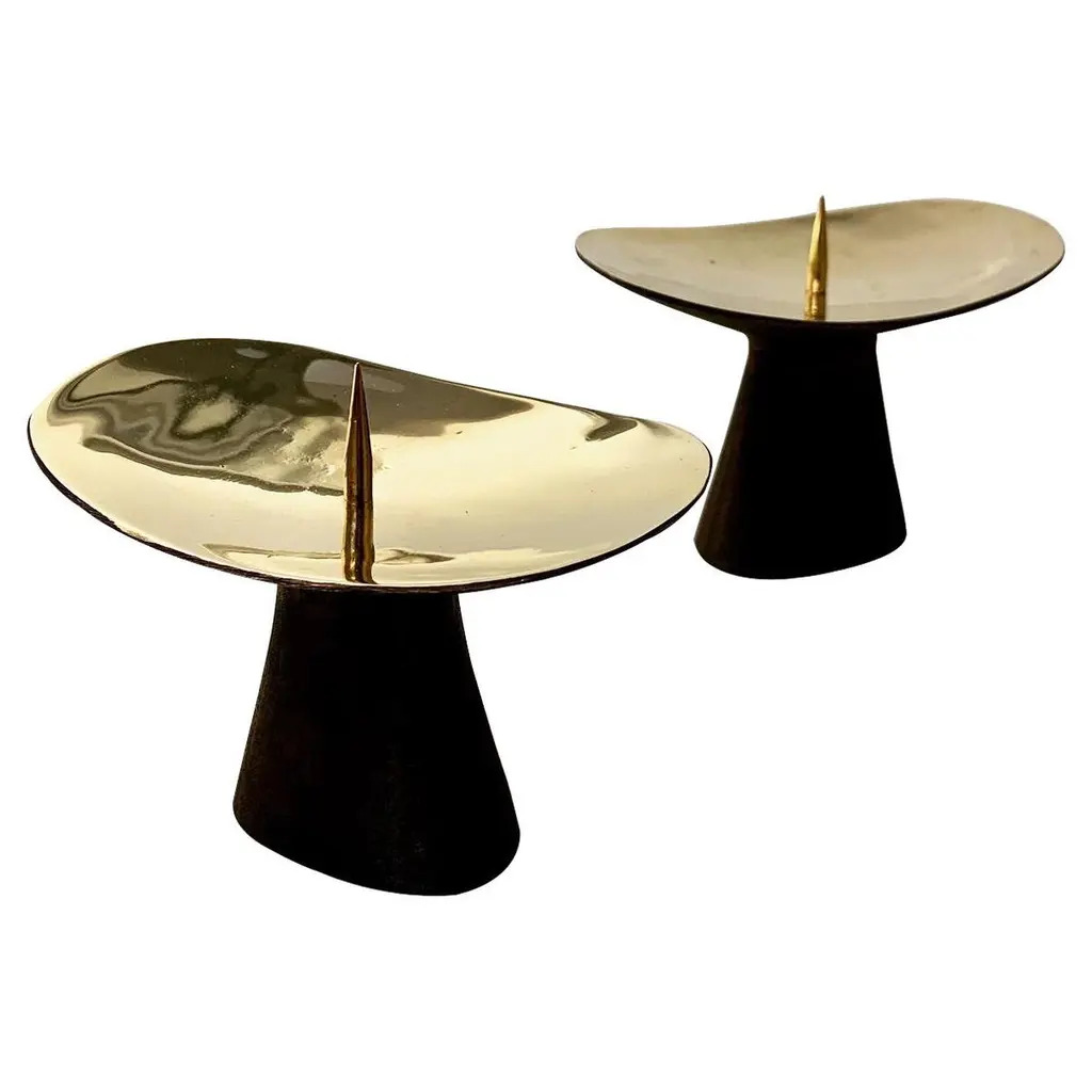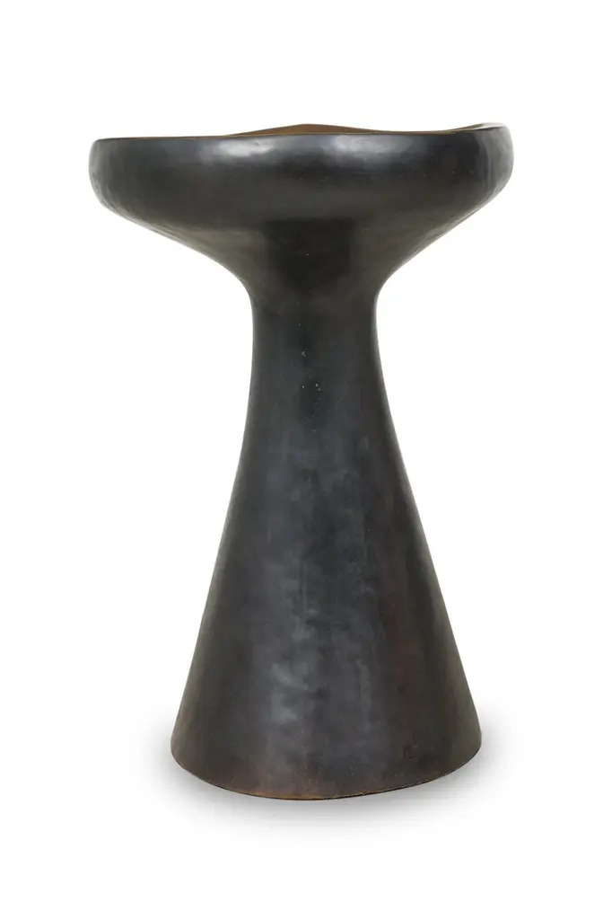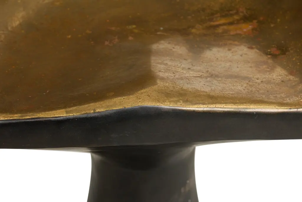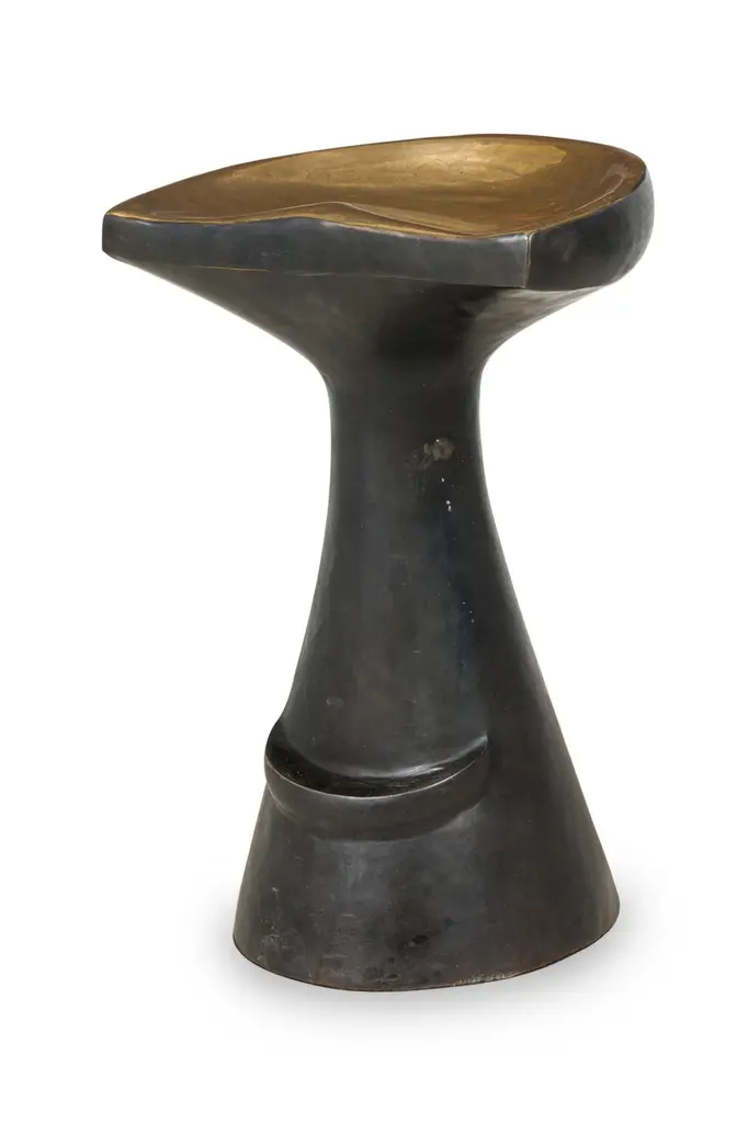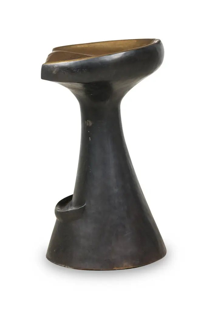 4 "Beatriz" counter stools featuring an industrial / biomorphic design that combines an organic form of a brass seat and contrasting dark patinaed textured base into a work of sculptural modernism. (PRICED EACH)