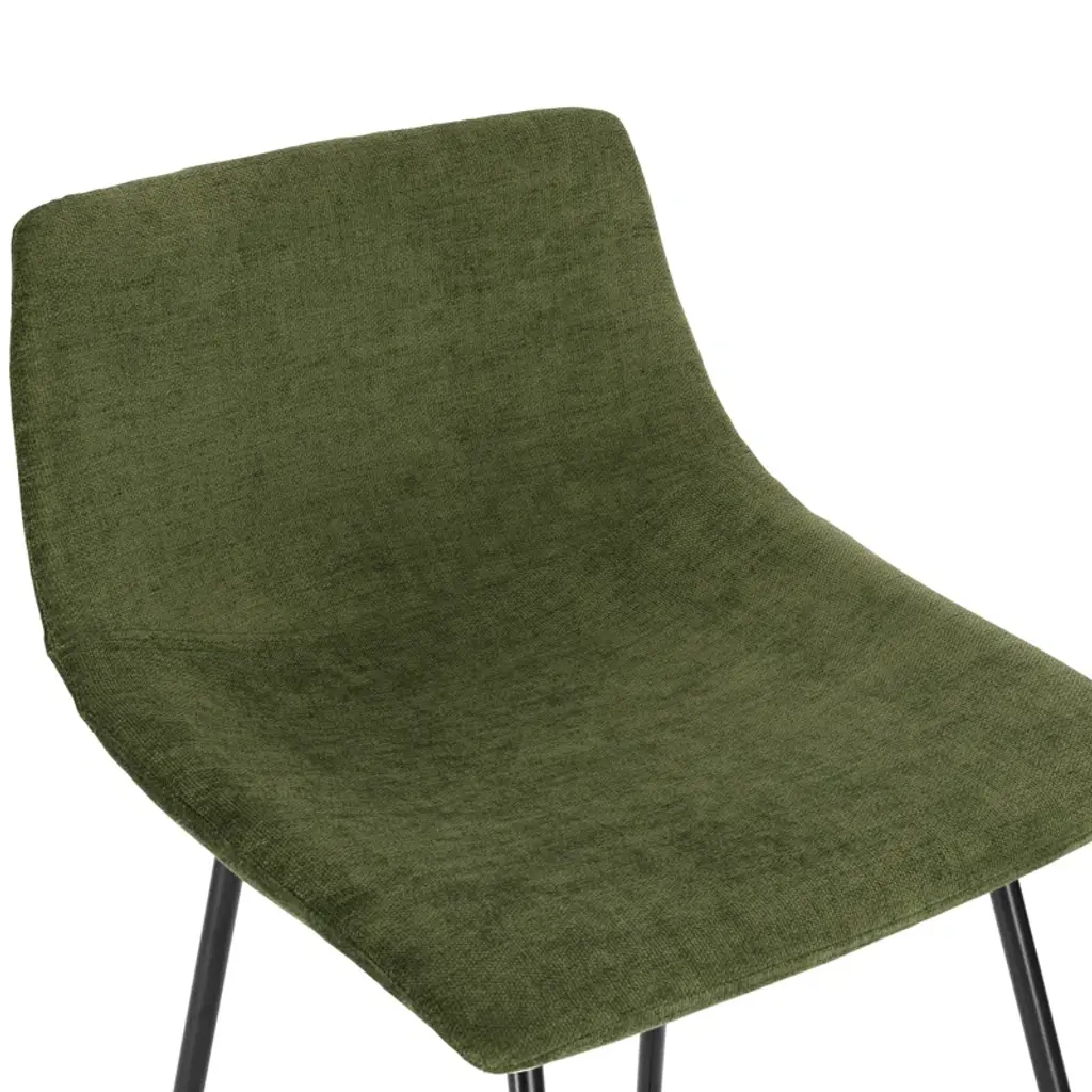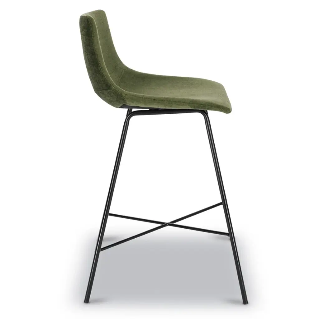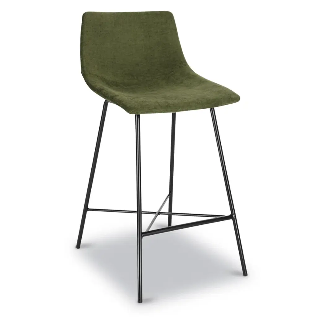 Slide up a seat to your dining table or kitchen island with this sleek counter stool. It rests on two airy + arched powder-coated metal legs with a matte black finish, and it showcases a built-in cross brace on the bottom to support your feet. The mid-century-inspired bucket seat is upholstered in foam-filled velvet upholstery in a weathered green hue for a textured feel while you catch up with friends. Plus, since it comes in a set of three, this trio of stools makes getting a matching look a breeze. These stools accommodate up to 275 lbs.