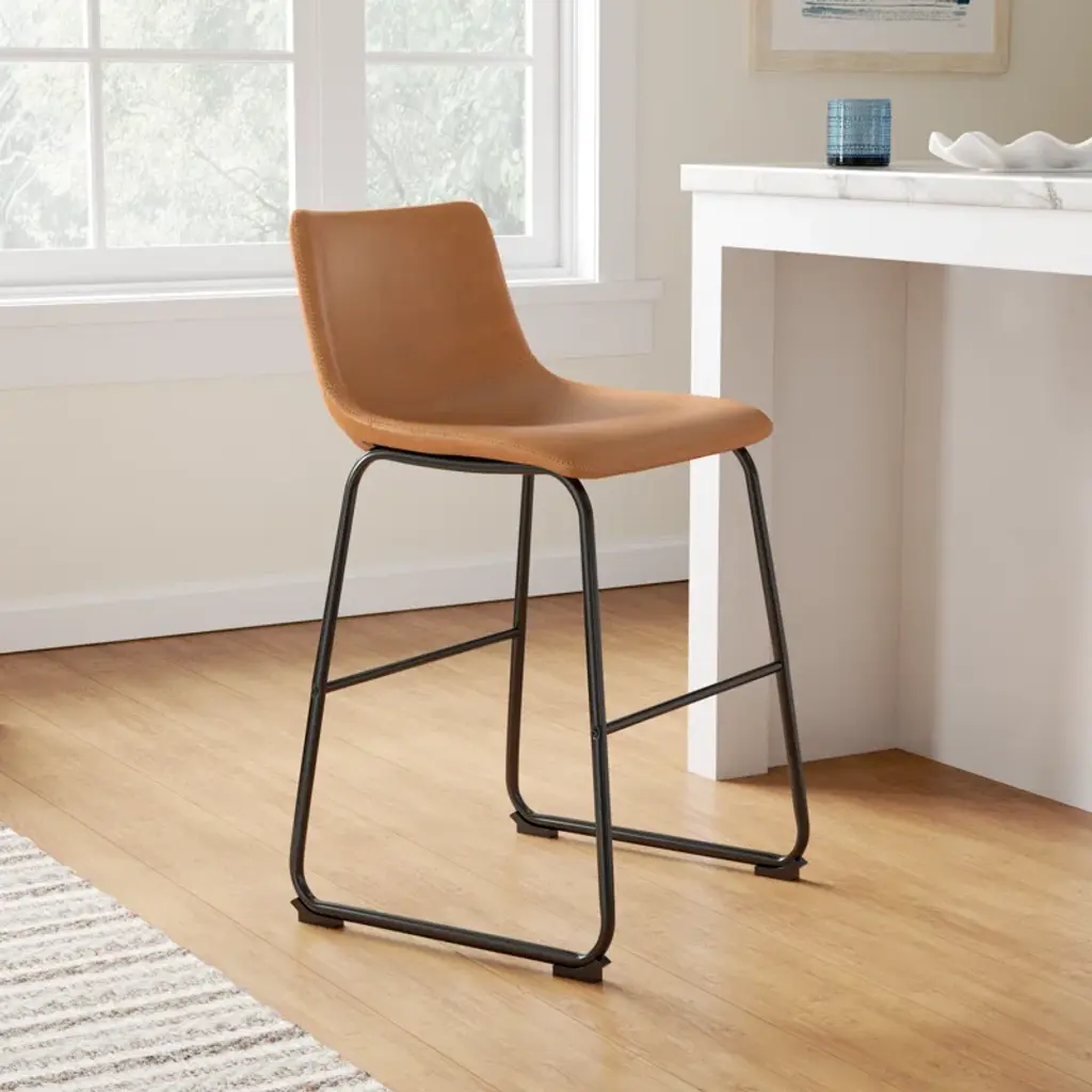 Bring a vintage-inspired look and a welcoming vibe into your home with this 3-piece set of counter stools. A steel sled base adds an open appearance, while the seat and back are wrapped in stitched faux leather. Foam padding provides just the right amount of support as you enjoy dinner or drinks at your kitchen island or home bar.