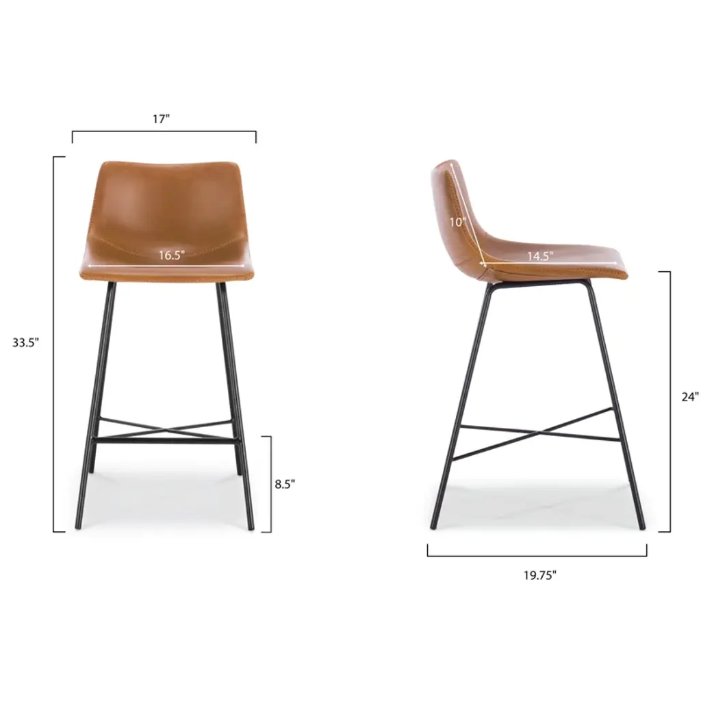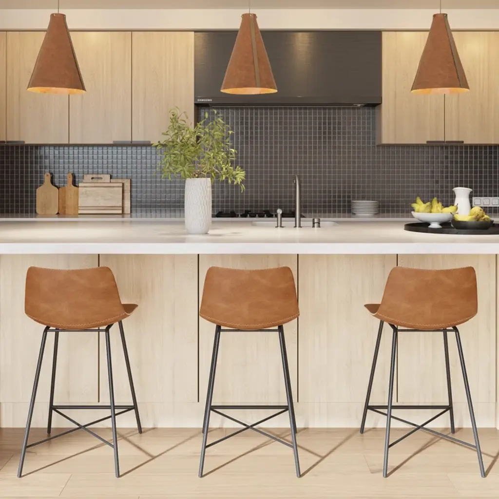 Bring a vintage vibe to your dining area with this trio of counter stools that evokes the look of old-school diner seating. Each one features a slender steel frame with a footrest and crossbar supports. A powder-coated black finish contrasts with the easy-care faux leather seat for a bold look we love. Prominent topstitching adds a touch of visual interest to the overall design.