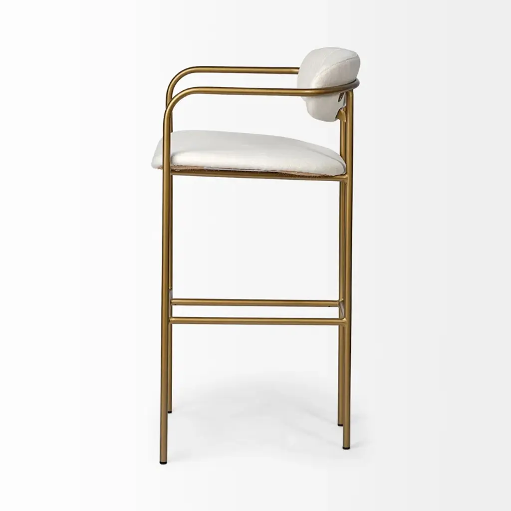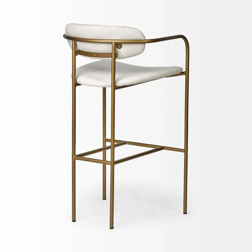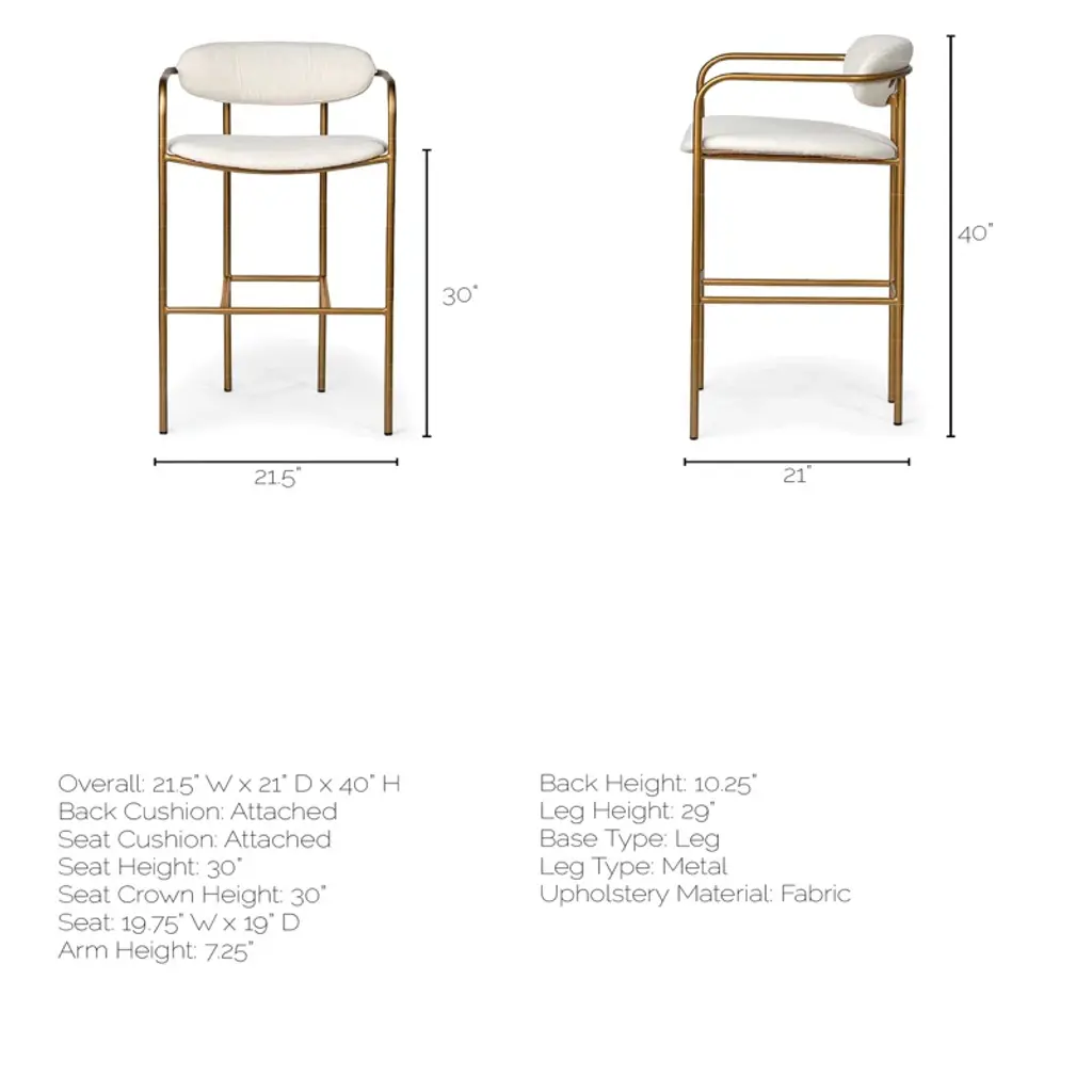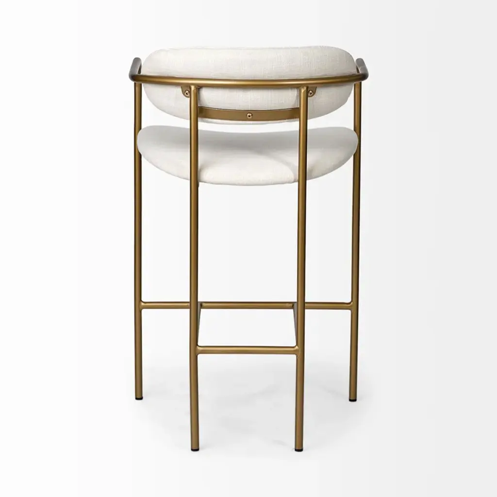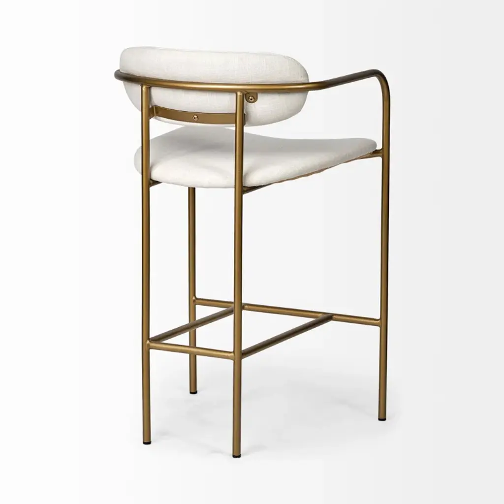 Belarus is a simple yet stylish counter stool featuring a gray fabric-covered seat and back perched atop a sleek, four-legged metal frame.