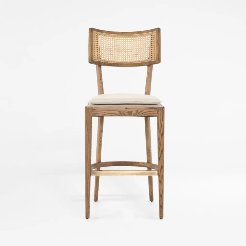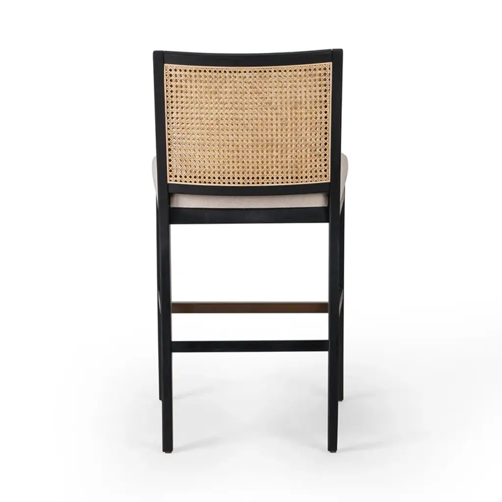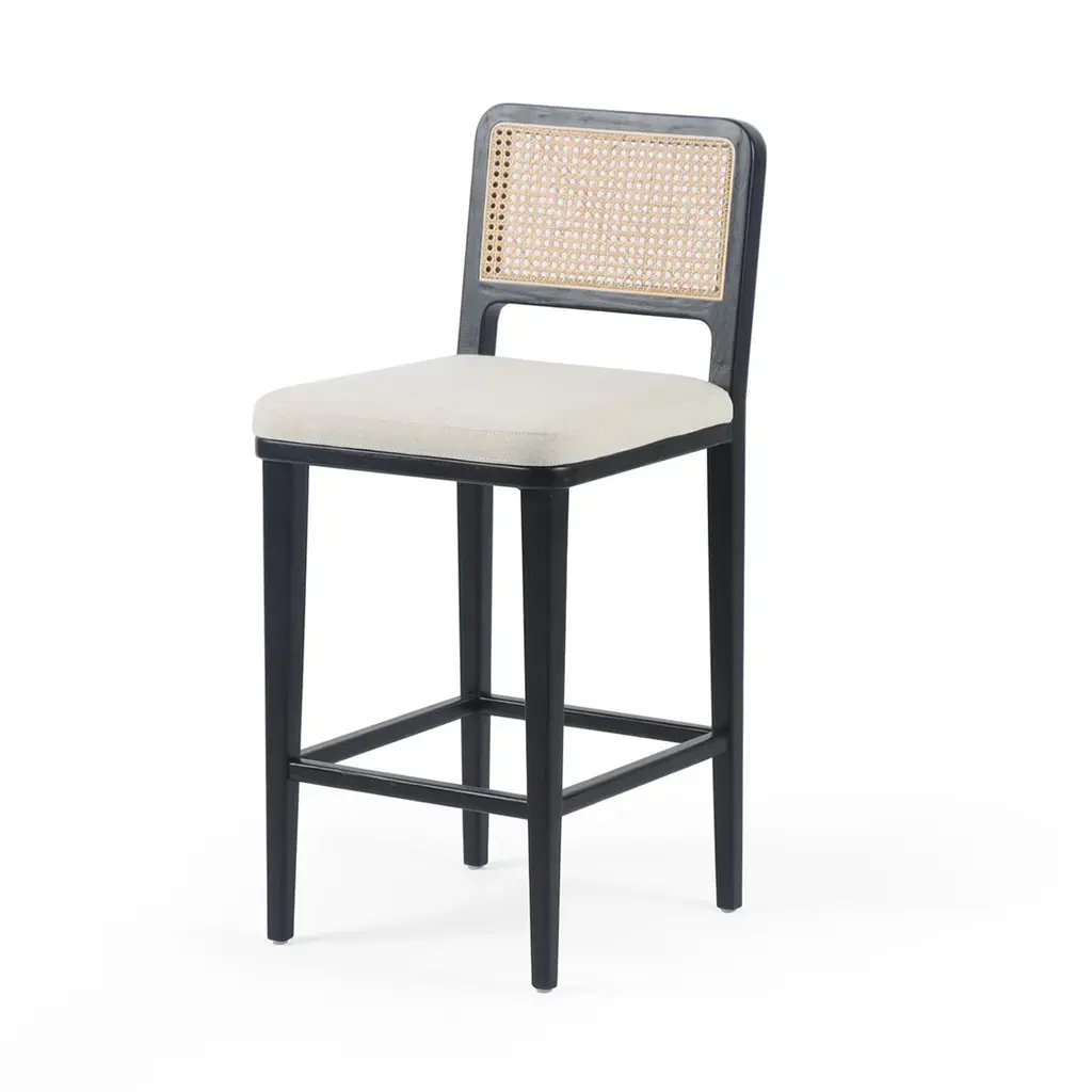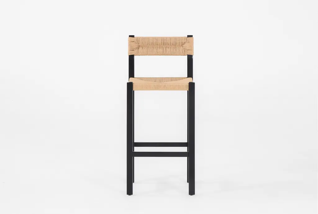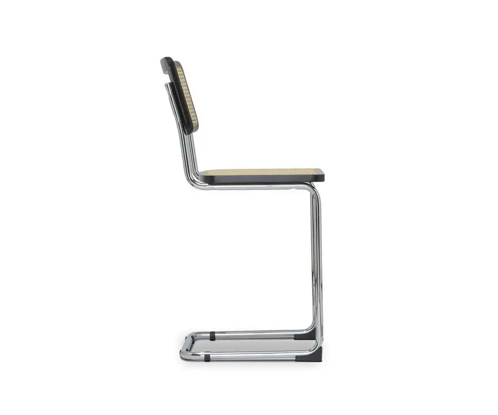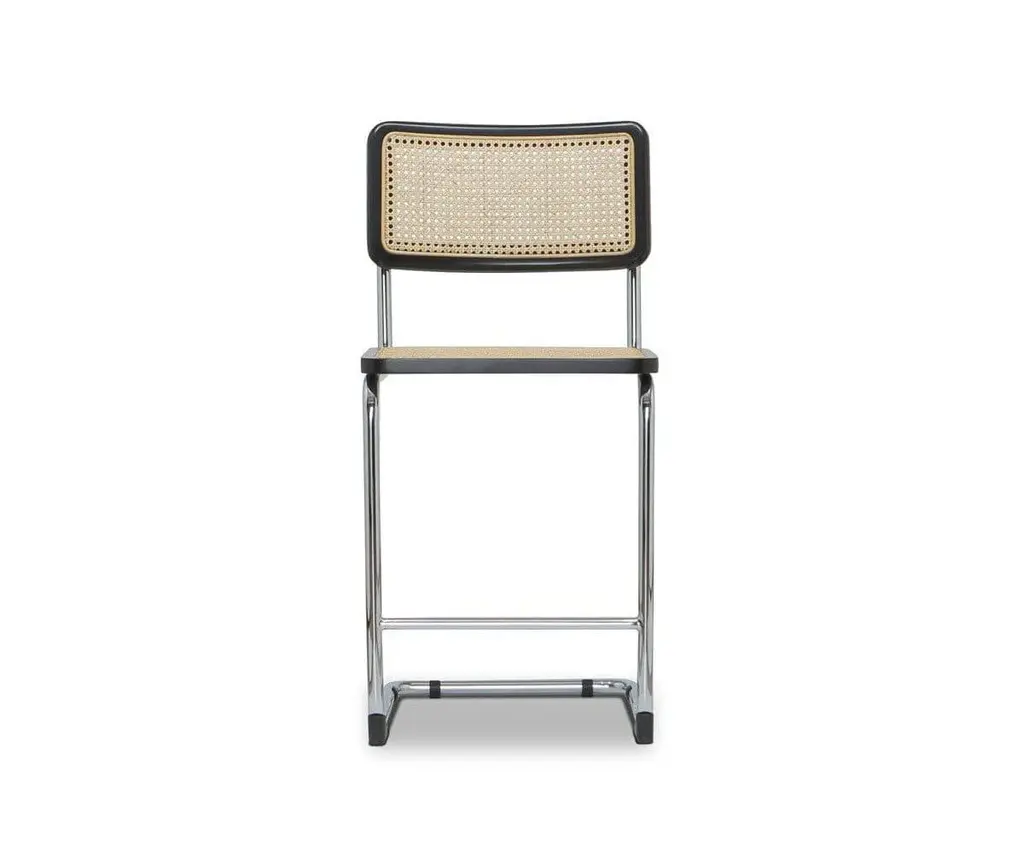 The Bendt counter stool is crafted with solid European beech that frames the cane seat and backrest. A cantilevered metal frame is finished in polished chrome for a distinctive mid-century look. The natural feel of this piece is anchored by the organic color variation in the cane seating.