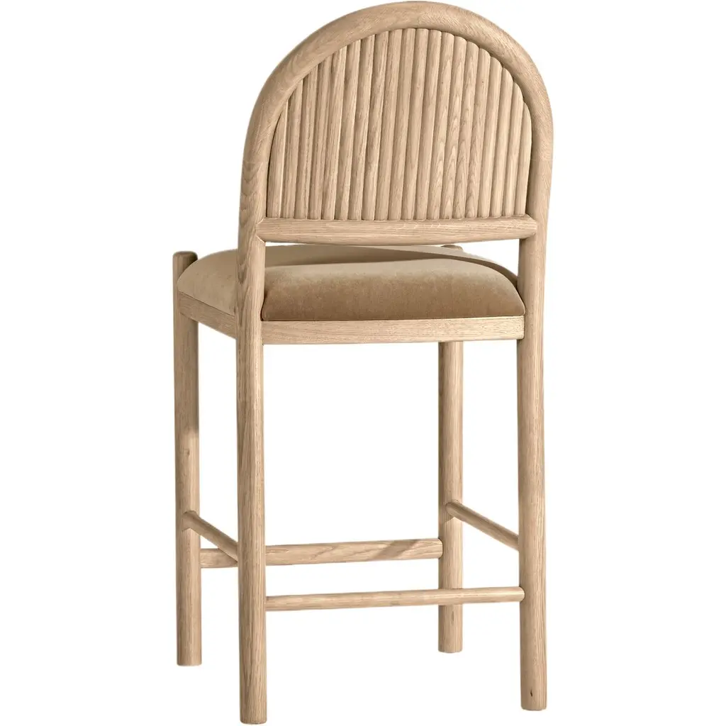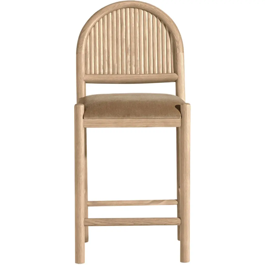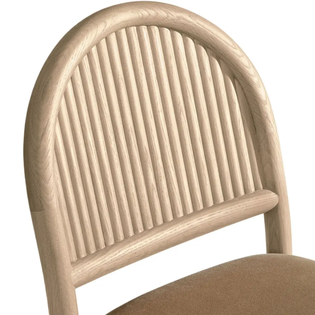The Bennett arched dining chair and counter stool exudes sophistication with its elegantly reeded back, offering a touch of texture that enhances its refined design. The plush velvet seat provides not only comfort but also a stylish flair, making it a perfect addition to any dining or counter space. This piece seamlessly combines elegance and comfort, ensuring it stands out in any setting.