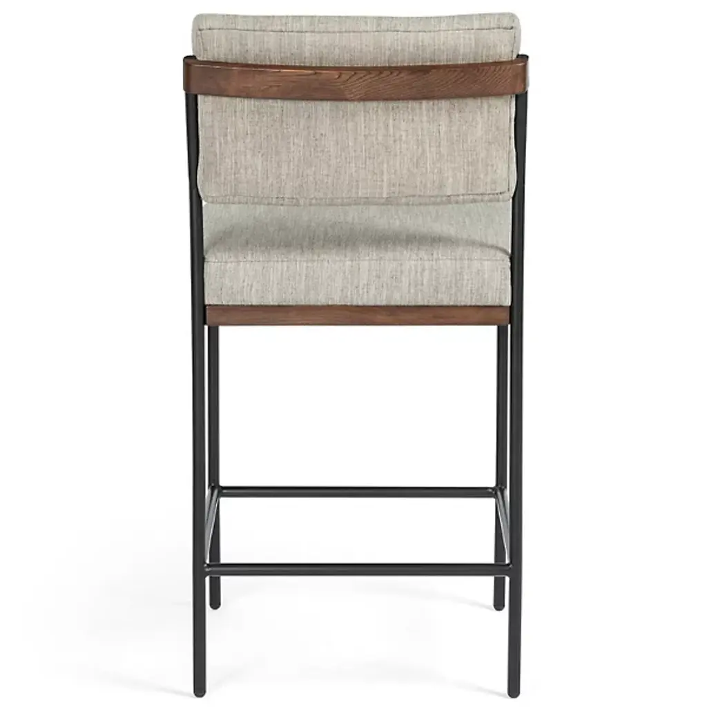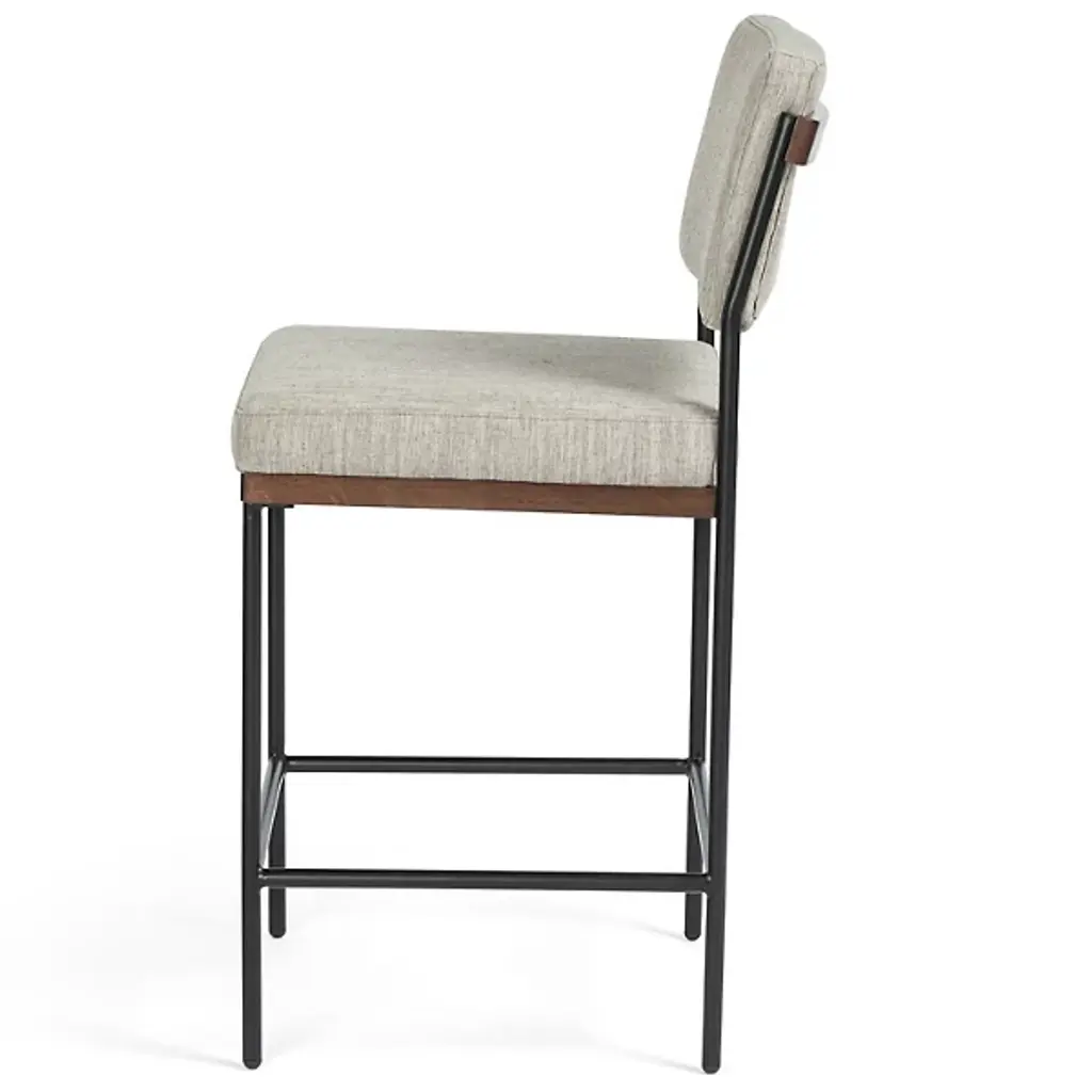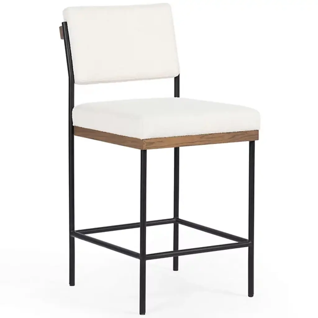 Enhance your kitchen islands and counters with the sleek design of the Benton Bar / Counter Stool from Four Hands. A direct design that infuses its surroundings with a fresh, modern look, its slender, strong structure is engineered using slim iron frames in a sophisticated black finish. Offset by the nettlewood deck detailing on the seat, the open metal construction provides airy elegance that doesn't compromise on stability, while tight-tailored upholstery ensures comfort and durability.
