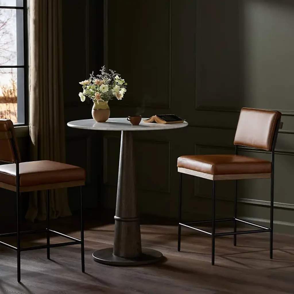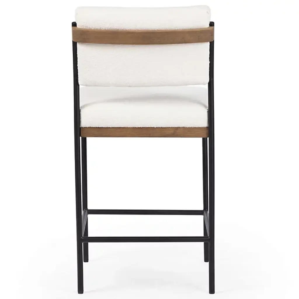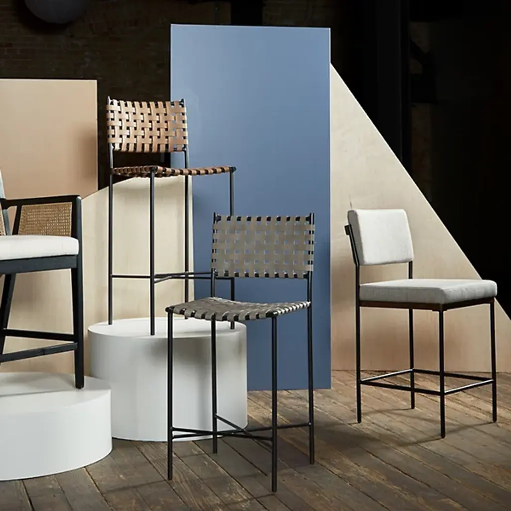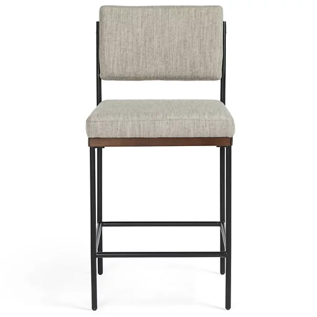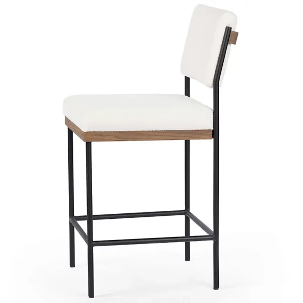 Enhance your kitchen islands and counters with the sleek design of the Benton Bar / Counter Stool from Four Hands. A direct design that infuses its surroundings with a fresh, modern look, its slender, strong structure is engineered using slim iron frames in a sophisticated black finish. Offset by the nettlewood deck detailing on the seat, the open metal construction provides airy elegance that doesn't compromise on stability, while tight-tailored upholstery ensures comfort and durability.