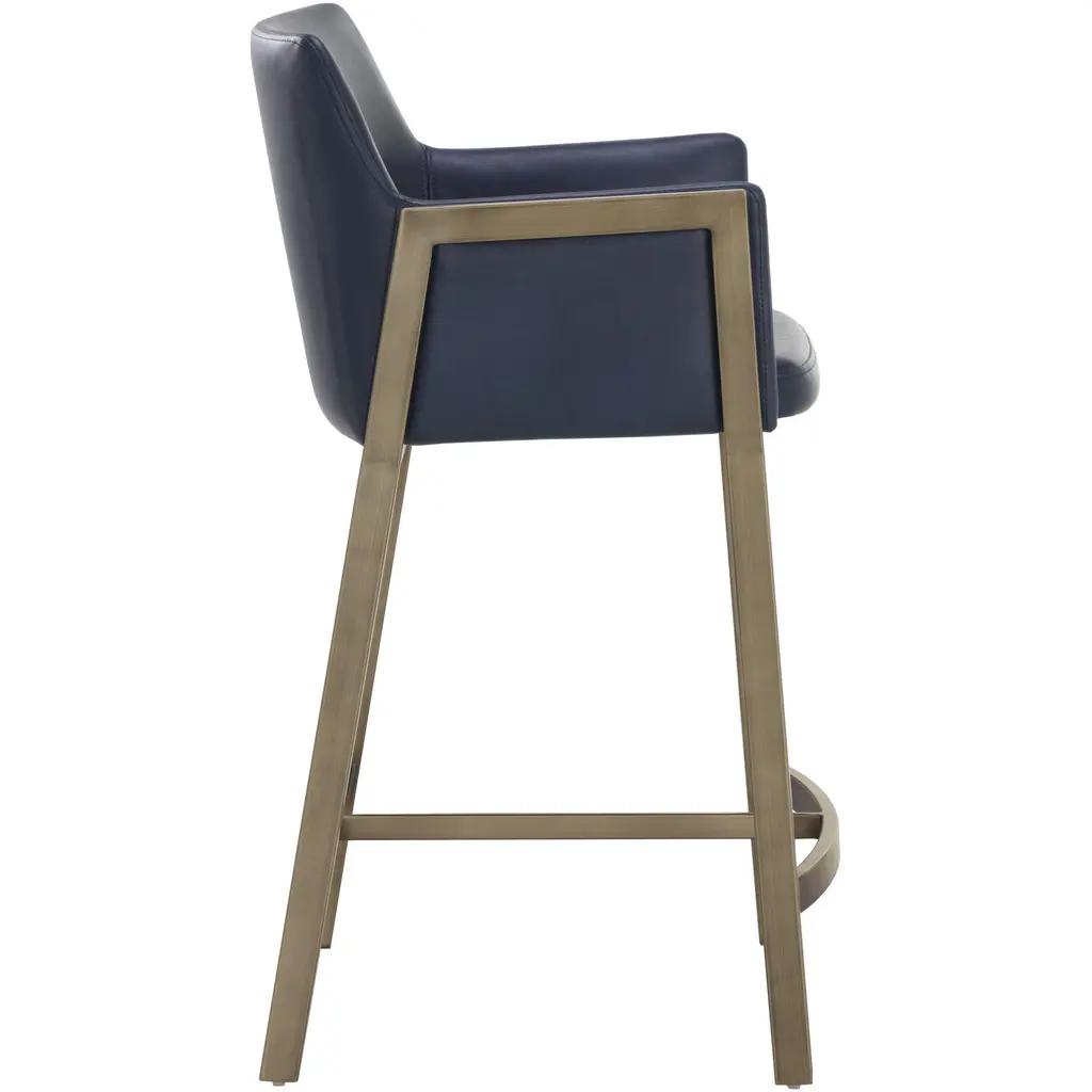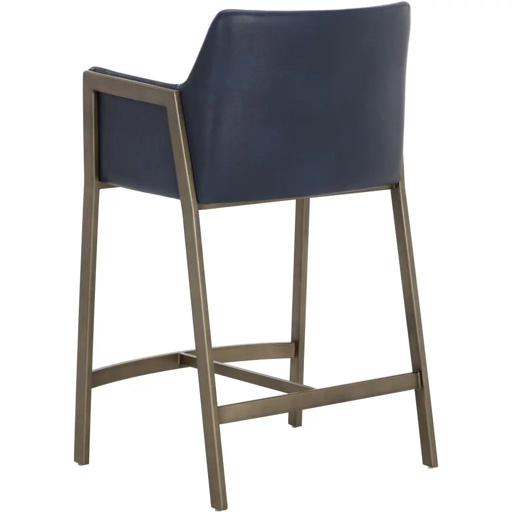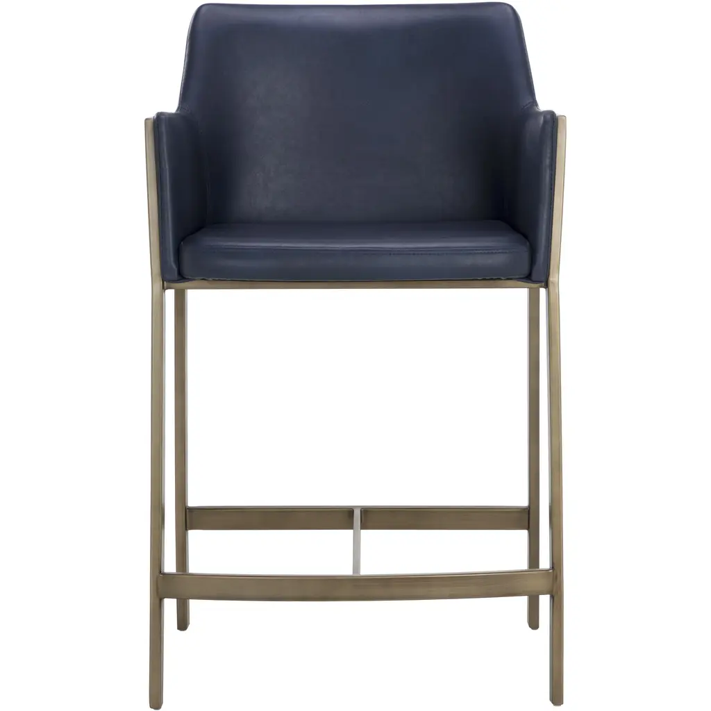 The Bernadette Counter Stool features a shapely design with a powder-coated antique brass frame. Upholstered in bravo admiral faux leather for added style and durability. Handle With Care: This design has been crafted with faux leather. Faux leather is manufactured to reflect the natural characteristics of leather as such, colour variations, markings wrinkles, grooves, and light scratches are appreciated characteristics. No two pieces will be alike. Visit our Product Care page for more information on how to ensure the lasting beauty of this piece.