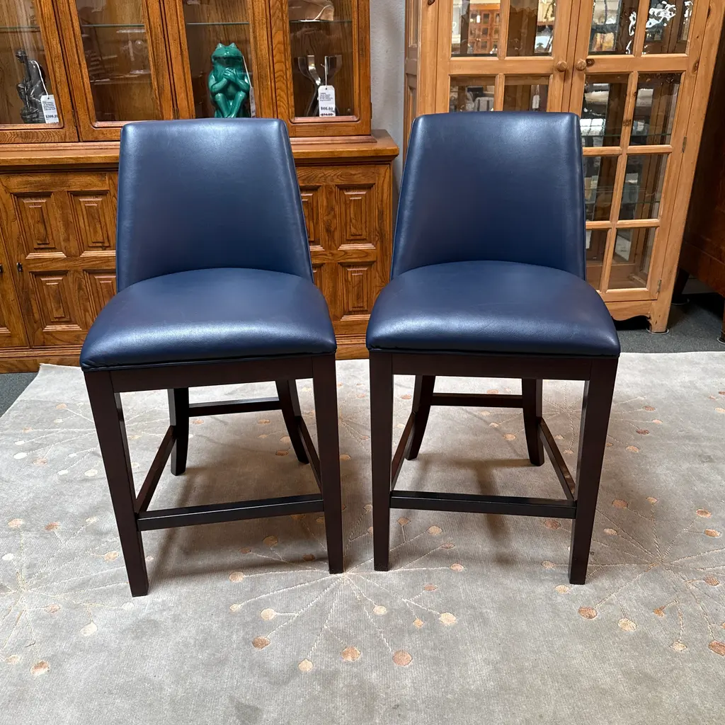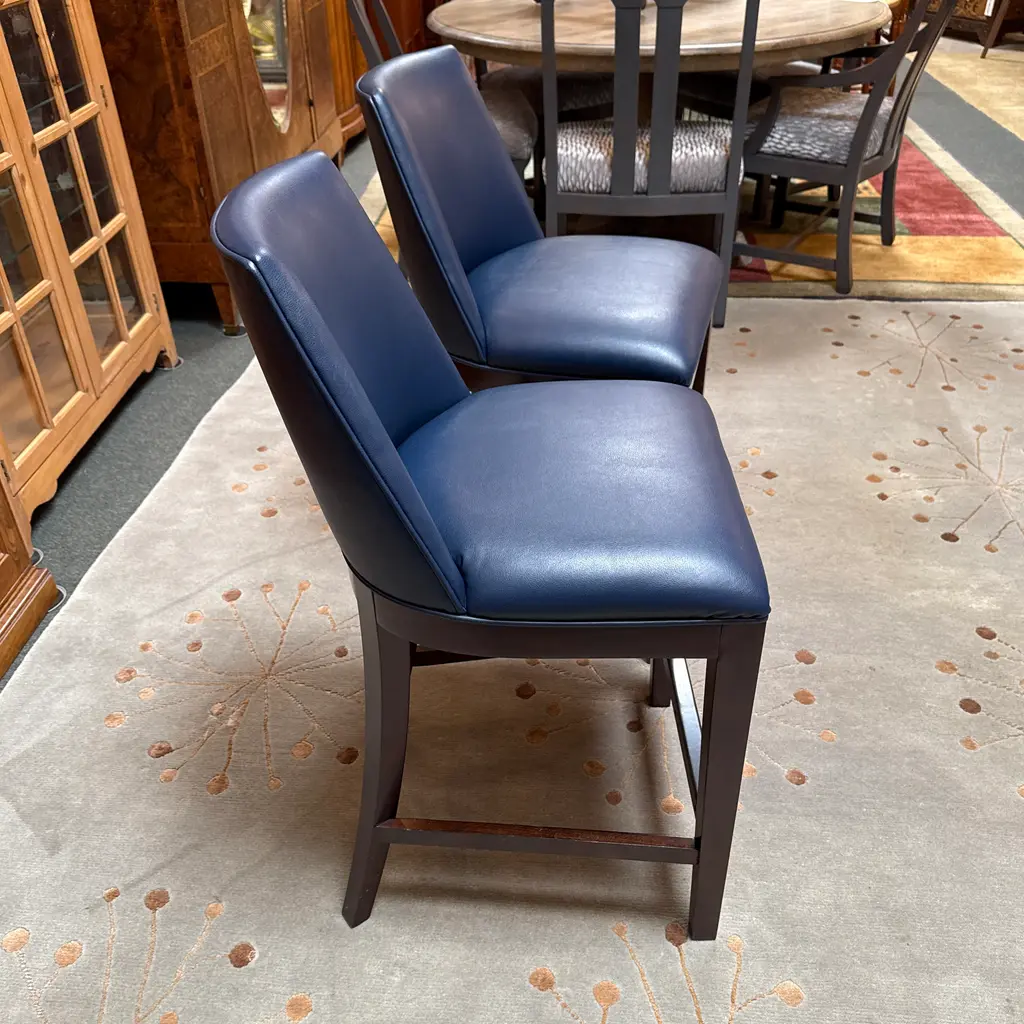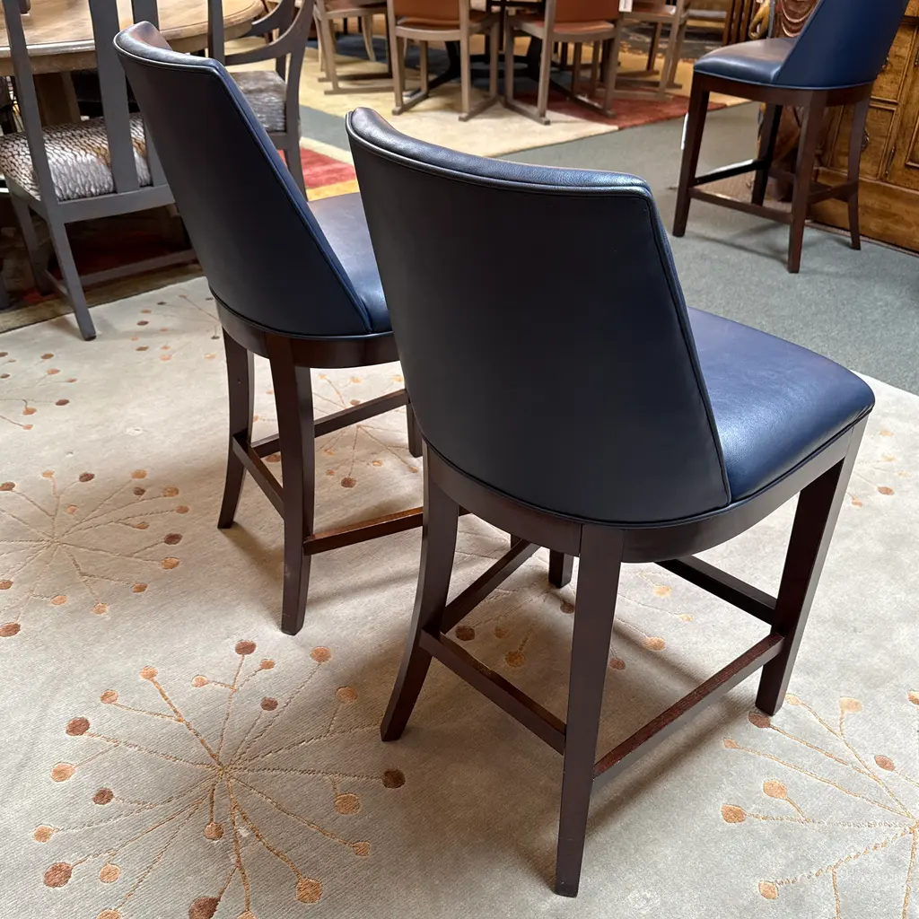 Bernhardt Furniture Bailey Blue Leather Counter Stools, Set Of Two