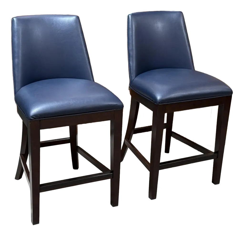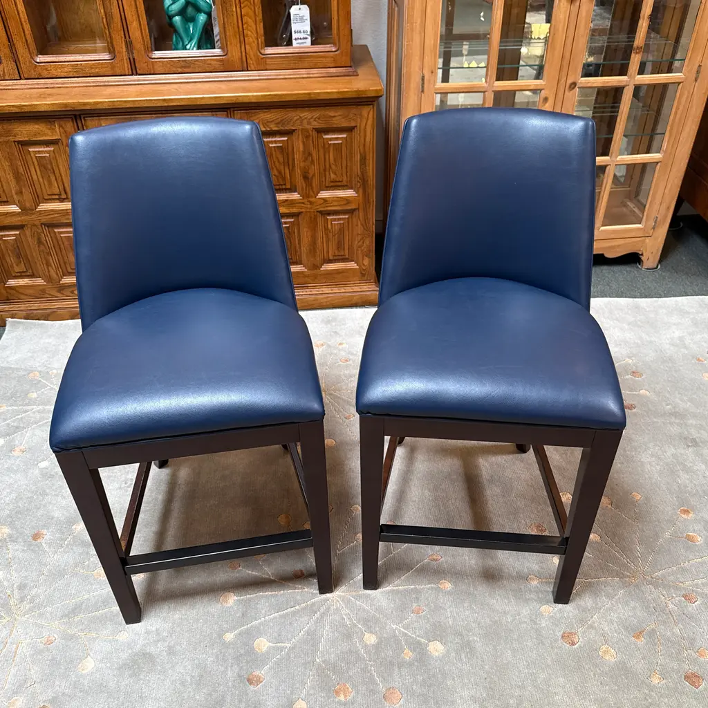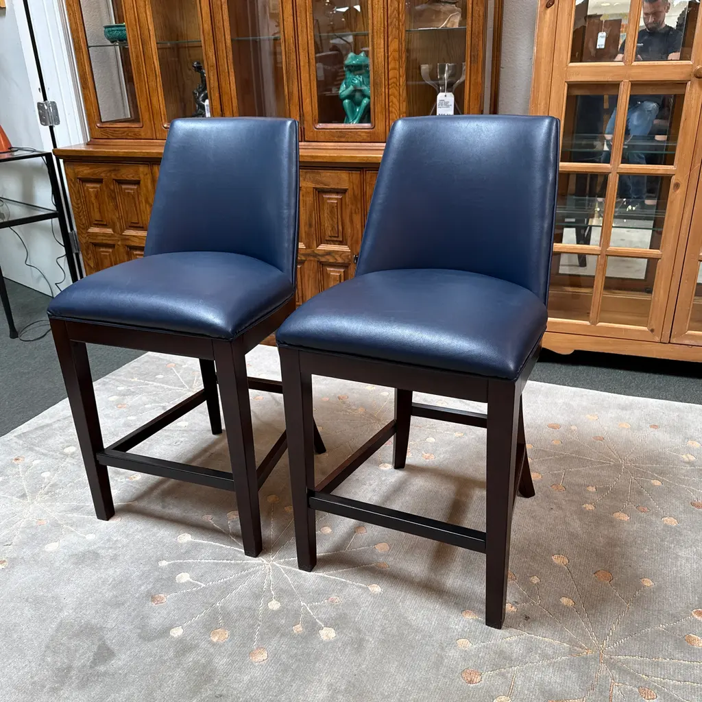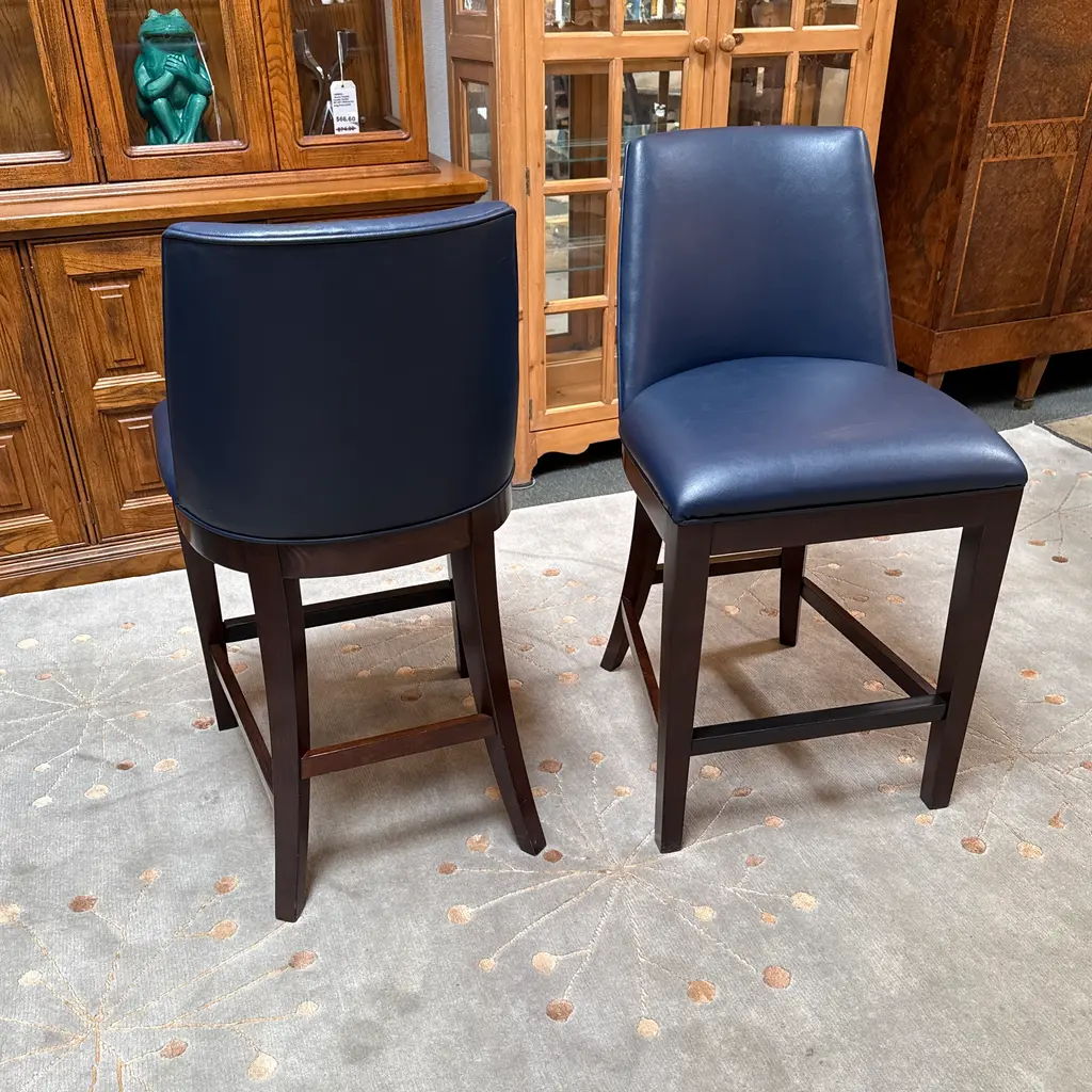 Bernhardt Furniture Bailey Blue Leather Counter Stools, Set Of Two