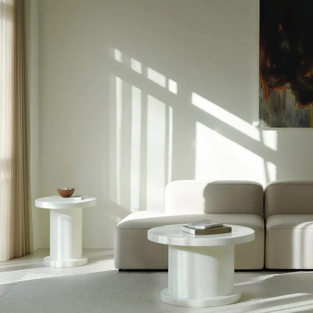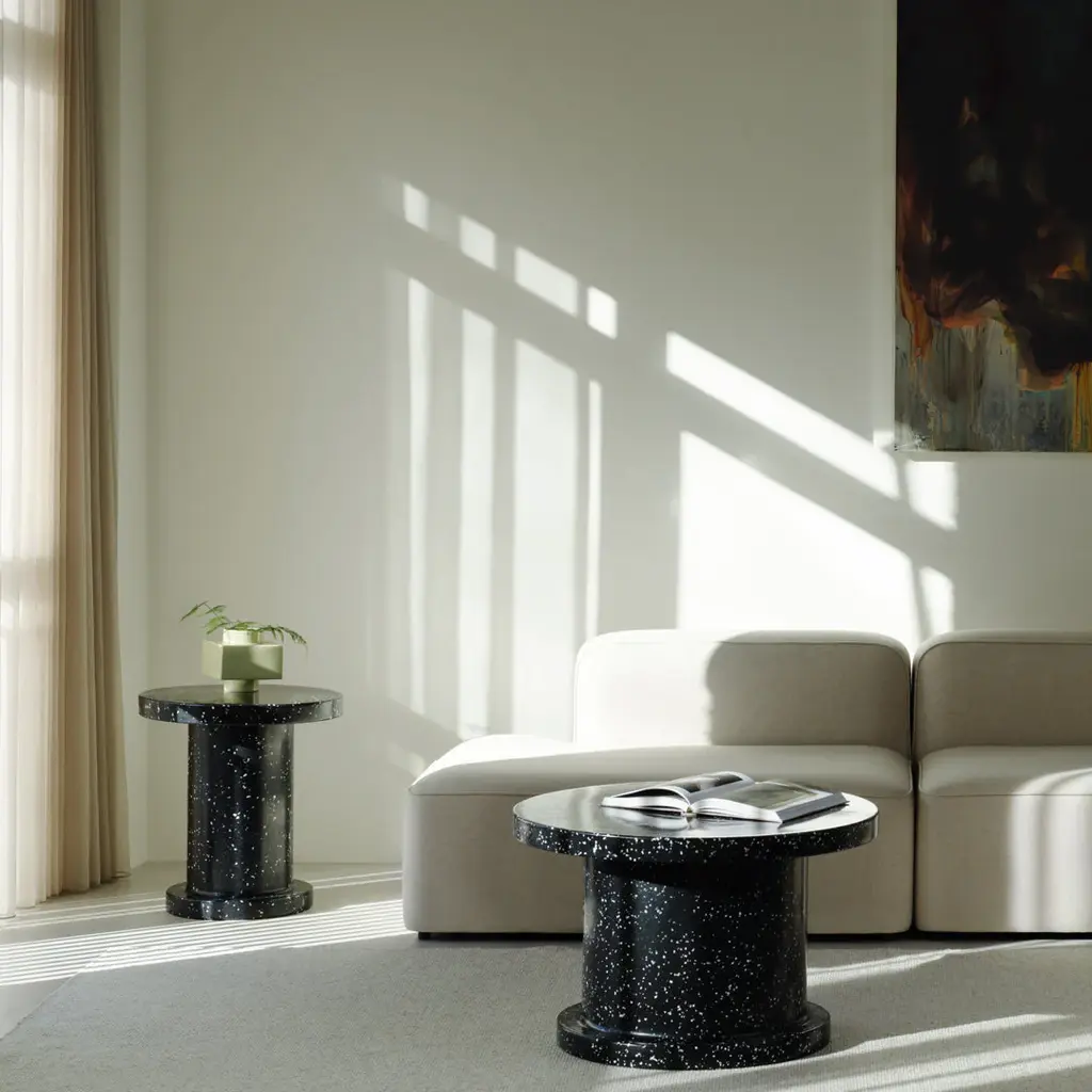 Bit Side Table and Bit Coffee Table combine a minimalistic design idiom with a timeless color composition, allowing them to effortlessly complement existing interior or exterior designs. The versatile Bit Side Table and Coffee Table, with their lightweight design, can be easily moved around the home and are suitable for both indoor and outdoor environment. Bit Side Table and Bit Coffee Table are made up of small bits of recycled household and industrial plastic waste. An innovative material composition that offers a distinctive, pixelated expression and a durable surface. The Bit collection is suitable for both indoor and outdoor environments, withstanding temperatures from -10°C to +50°C. Bit also comes as a stool , a barstool , a counter stool , and a lounge chair in a variety of colors. The innovative material composition means that variations in pattern and color are a part of the design, making each Bit a bit unique.