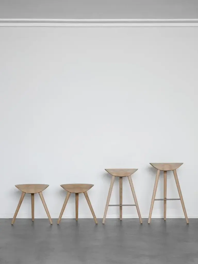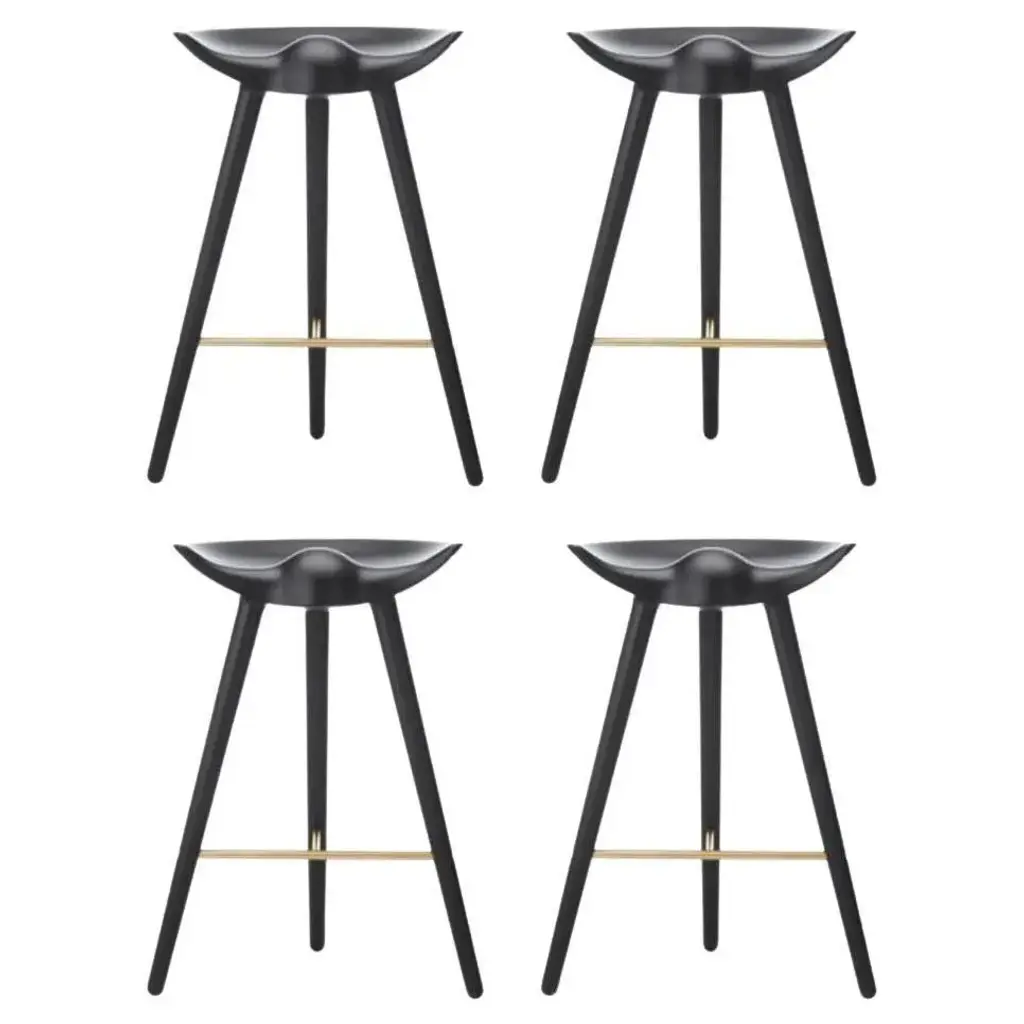 Set of 4 black beech and brass counter stools by lassen. Dimensions : h 69 x w 36 x l 55.5 cm. Materials : beech, brass. In 1942 mogens lassen designed the stool ml42 as a piece for a furniture exhibition held at the danish museum of decorative art. He took inspiration from the stools used by the shoemakers of the past, and transferred the light, elegant look to the creation of this sculptural three-legged stool. The stool ml42 is still manufactured in denmark to this day with a focus on quality and danish craftsmanship, and is considered a collector’s item by international design connoisseurs.