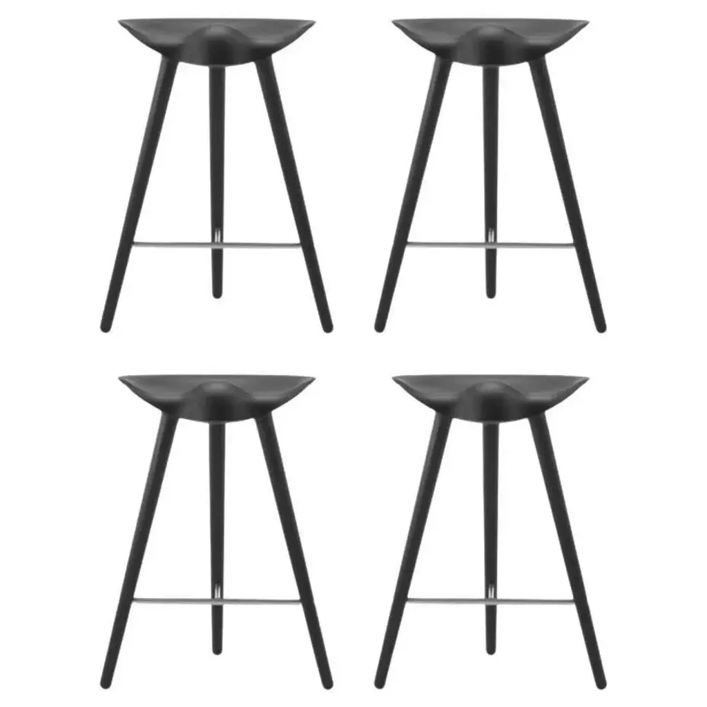 Set of 4 black beech/stainless steel counter stools by lassen. Dimensions: h 69 x w 36 x l 55.5 cm. Materials: beech, stainless steel. In 1942 mogens lassen designed the stool ml42 as a piece for a furniture exhibition held at the danish museum of decorative art. He took inspiration from the stools used by the shoemakers of the past, and transferred the light, elegant look to the creation of this sculptural three-legged stool. The stool ml42 is still manufactured in denmark to this day with a focus on quality and danish craftsmanship, and is considered a collector’s item by international design connoisseurs. By lassen is a danish design brand focused on iconic designs created by mogens and flemming lassen, founded by lassens’ relatives in 2008.