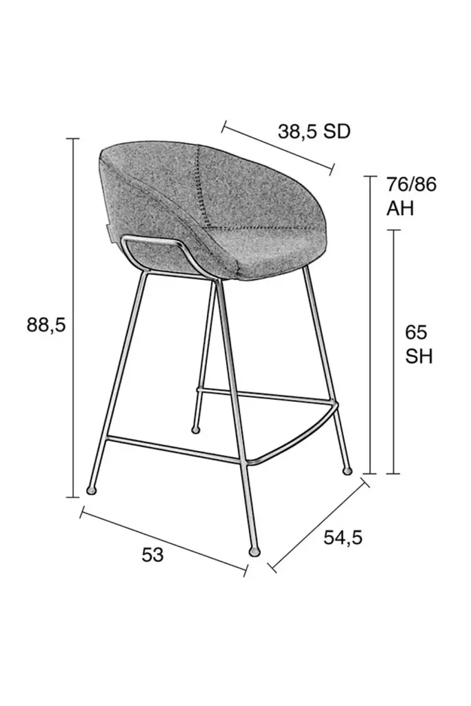 This counter stool by Zuiver comes in no less than three heights and in two fabulous leather colors. And, as if that isn’t enough, look at that baseball-inspired decorative stitching. And that elegant black steel frame that runs up at the sides of the seat. On top of all that we can reveal that Feston’s bucket seat is so wide it is uber comfortable! This item comes in a set of 2.
