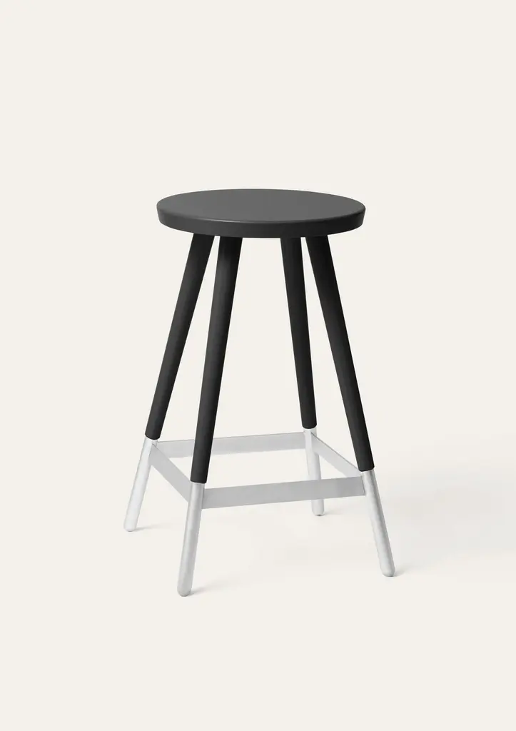 Black Tupp stool by Storängen DesignDimensions: D 41 x W 41 x H 65 cmMaterials: birch wood, nickel plated steel.Also available in other colors and with backrest.Give the bar some character! Tupp is avaliable in two heights, both with and without backrest. This provides the versatility to fit into a variety of interiors, from the public bar to your kitchen counter. Firmly rooted in the Swedish crafts tradition in appearance and with materials chosen for longevity. The base made from Swedish steel works for anything from high heels to ski boots. Simply put, a good bar stool.Storängen DesignIn early 2017 Mårten Cyrén and Torbjörn Källberg established Storängen Company – an idea 15 years in the making.In the fall of 2020 Mårtens son Carl replaced Torbjörn as CEO and co-owner. Together they continue to collaborate with a well-established network of designers, craftsmen and makers, and further develop a portfolio of furniture based on timeless ideals and modern Scandinavian design.Such as Storängen. A bold and charismatic offspring of the classic Windsor chair with uncompromising functionality and craftsmanship. The product that gave the company its name and with it came a simple idea: creating a direct and honest link between the craftsmen making the furniture, and the professional and private buyers they were intended for.Storängen furniture is sustainably sourced, classically designed and manufactured with a combination of traditional skills and modern techniques. It is furniture to last a life-time.