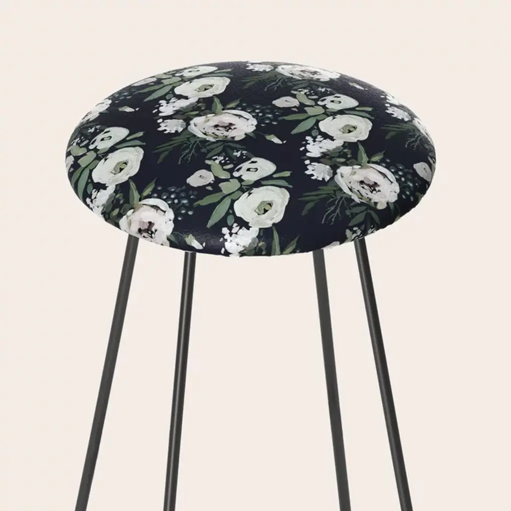 Blush Pink White Green Black Watercolor Modern Floral Stool