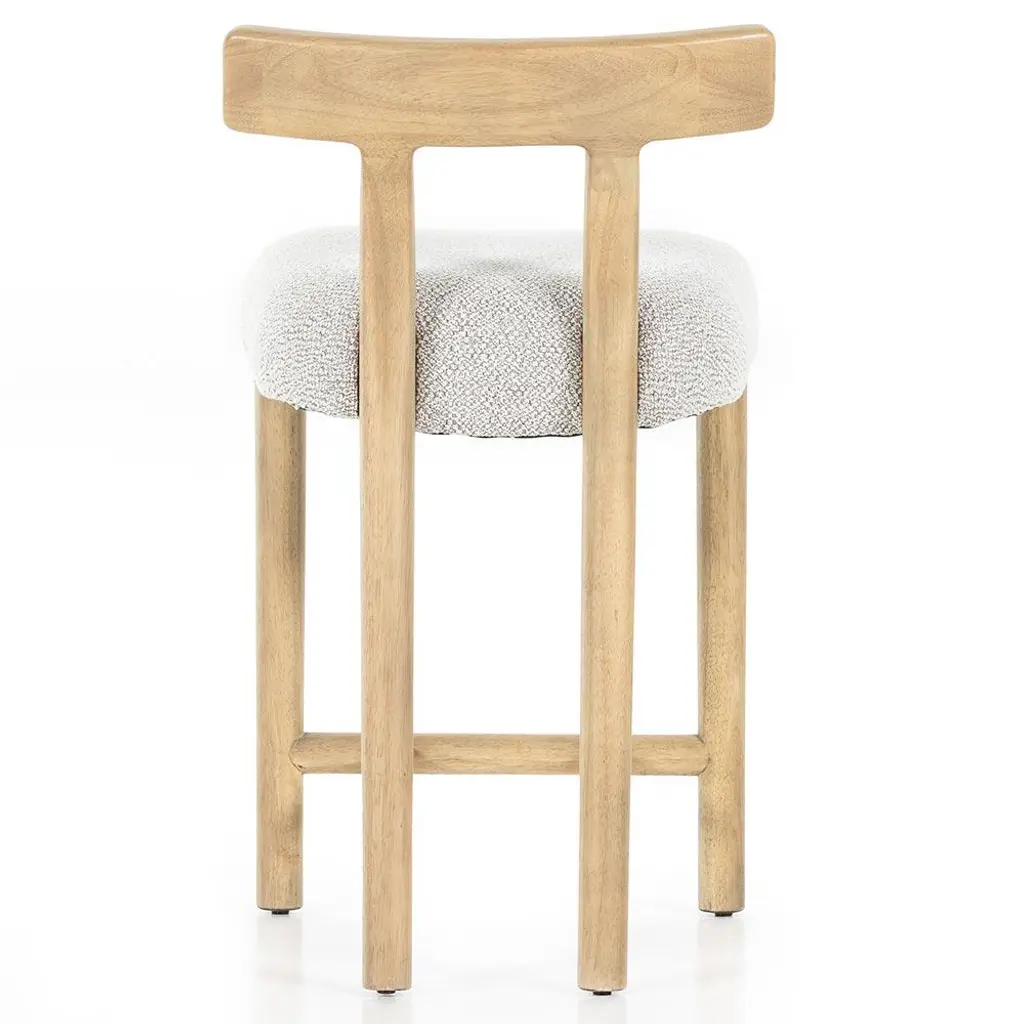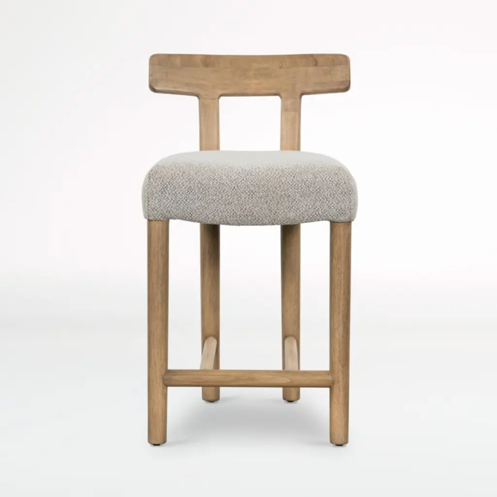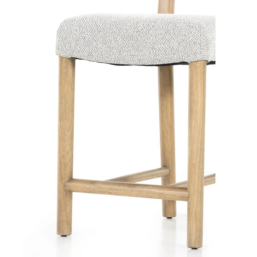 The Bojana counter stool brings modern rustic charm to any kitchen island. The pebble performance fabric withstands spills and stains, making it a perfect kid-friendly option. Made of solid parawood, the clean-lined frame and delicately curved back form a balanced, timeless silhouette.