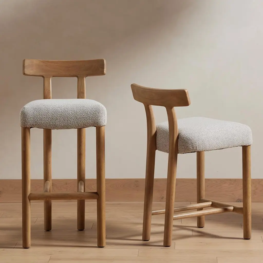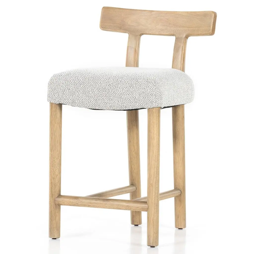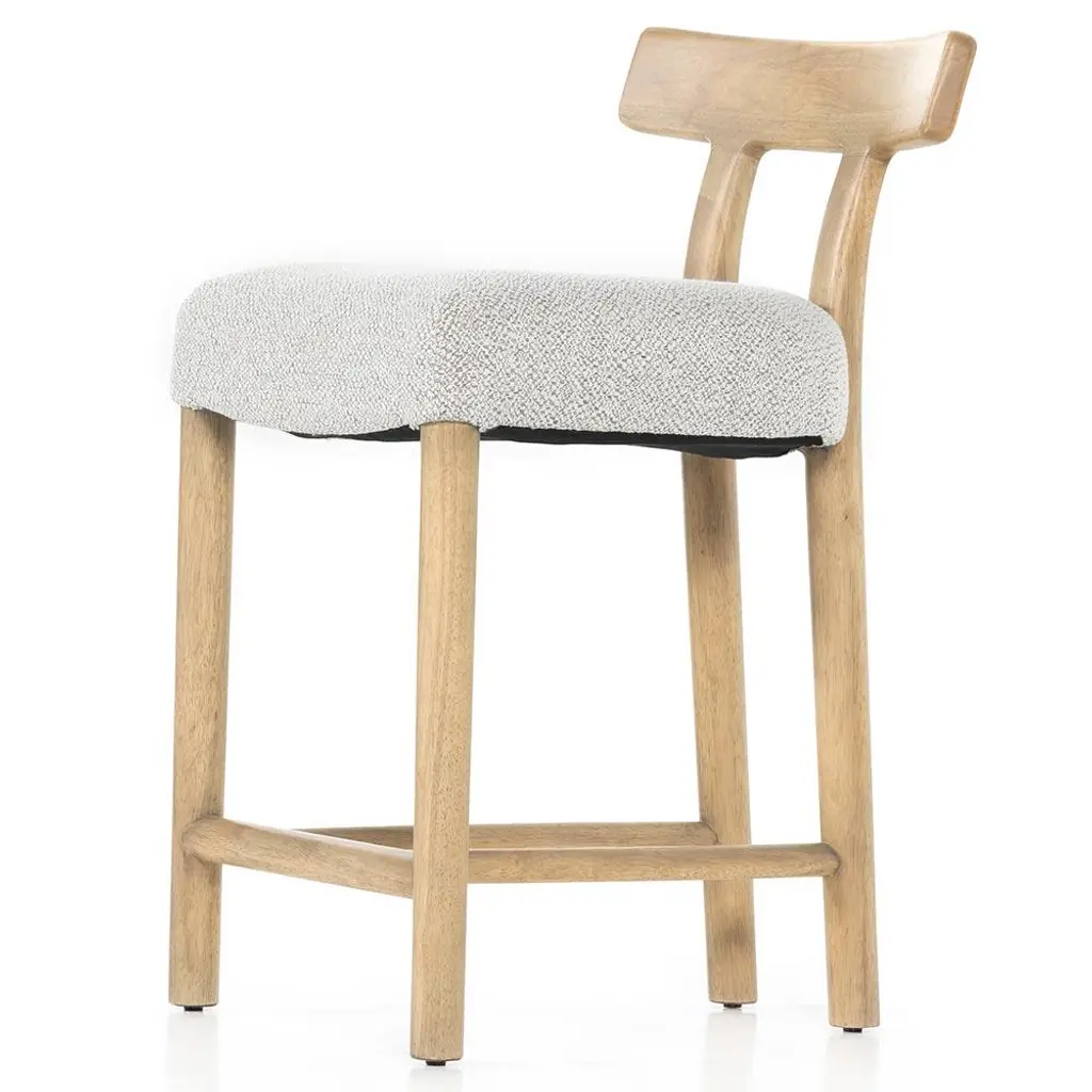 The Bojana counter stool brings modern rustic charm to any kitchen island. The pebble performance fabric withstands spills and stains, making it a perfect kid-friendly option. Made of solid parawood, the clean-lined frame and delicately curved back form a balanced, timeless silhouette.