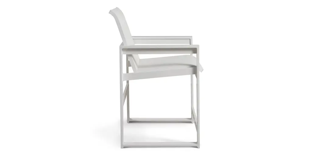 Slide comfortably into the sling-style seat of this outdoor bar stool and you may never want to leave! With durable PVC-coated nylon fabric, these transitional-style stools make your outdoor bar area complete. The clean track arm defines the look of the sturdy yet lightweight aluminum frame. In your choice of five powder-coated aluminum finishes, and several sling fabric colors neatly tailored to match your outdoor vibe.All are made in the USA.