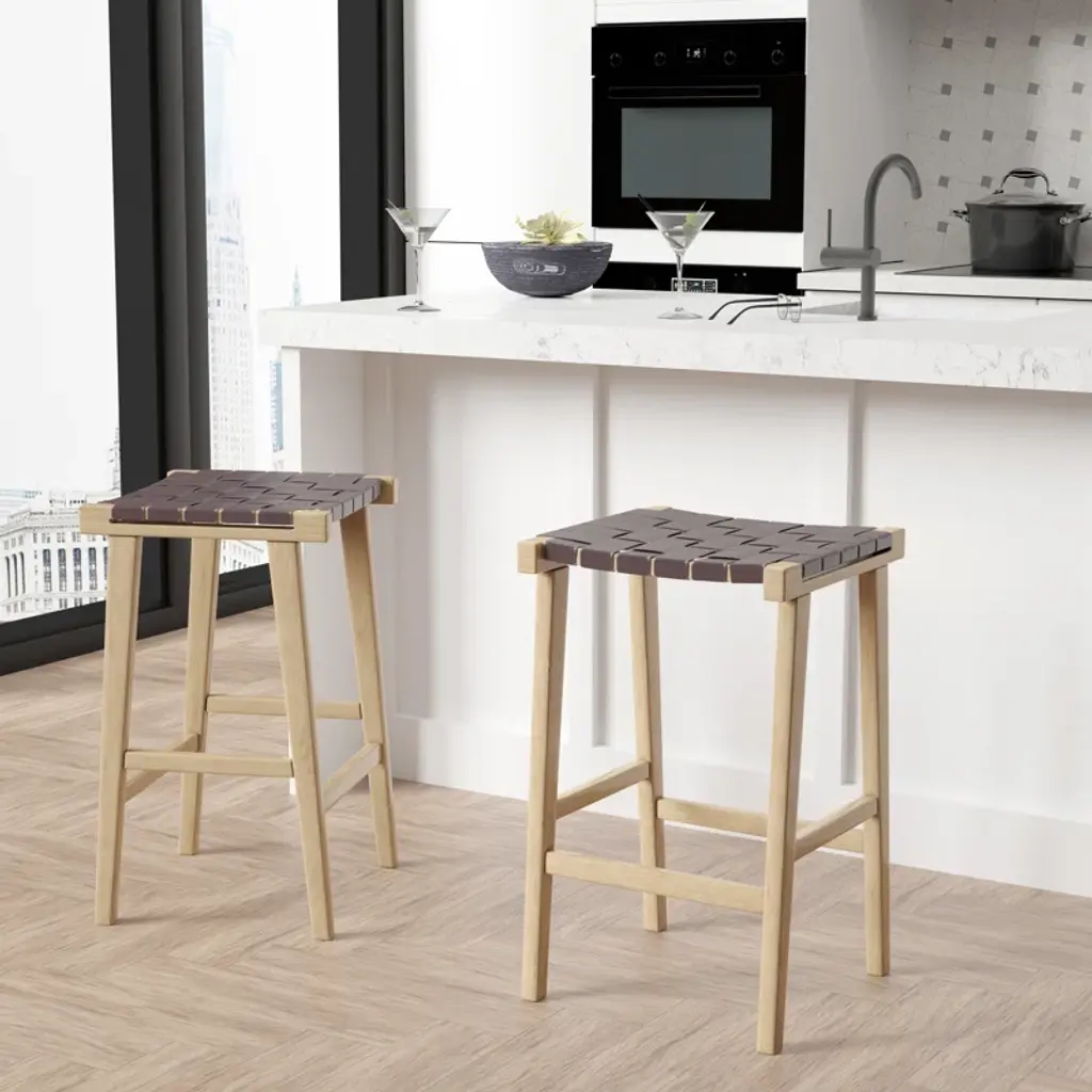 Experience comfortable seating in your kitchen or bar with this inviting counter stool. Featuring a sleek, minimalist design and adorned with a rich brown woven PU seat, this stool adds a touch of elegance wherever it goes.