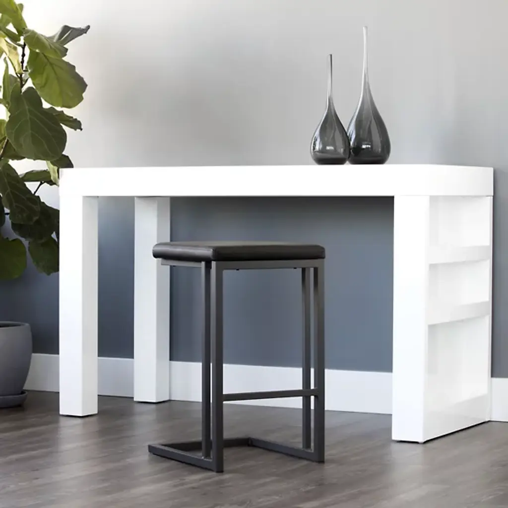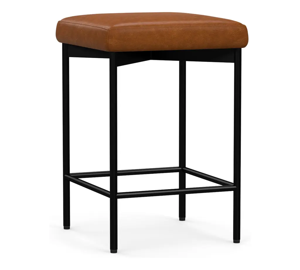 Presented by Alder & Ore, the Boone Counter Stool, exudes a modern industrial-inspired charm with its backless seating design, offering a minimalist aesthetic that complements an array of décor spaces. The cantilevered frame, constructed with powder-coated steel, not only provides a sturdy foundation but also adds an edgy and industrial appeal. The soft upholstered seating, wrapped in faux leather, is meticulously treated to resemble natural leather, complete with textural idiosyncrasies and color variations.