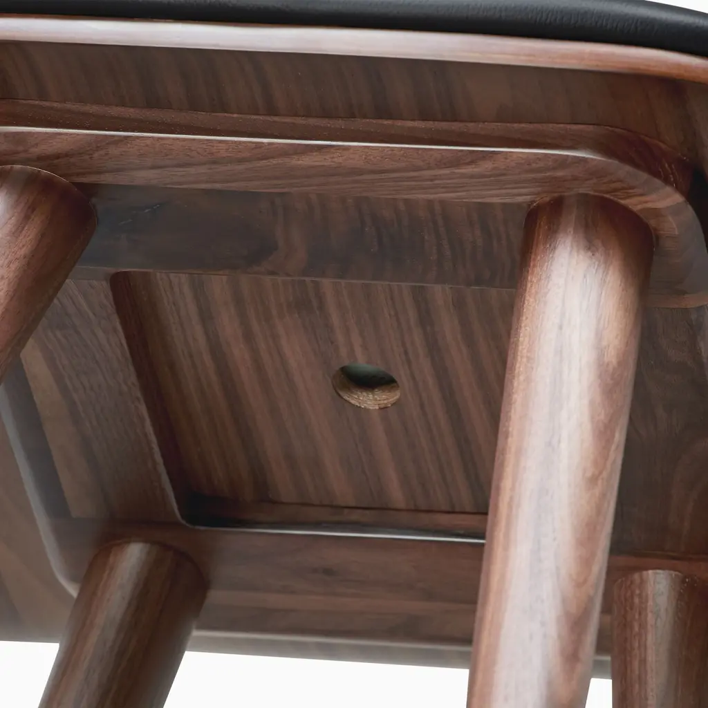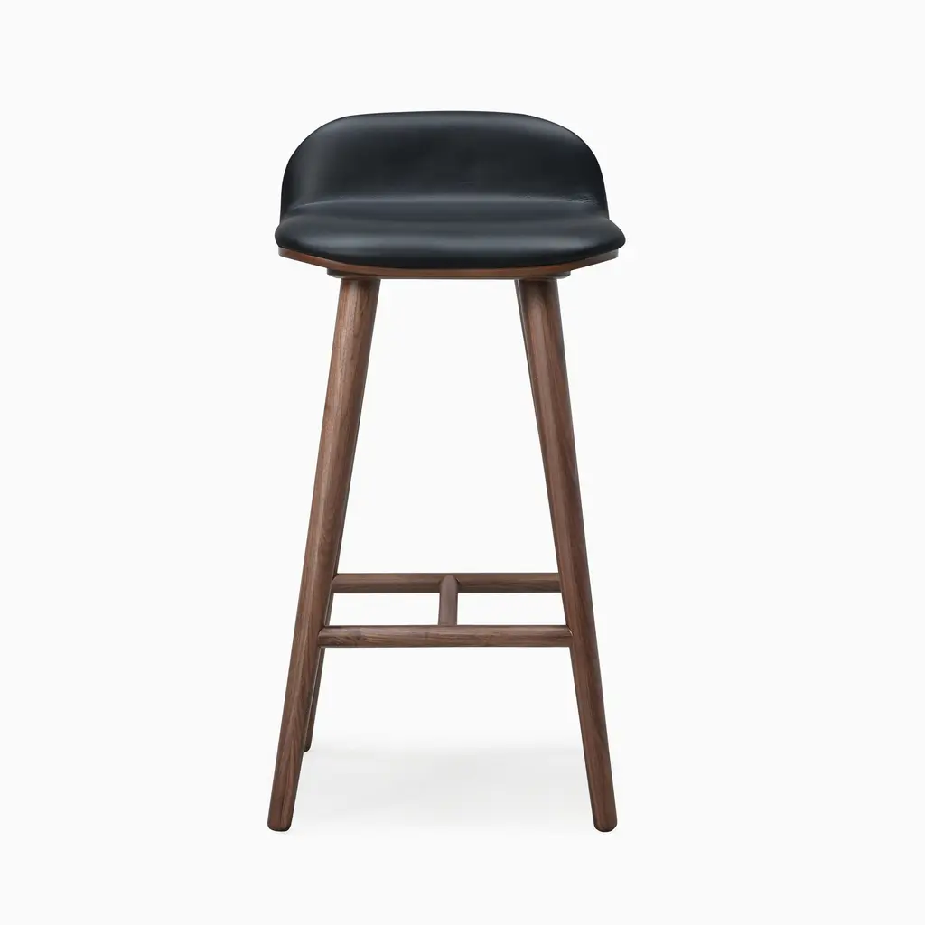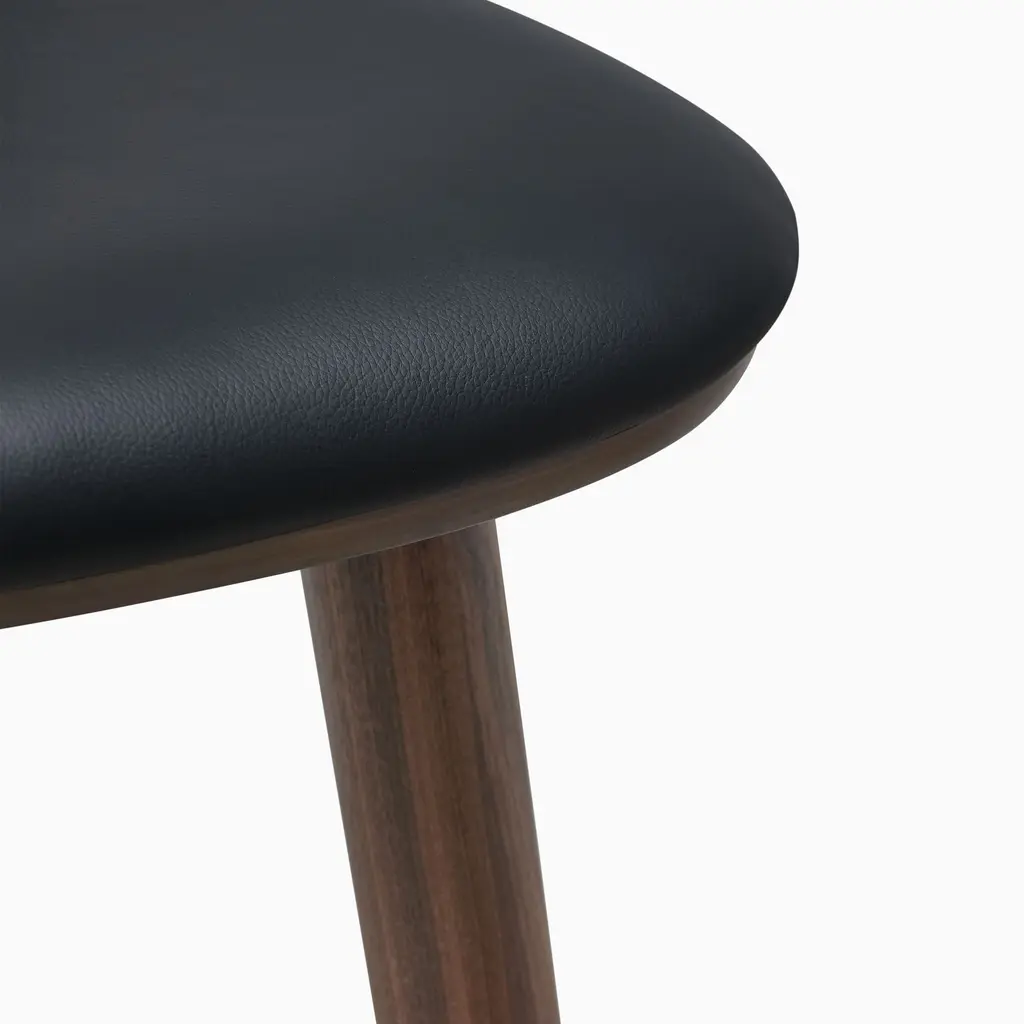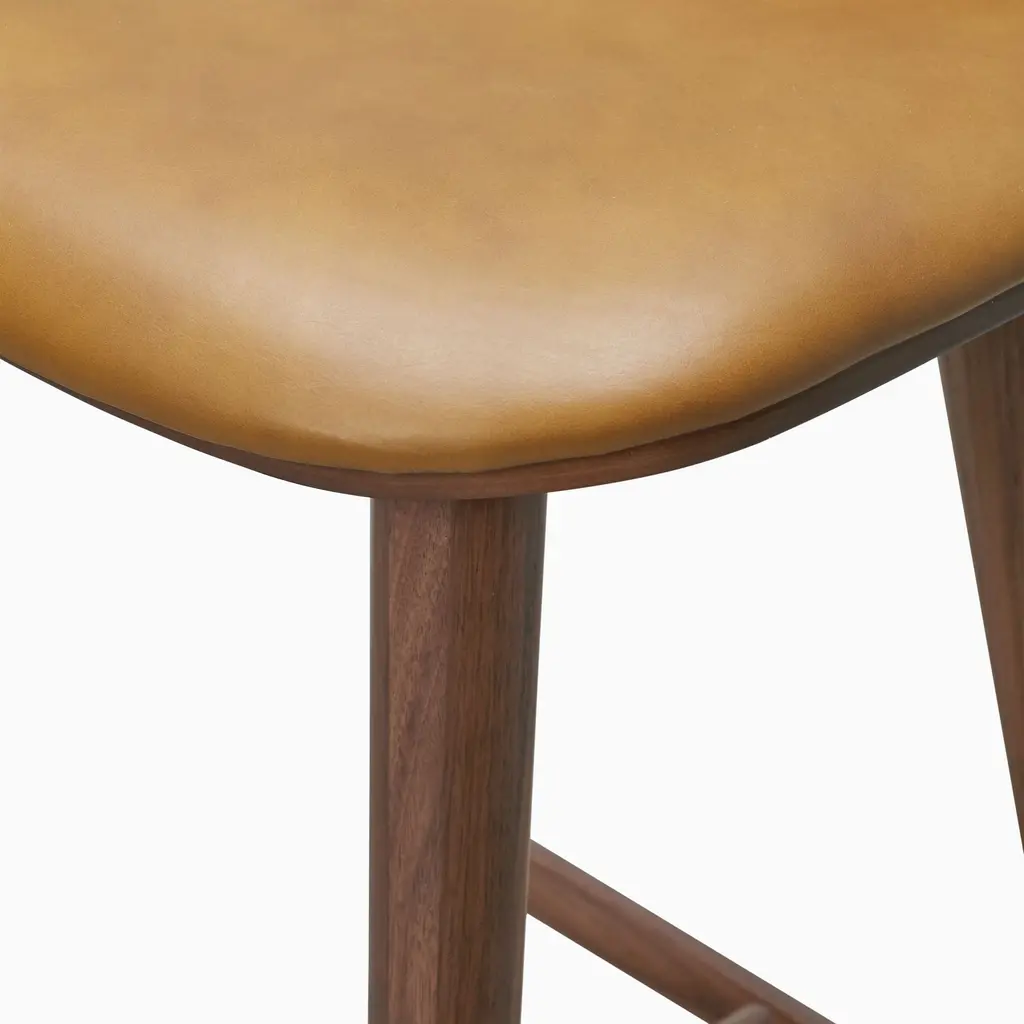 Light seat padding provides extra comfort. The durable solid wood legs. Covered in top-grain leather. Perfect height for a counter or island.