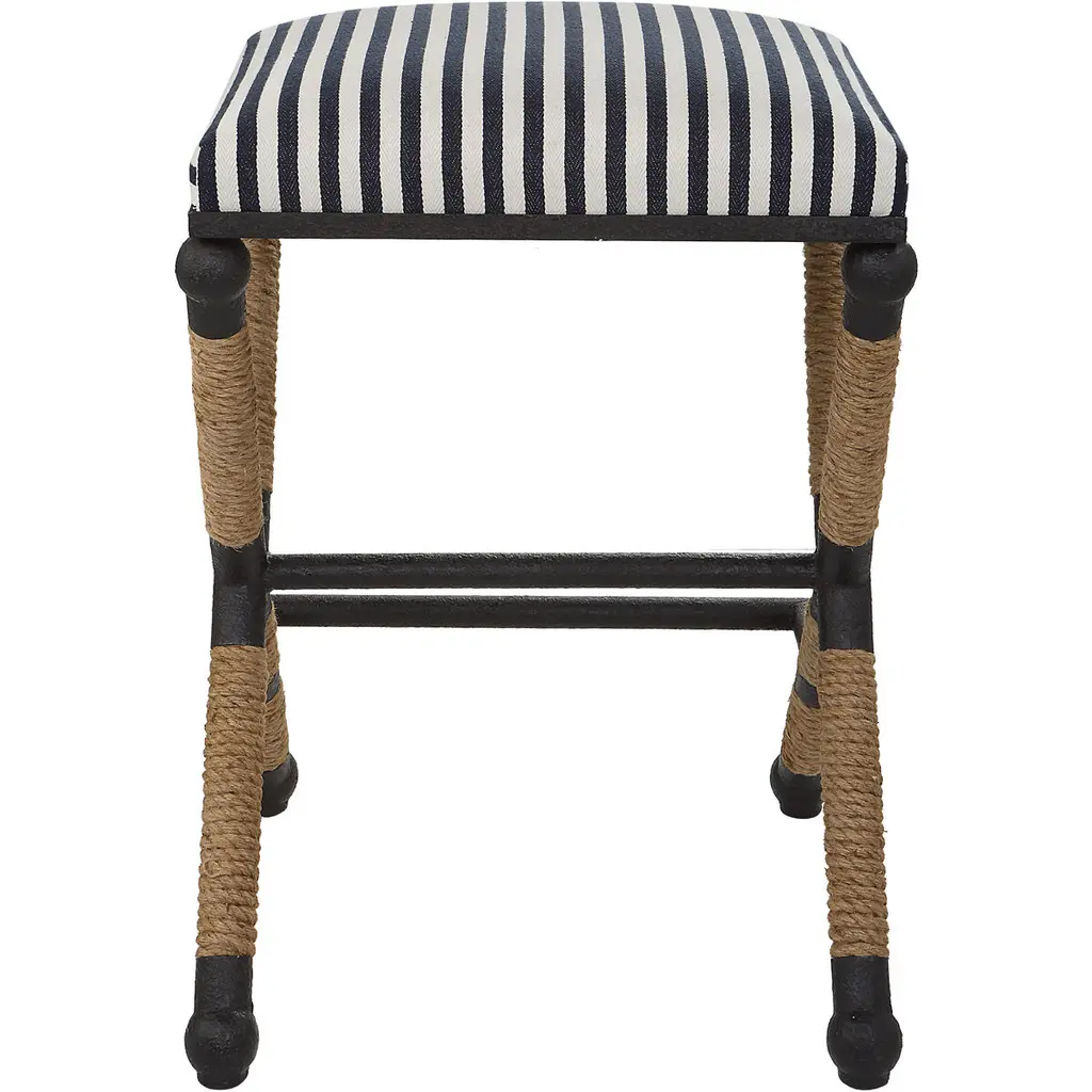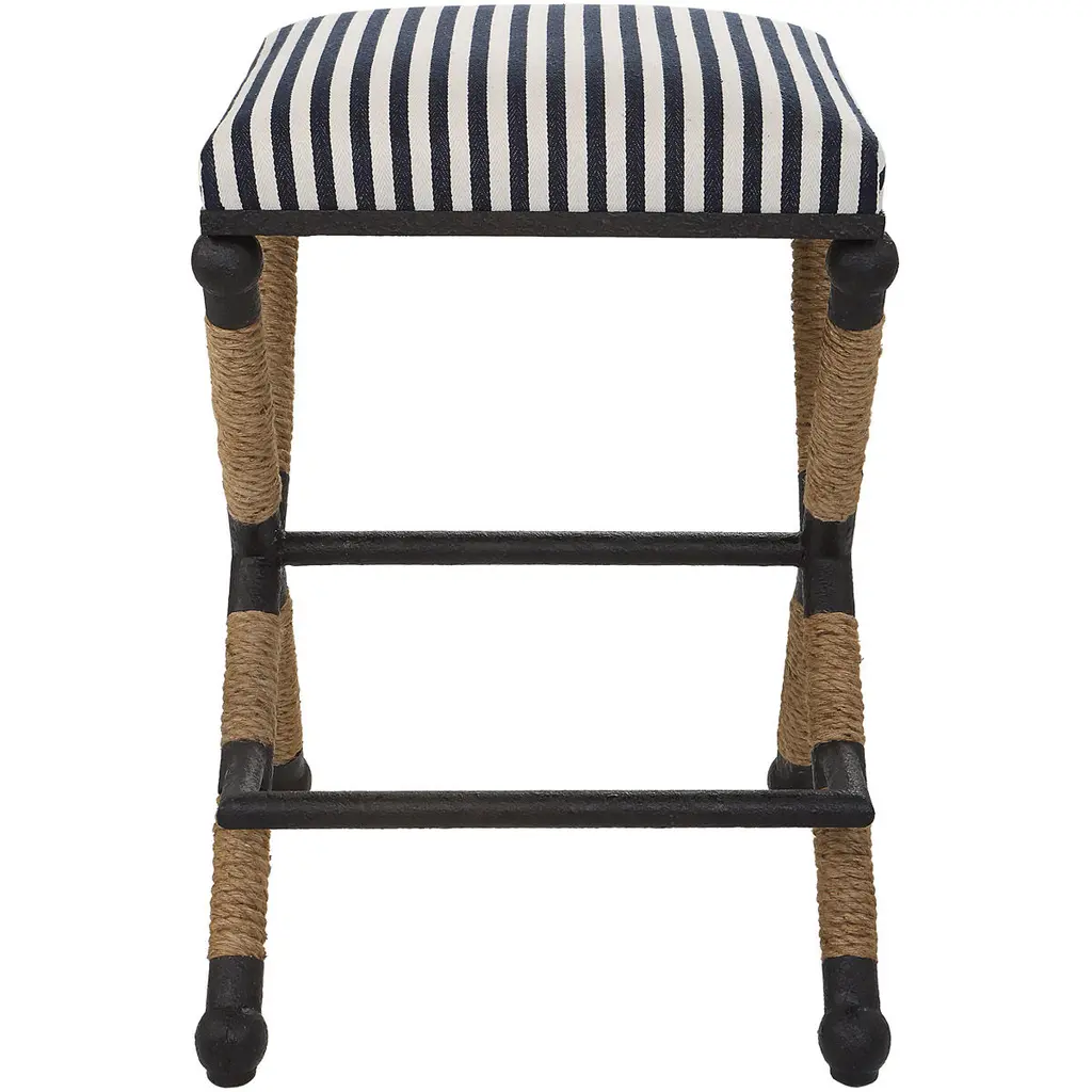 Rustic Iron Frame With A Nautical Touch, Wrapped In Natural Fiber Rope Accents. Cushioned Top Is A Sturdy, Sailor-striped Cotton In Crisp Navy And Cream With Performance Treatment. Seat Height Is 28".