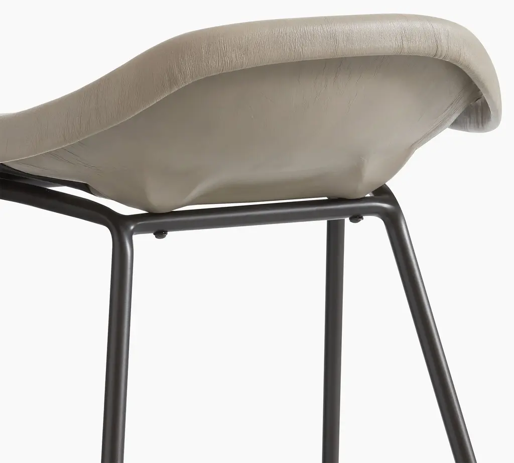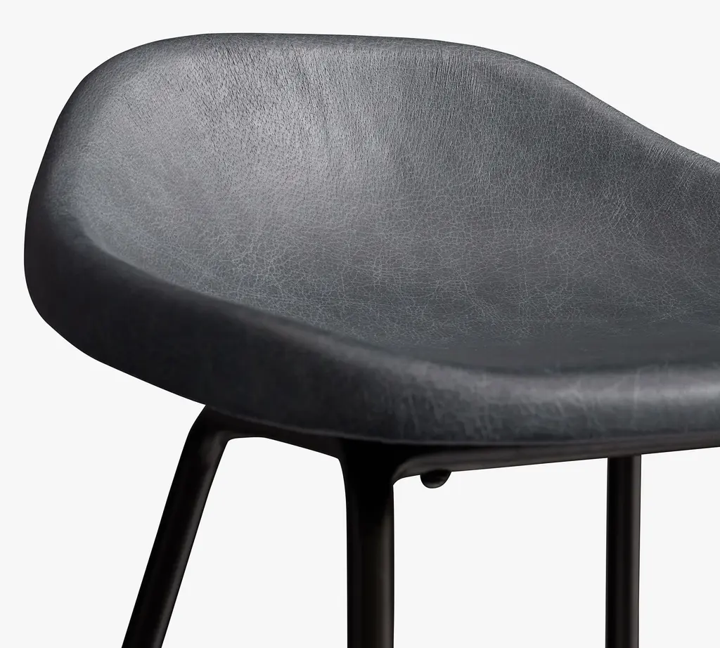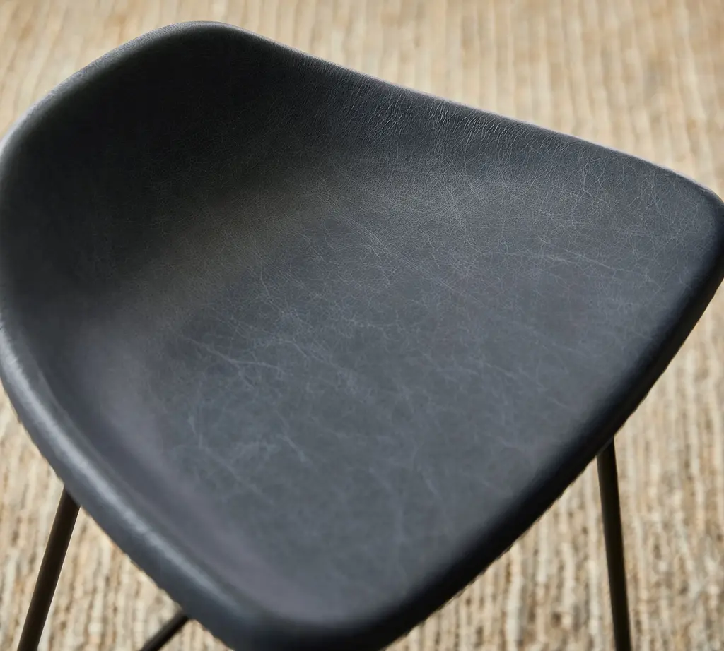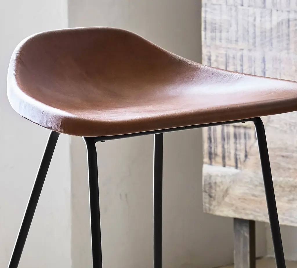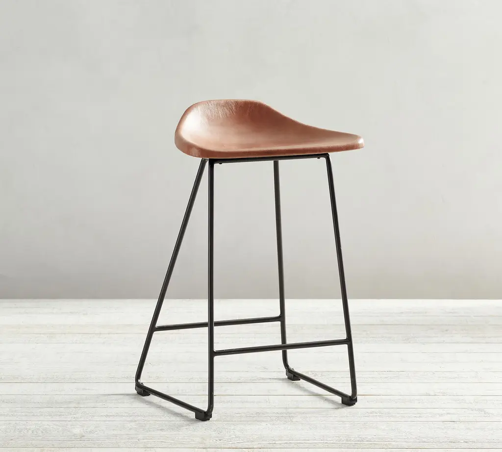 The sleek stools in our Brenner Collection are made with a molded, leather-clad seat that looks ergonomically sculpted. It rests on slender, hand-bent and hand-welded metal legs for a look that hits the high notes of both modern and industrial design.