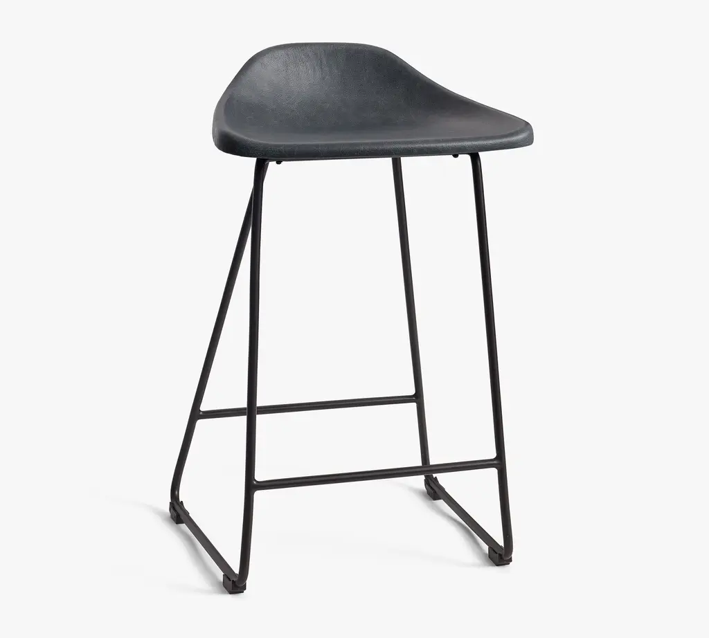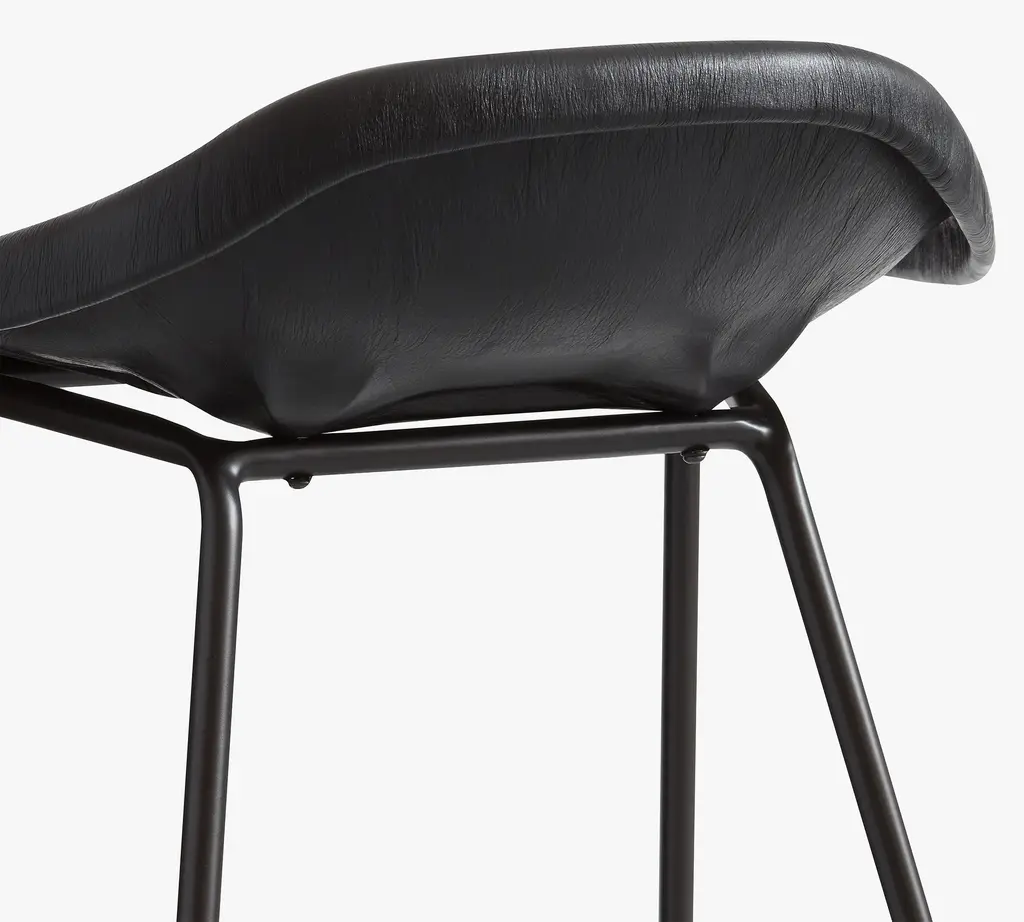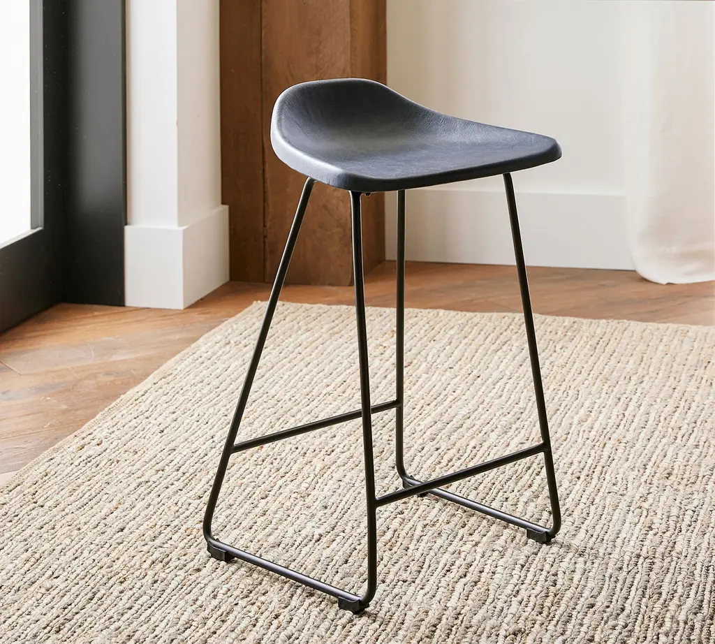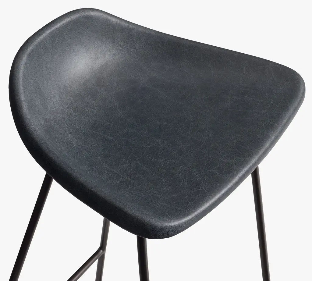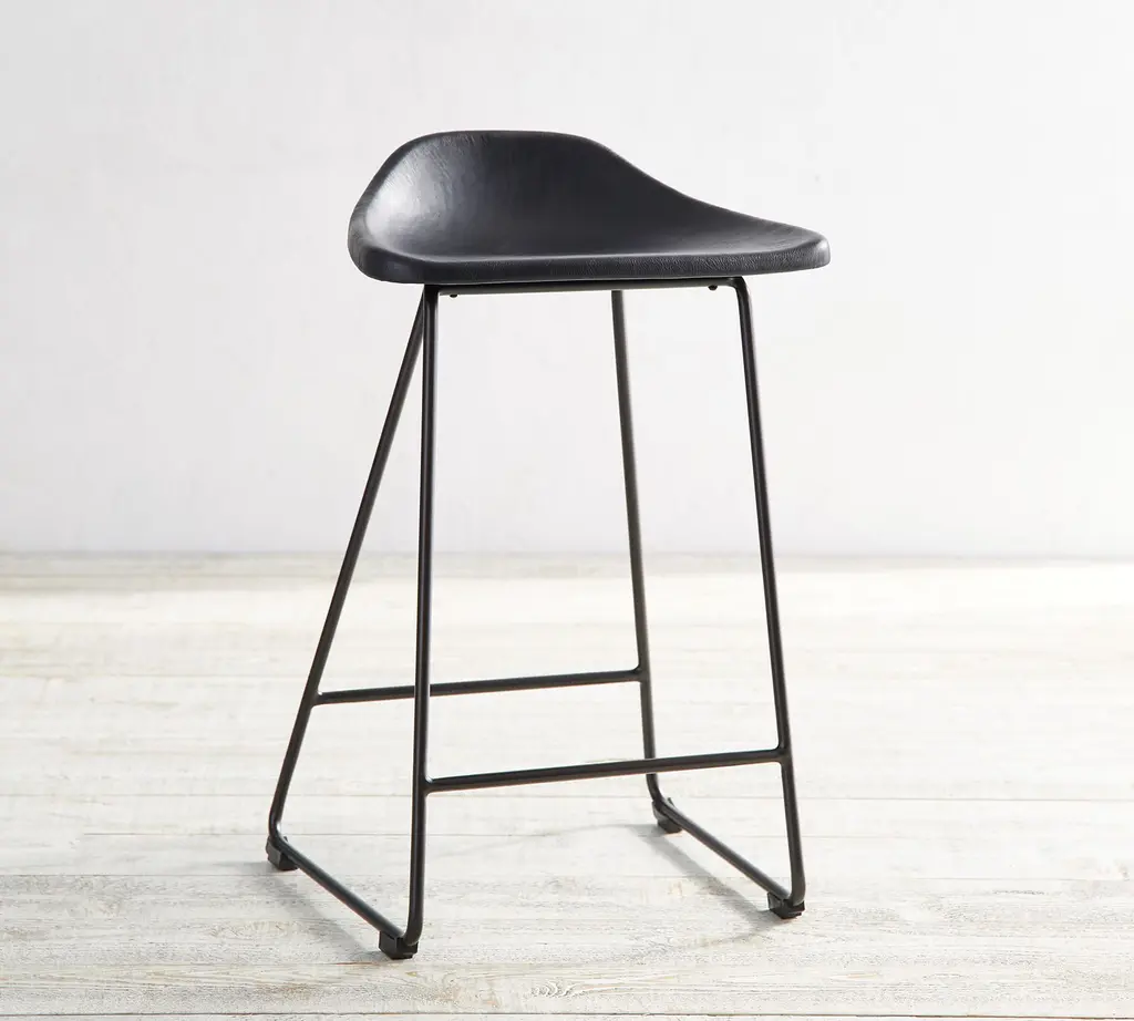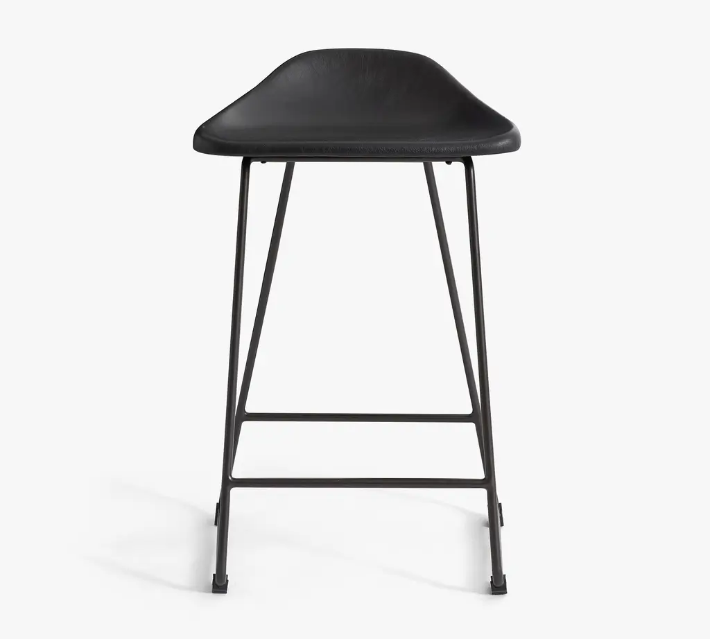 The sleek stools in our Brenner Collection are made with a molded, leather-clad seat that looks ergonomically sculpted. It rests on slender, hand-bent and hand-welded metal legs for a look that hits the high notes of both modern and industrial design.