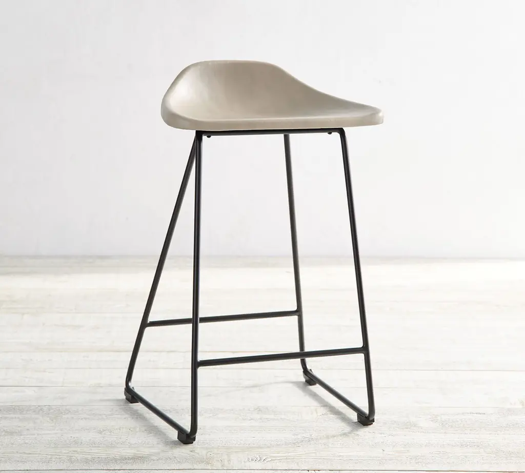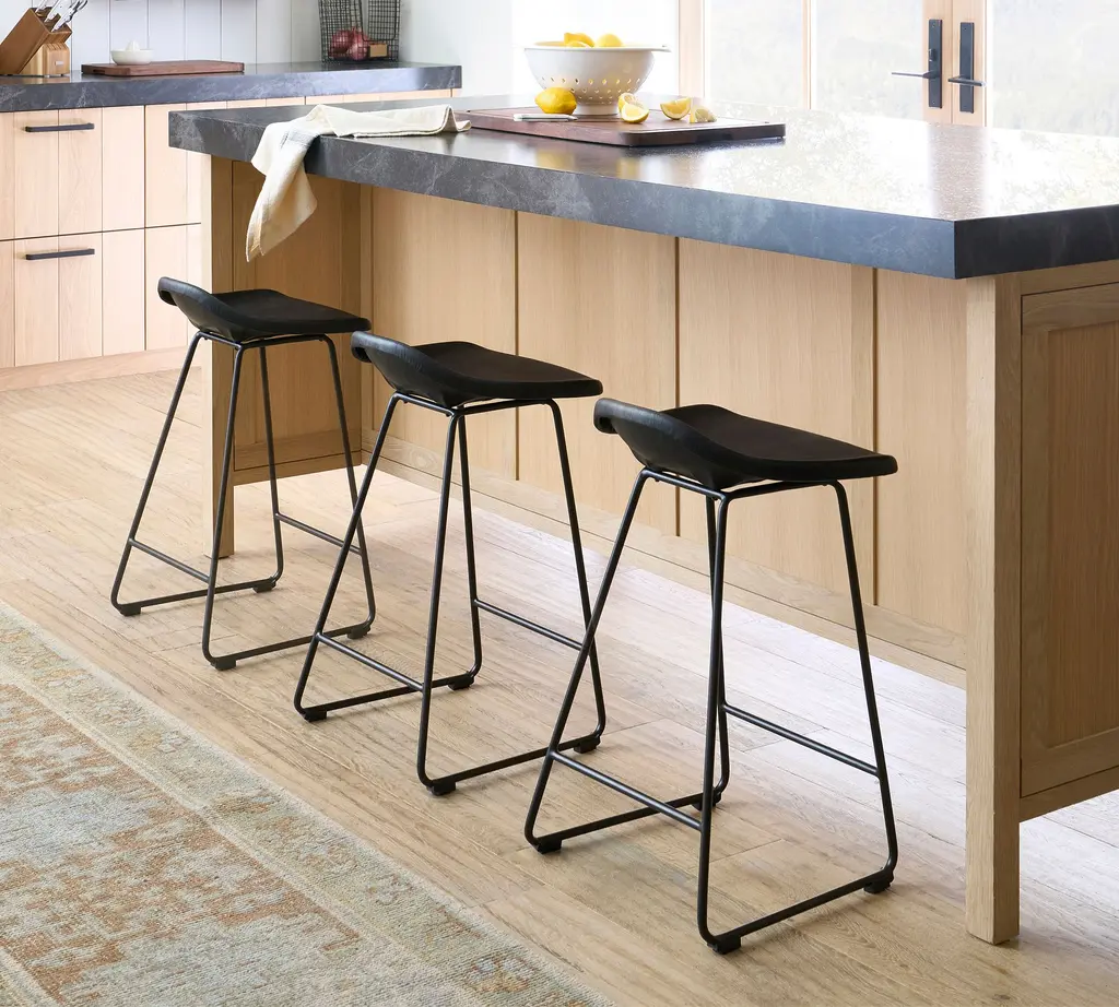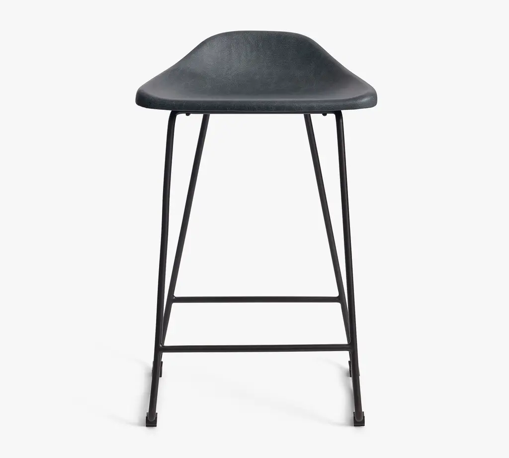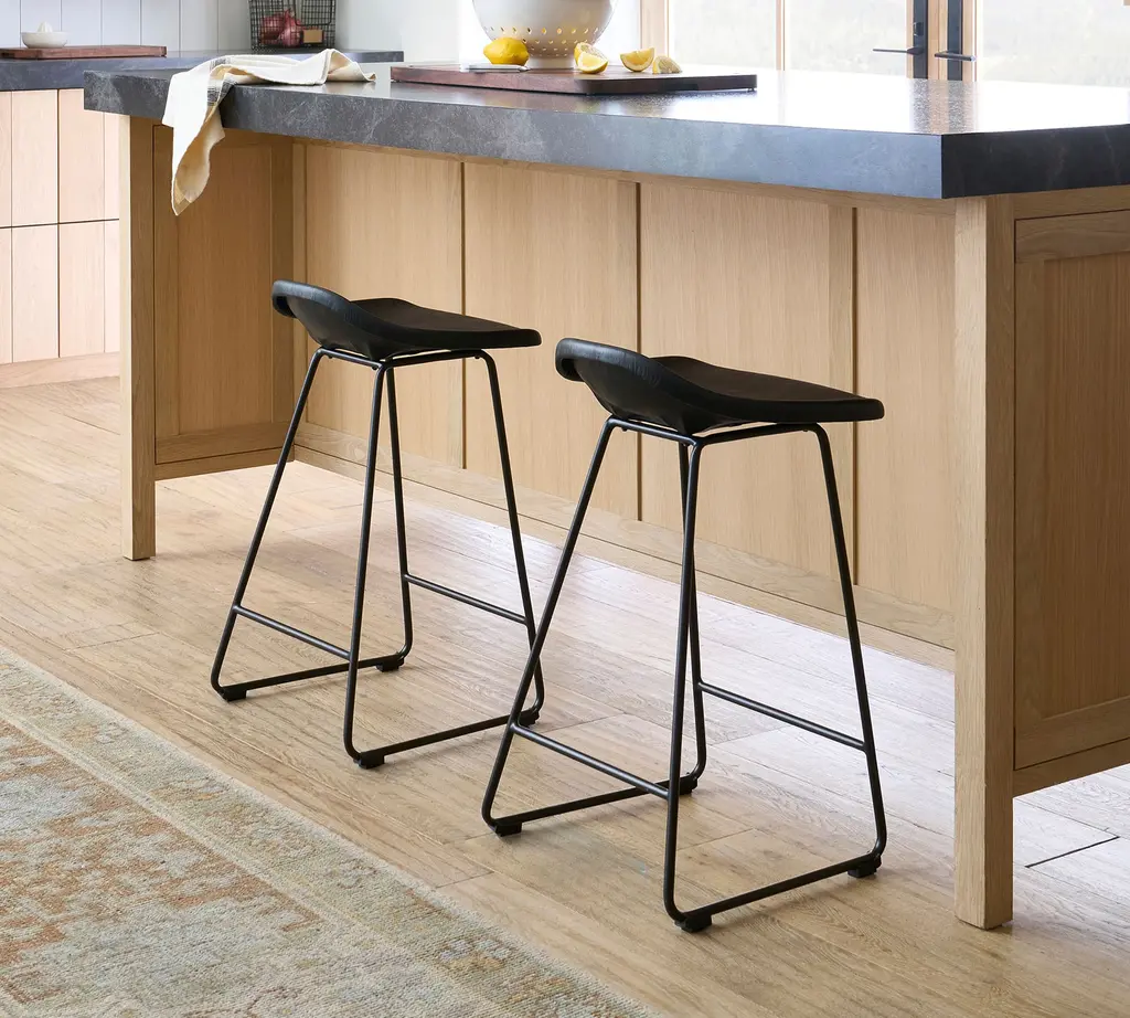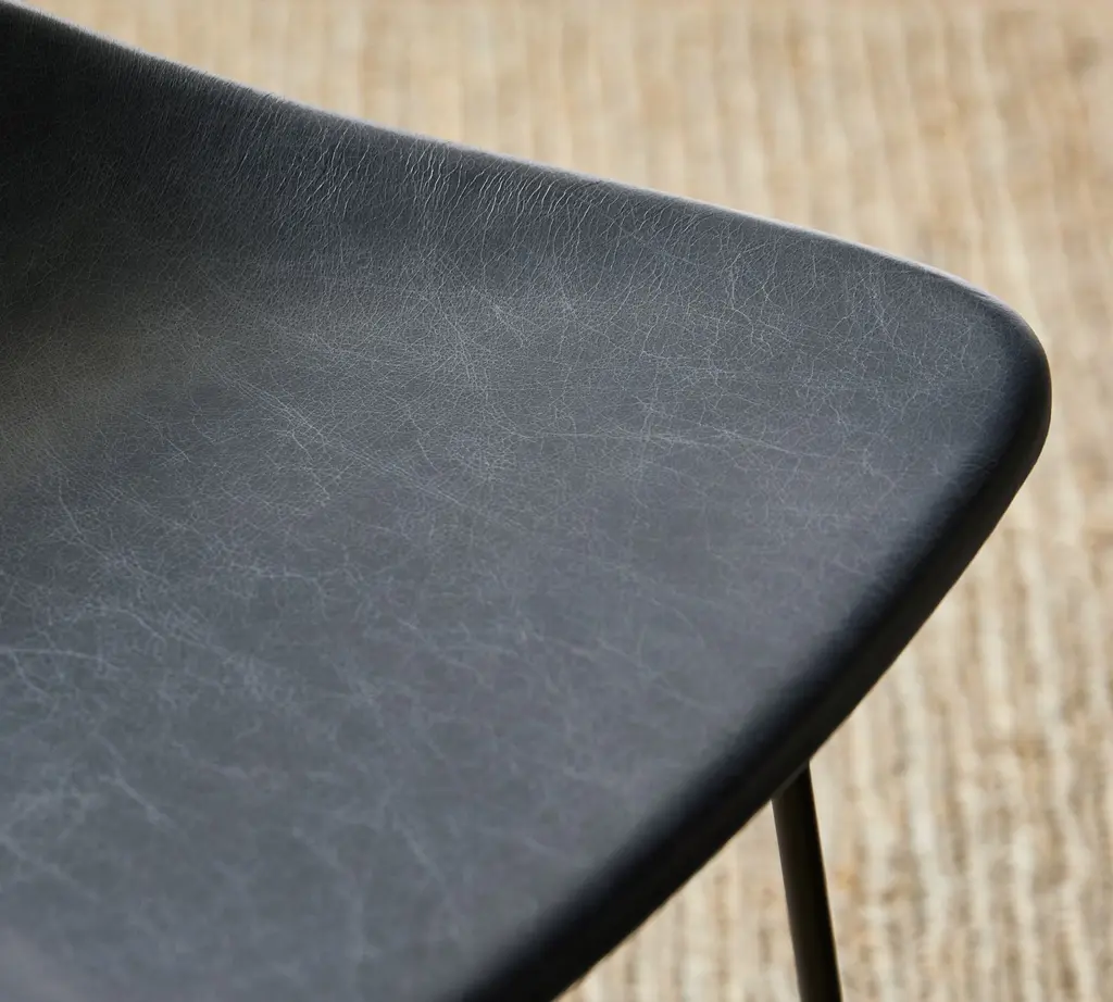 The sleek stools in our Brenner Collection are made with a molded, leather-clad seat that looks ergonomically sculpted. It rests on slender, hand-bent and hand-welded metal legs for a look that hits the high notes of both modern and industrial design.