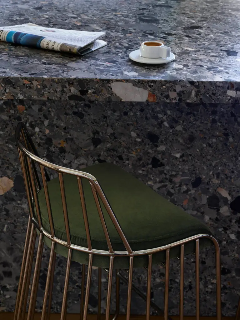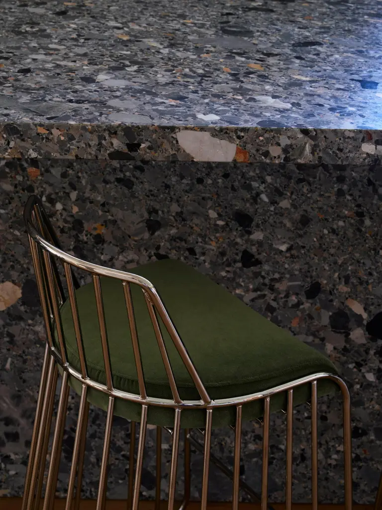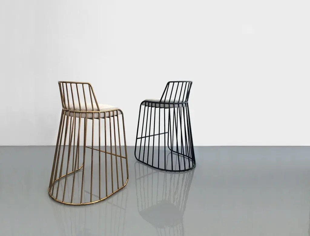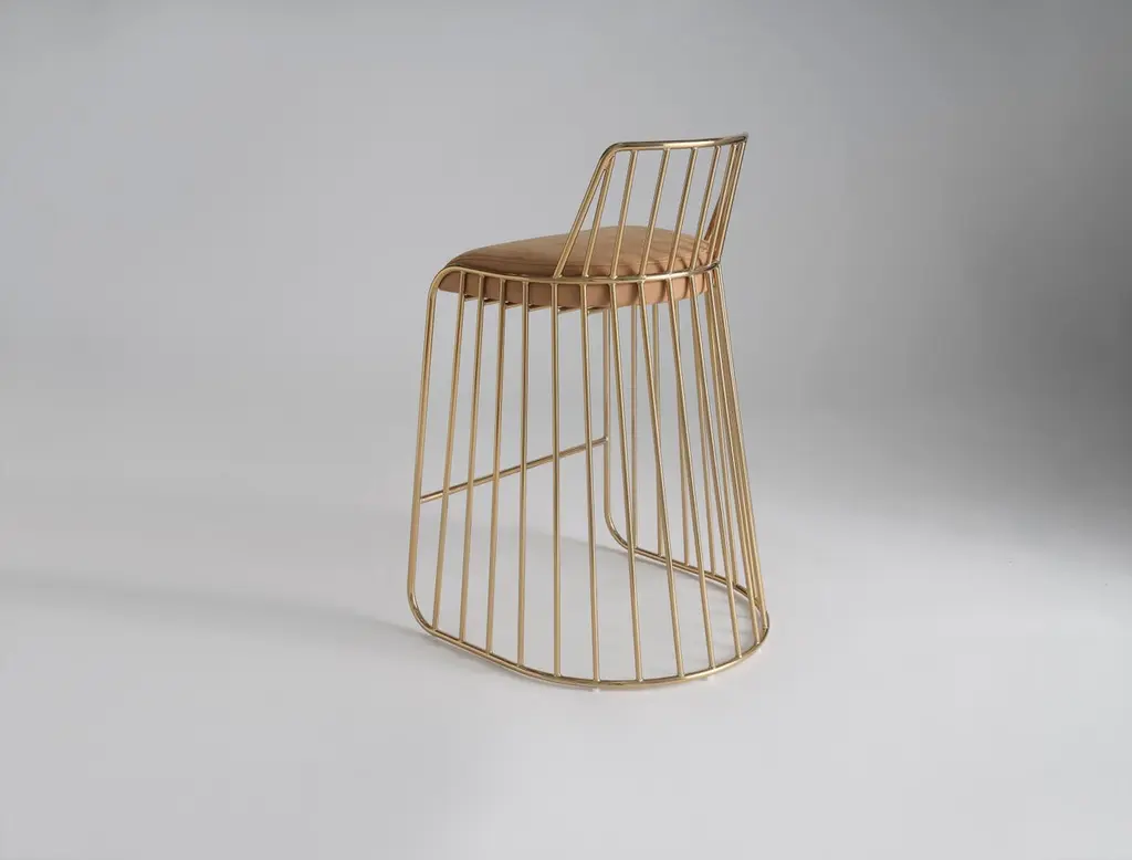 Bride’s Veil Counter Stool With Back by Phase DesignDimensions: D 52,1 x W 53,3 x H 83,8 cm.Materials: Upholstery, steel and smoked brass.Fabric price not included.Solid steel bar available in a smoked brass, polished chrome, burnt copper, or powder coat finish with upholstered top. Powder coat finishes are available in custom colors. Upholstery may be sourced in Customer Own Material (COM), Customer Own Leather (COL), or in Phase Design's suggested fabrics and leathers. Prices may vary. Please contact us.The Bride's Veil Stool family’s unique language is meant as a graceful alternative to the archetypal bar stool. The strikingly elegant metal base is available in smoked brass, polished chrome, burnt copper, or powder coat, while the top is offered in COM upholstery. At every angle these stools offer a visual treat.Autodidact award-winning designer Reza Feiz has always been drawn to the strength in simplicity. Lured to Southern California by its inventive, creative spirit, he quickly discovered his true calling among the vast community of creators and artisans whose skills and ingenuity expertly transform imagination into reality.Inspired by Los Angeles’ iconic landscape and the compelling beauty of the places and spaces he encountered, he envisioned furniture, lighting and tabletop accessories, fabricating them from contemporary materials with the help of a tightly knit coterie of craftspeople.The resulting restrained yet revolutionary pieces have garnered enthusiasm from an international audience.He’s been lauded as “An American designer who influences world design”, a “Style Pioneer” and “One of a group of select young designers who represent the leading edge of discovery in design.” Architectural Digest’s Mayer Rus noted that his “wide-ranging collections make a strong case for the enduring appeal of restrained modern design.” Surface Magazine raved that he “imbues his work with a 21st-century edge. His astute sense of restraint keeps the designs relevant in a constantly evolving industry, without needing to subscribe to trends.”“Reza Feiz imbues his work with a 21st-century edge. His astute sense of restraint keeps the designs relevant in a constantly evolving industry, without needing to subscribe to trends.”