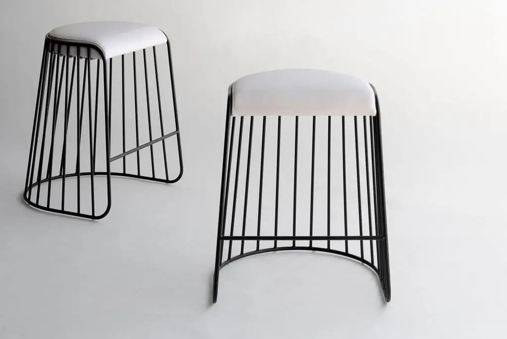 Listed price is for the Smoked Brass finish and Remix 3 by Kvadrat fabric. COM is also available, with a List price of $ 2,830.00.Prices exclude packing. Please contact us for a packing quote.The Bride's Veil Stool family’s unique language is meant as a graceful alternative to the archetypal bar stool. The strikingly elegant metal base is available in smoked brass, polished chrome, burnt copper, or powder coat, while the top is offered in COM upholstery. At every angle these stools offer a visual treat.Solid steel bar available in a smoked brass, polished chrome, burnt copper, or powder coat finish with upholstered top. Powder coat finishes are available in custom colors. Upholstery may be sourced COM, COL or suggested fabrics and leather. (COM requirements= 1 yard).