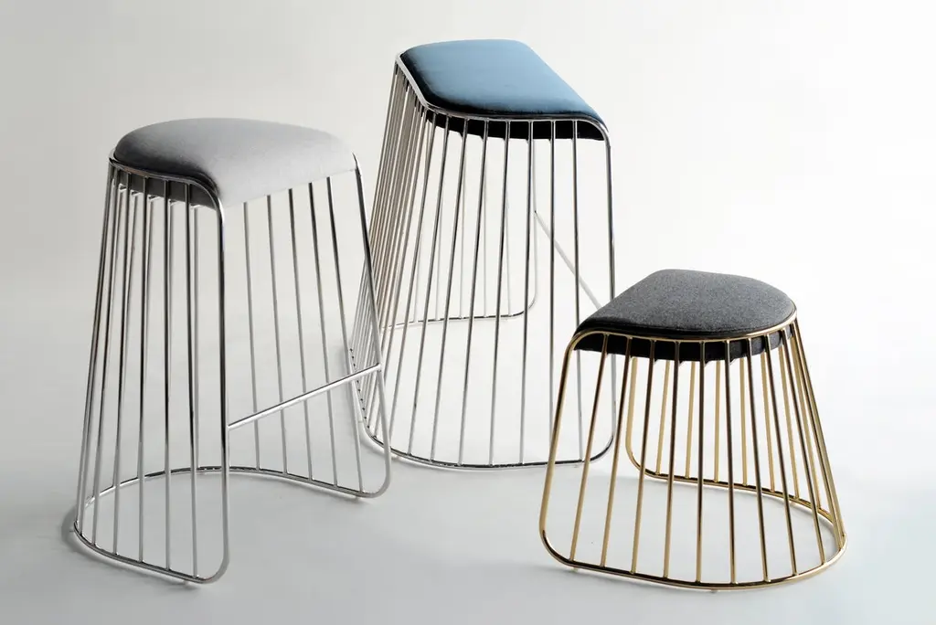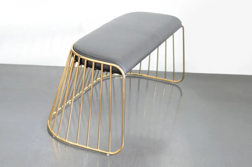 Bride’s Veil Double Low Stool by Phase DesignDimensions: D 52,1 x W 109,2 x H 45,7 cm.Materials: Leather, steel and smoked brass.Solid steel bar available in a smoked brass, polished chrome, burnt copper, or powder coat finish with upholstered top. Upholstery may be sourced in Customer Own Material (COM), Customer Own Leather (COL), or in Phase Design's suggested fabrics and leathers. Prices may vary. Please contact us.The Bride's Veil Stool family’s unique language is meant as a graceful alternative to the archetypal bar stool. The strikingly elegant metal base is available in smoked brass, polished chrome, burnt copper, or powder coat, while the top is offered in COM upholstery. At every angle these stools offer a visual treat.Autodidact award-winning designer Reza Feiz has always been drawn to the strength in simplicity. Lured to Southern California by its inventive, creative spirit, he quickly discovered his true calling among the vast community of creators and artisans whose skills and ingenuity expertly transform imagination into reality.Inspired by Los Angeles’ iconic landscape and the compelling beauty of the places and spaces he encountered, he envisioned furniture, lighting and tabletop accessories, fabricating them from contemporary materials with the help of a tightly knit coterie of craftspeople.The resulting restrained yet revolutionary pieces have garnered enthusiasm from an international audience.He’s been lauded as “An American designer who influences world design”, a “Style Pioneer” and “One of a group of select young designers who represent the leading edge of discovery in design.” Architectural Digest’s Mayer Rus noted that his “wide-ranging collections make a strong case for the enduring appeal of restrained modern design.” Surface Magazine raved that he “imbues his work with a 21st-century edge. His astute sense of restraint keeps the designs relevant in a constantly evolving industry, without needing to subscribe to trends.”“Reza Feiz imbues his work with a 21st-century edge. His astute sense of restraint keeps the designs relevant in a constantly evolving industry, without needing to subscribe to trends.”