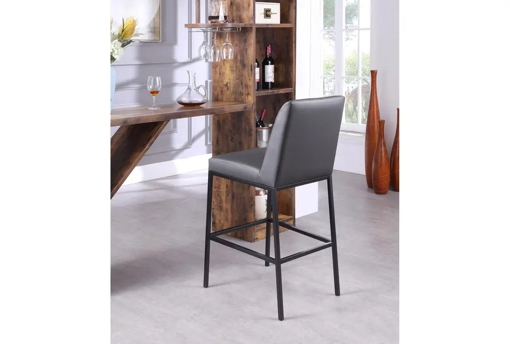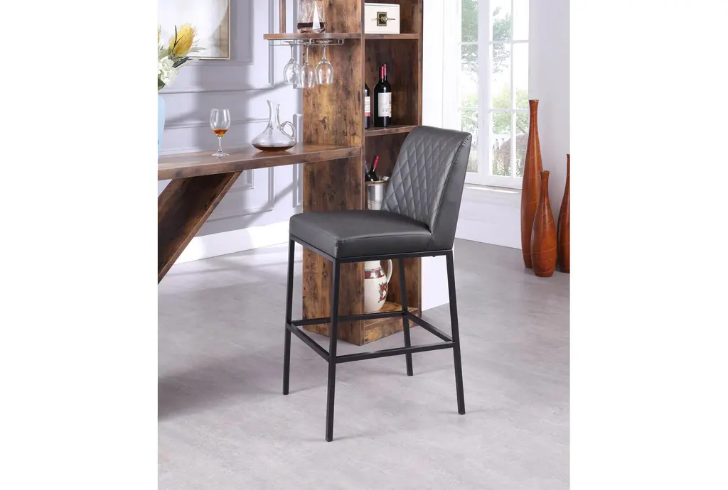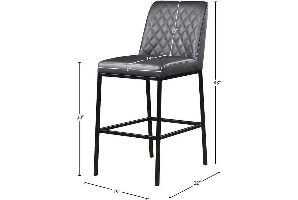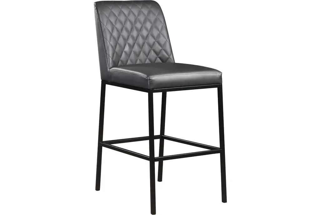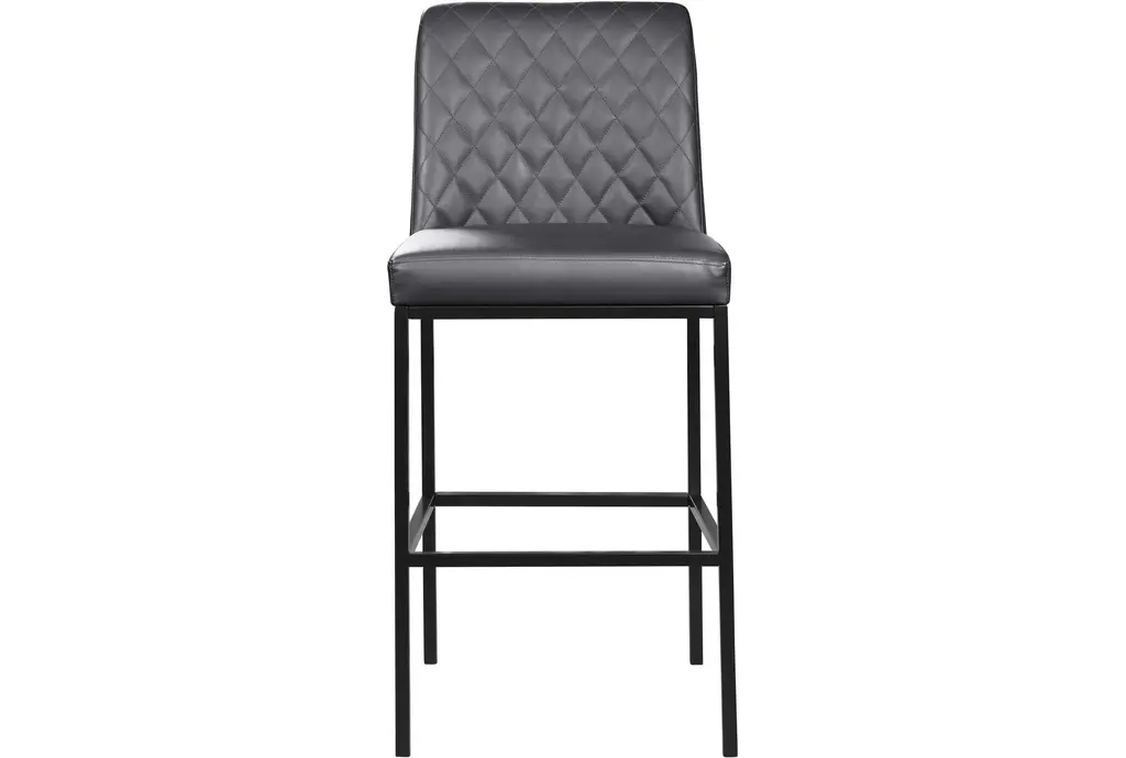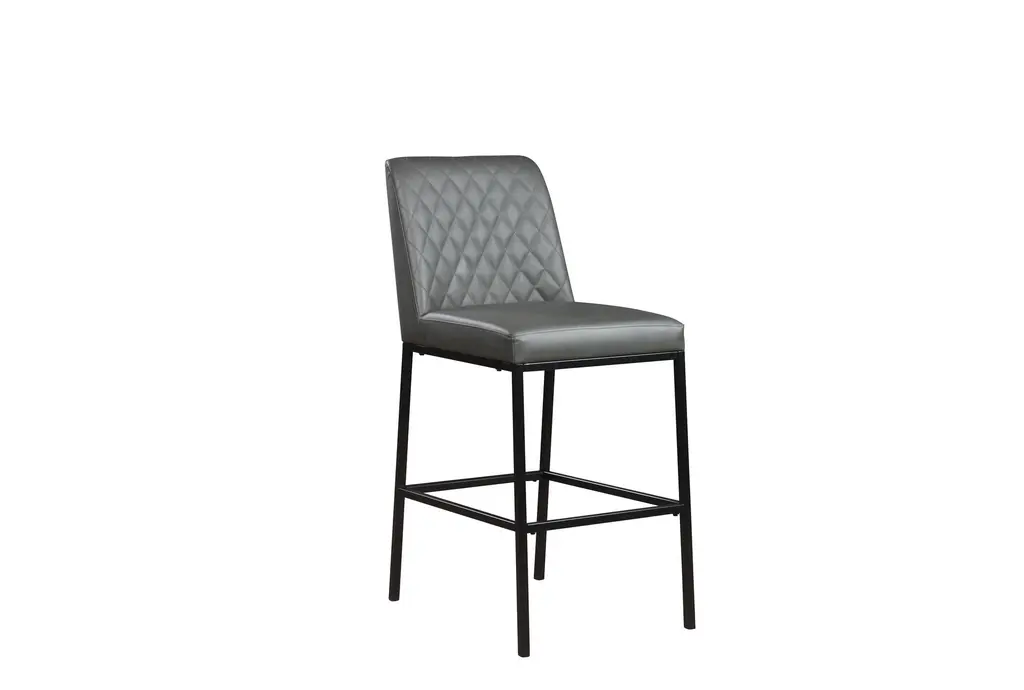 The Brine Grey Leather Fabric 23" Counter Stool with Matte Black Leg Finish is a perfect addition to your dining room or kitchen. This modern, armless set of 2 stools features a quilted design that adds comfort and style to any counter height space. Made with vegan leather, metal, and foam, these stools are both durable and comfortable.